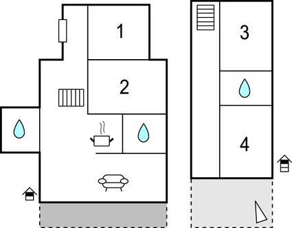 Badezimmer 4m2 (nr. 1) - WC. Warmes und kaltes Wasser. Dusche