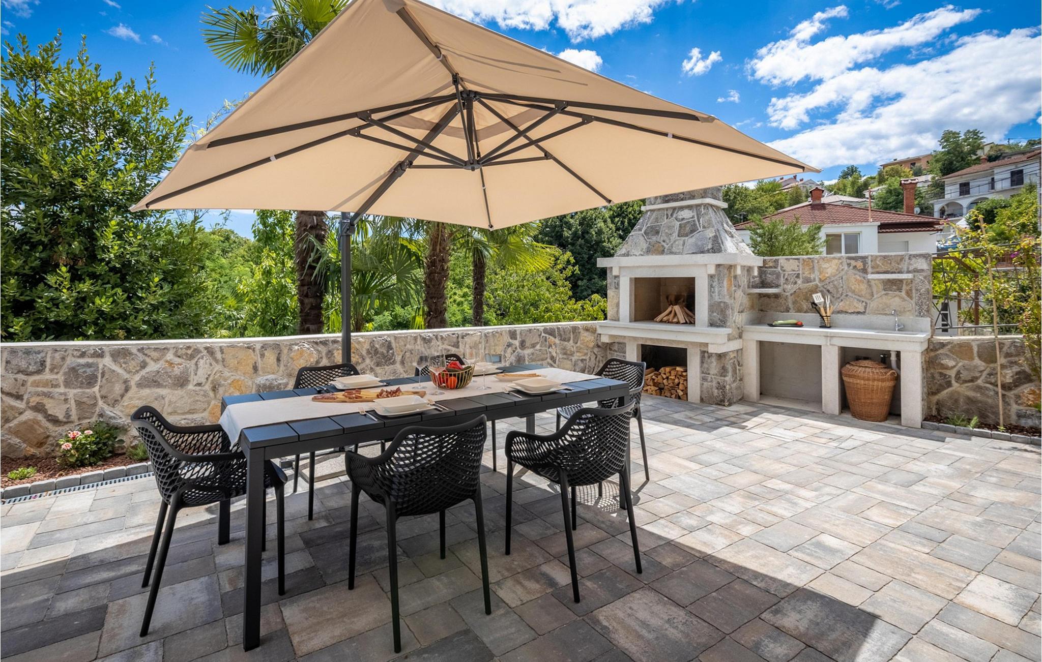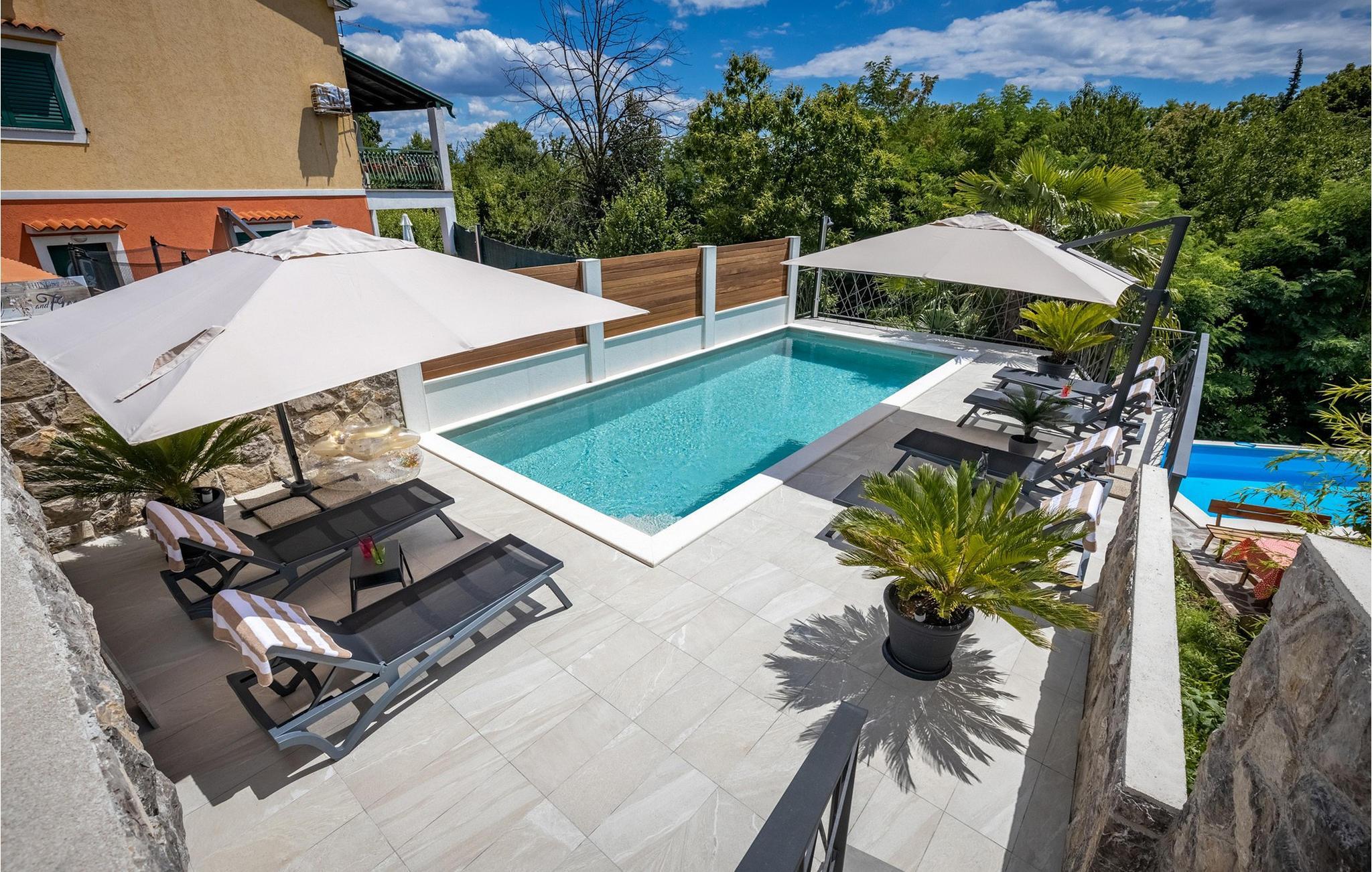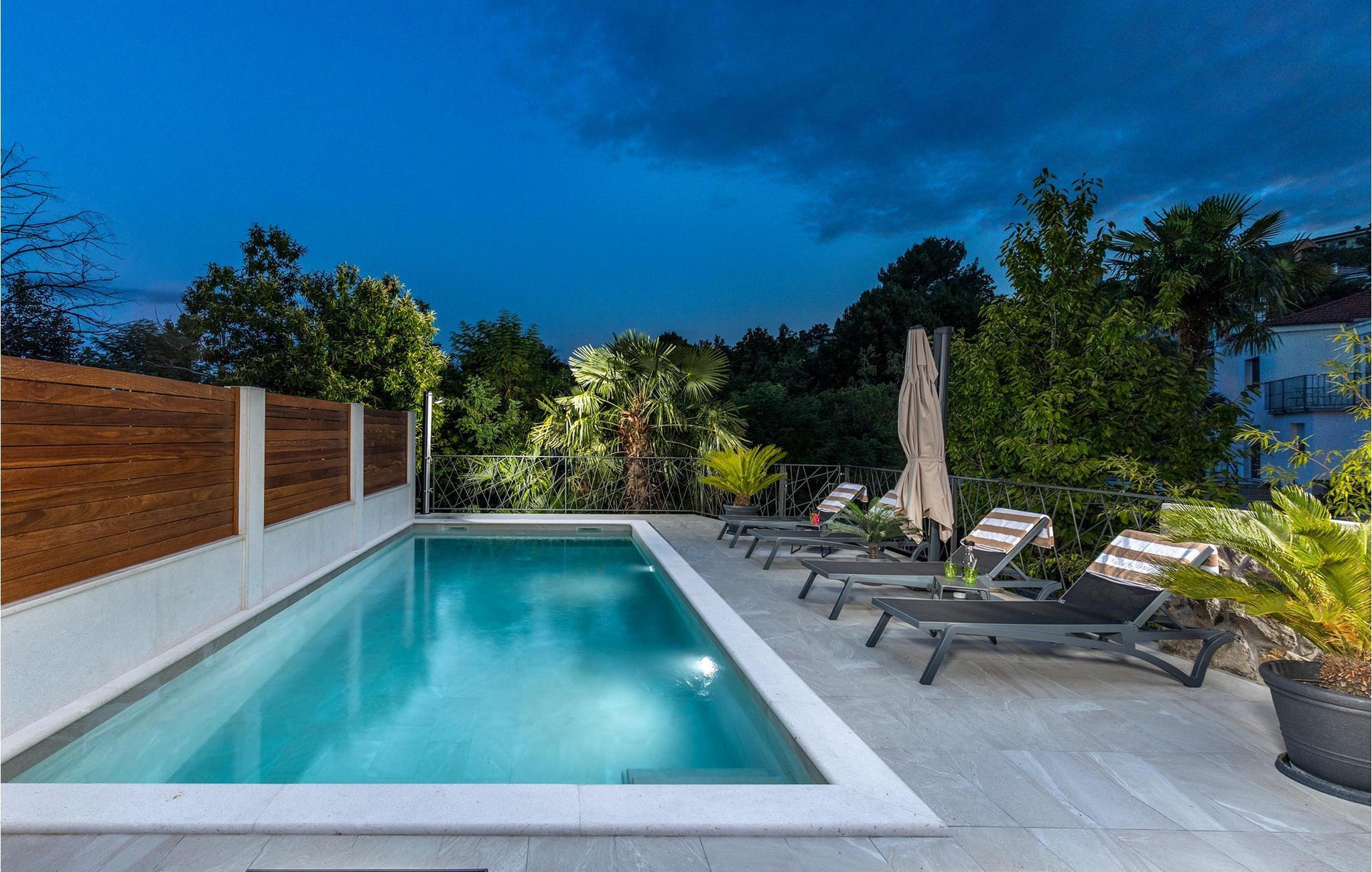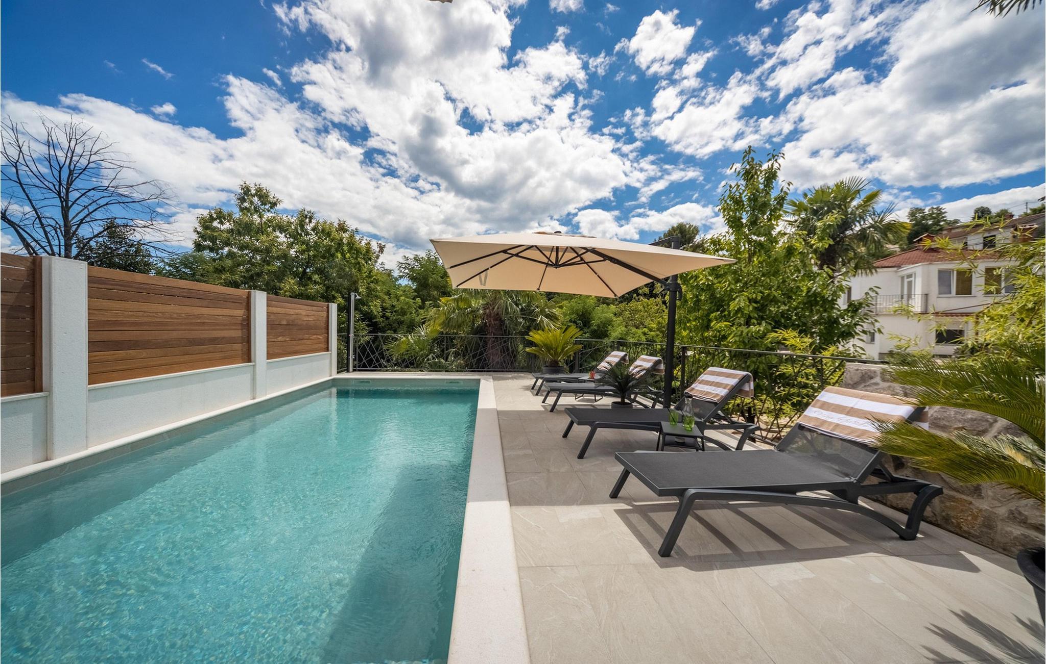 Villa Salu liegt in der kleinen Stadt Pobri, die nur zwei Kilometer von Opatija entfernt liegt, an der Grenze zwischen Kvarner und dem bergigen Teil Kroatiens. Entdecken Sie den Charme von Volosko, sonnen Sie sich in entspannenden Sonnenstrahlen und baden Sie im kristallklaren Wasser am wunderschönen Kies- und Betonstrand Crnikovica, der Ihnen alles bietet, was Sie für einen perfekten Urlaub brauchen. In der Nähe der Villa befindet sich auch der Strand Lido, der aufgrund seines reichhaltigen Angebots und seines sauberen Meeres mit der Blauen Flagge ausgezeichnet wurde. Im ersten Stock der wunderschönen modernen Villa Salu befinden sich drei moderne, klimatisierte Zimmer mit einem Doppelbett und einem luxuriösen Badezimmer mit Dusche. Außerdem gibt es einen klimatisierten Fitnessraum mit Level-Geräten, der Ihnen dabei hilft, Ihren Körper im Sommer in Topform zu bringen. Im Erdgeschoss befindet sich eine funktionelle Küche mit allen notwendigen Geräten, mit denen Sie schnell und einfach kochen können. Sie können Ihre Spezialitäten auch auf dem Holzkohlegrill im Freien zubereiten und sie im Speisesaal im Freien mit 6 Sitzplätzen oder im Speisesaal im Innenbereich mit 8 Sitzplätzen servieren. Im Erdgeschoss gibt es außerdem ein klimatisiertes Wohnzimmer mit elektrischem Kamin und ein separates Badezimmer. Vor der Villa gibt es eine schöne Ecke mit einem Pool und 6 bequemen Liegen, wo Sie die Sonne genießen können. Beheizter Pool vom 15.04. - 01.06. und vom 01.09. - 01.10. (wetterabhängig). Die Jüngsten werden sich sicherlich auf dem Spielplatz gegenüber der Villa oder beim Radfahren (zwei Fahrräder verfügbar) vergnügen. Für Privatsphäre sorgen eine Steinmauer und ein schmiedeeiserner Zaun, der die Villa umgibt. Villa Salu wird Ihnen eine wundervolle mediterrane Atmosphäre bieten, die Ihnen sicher in Erinnerung bleiben wird! In der Villa Salu gibt es auch eine finnische Sauna, deren Nutzung viele wohltuende Wirkungen mit sich bringt! Fans eines aktiven Urlaubs sollten sich die Gelegenheit nicht entgehen lassen, die Rad- und Wanderwege auszuprobieren, die sie durch jahrhundertealte Wälder führen. Ein Spaziergang durch die Riviera von Opatija wird Sie dank der wunderschönen Architektur der Villen, luxuriösen Parks mit Kräutern aus aller Welt und einem reichhaltigen gastronomischen Angebot in eine romantische Zeit entführen. Das Zentrum der Riviera von Opatija ist Opatija, aber es gibt auch attraktive Orte wie Volosko und Ika, Icici und Lovran, Medveja und Mošcenicka Draga. * Das Privathaus des Eigentümers befindet sich direkt neben der Villa. Dort finden Sie auch den Schönheitssalon des Eigentümers, der Massagen, Pediküre, verschiedene Gesichtsbehandlungen und Maniküre anbietet.