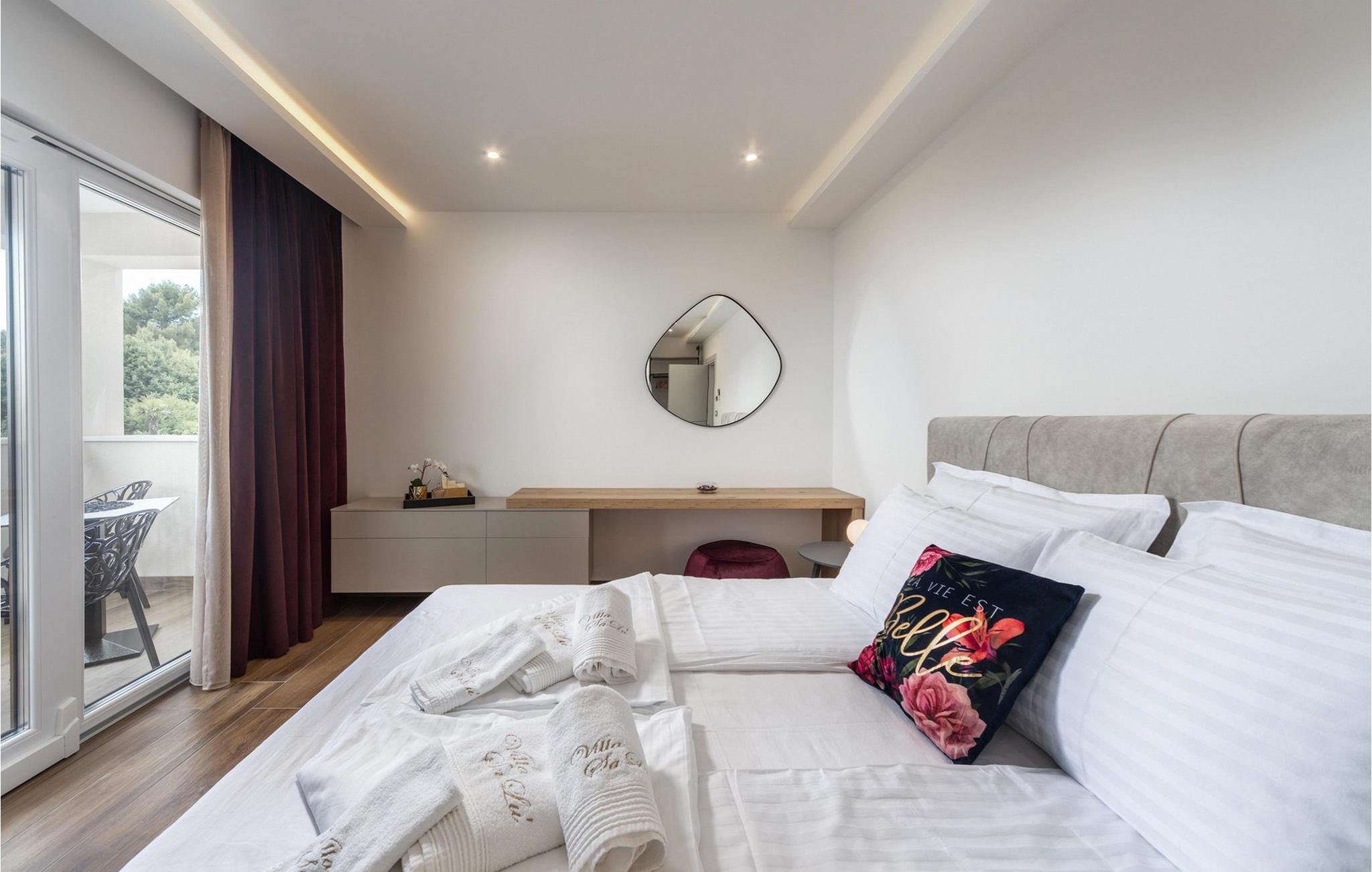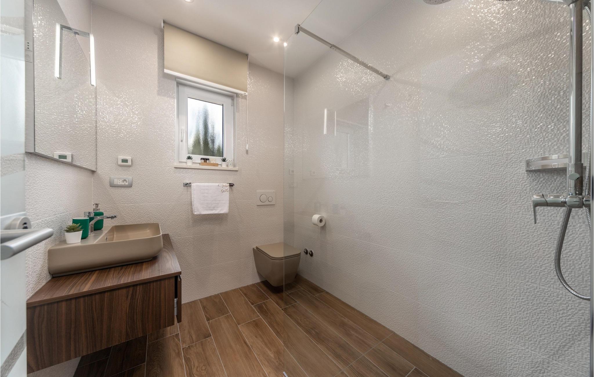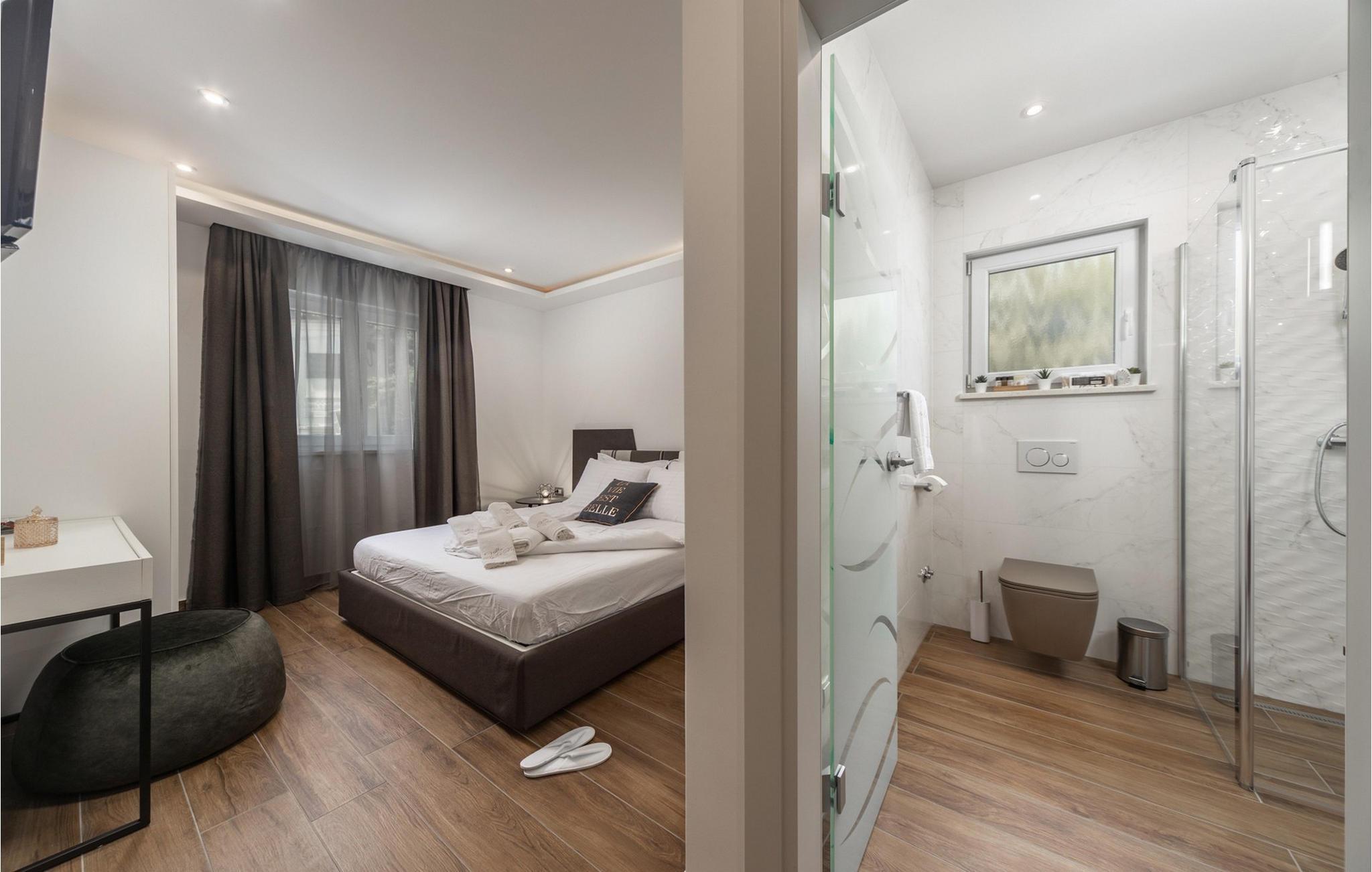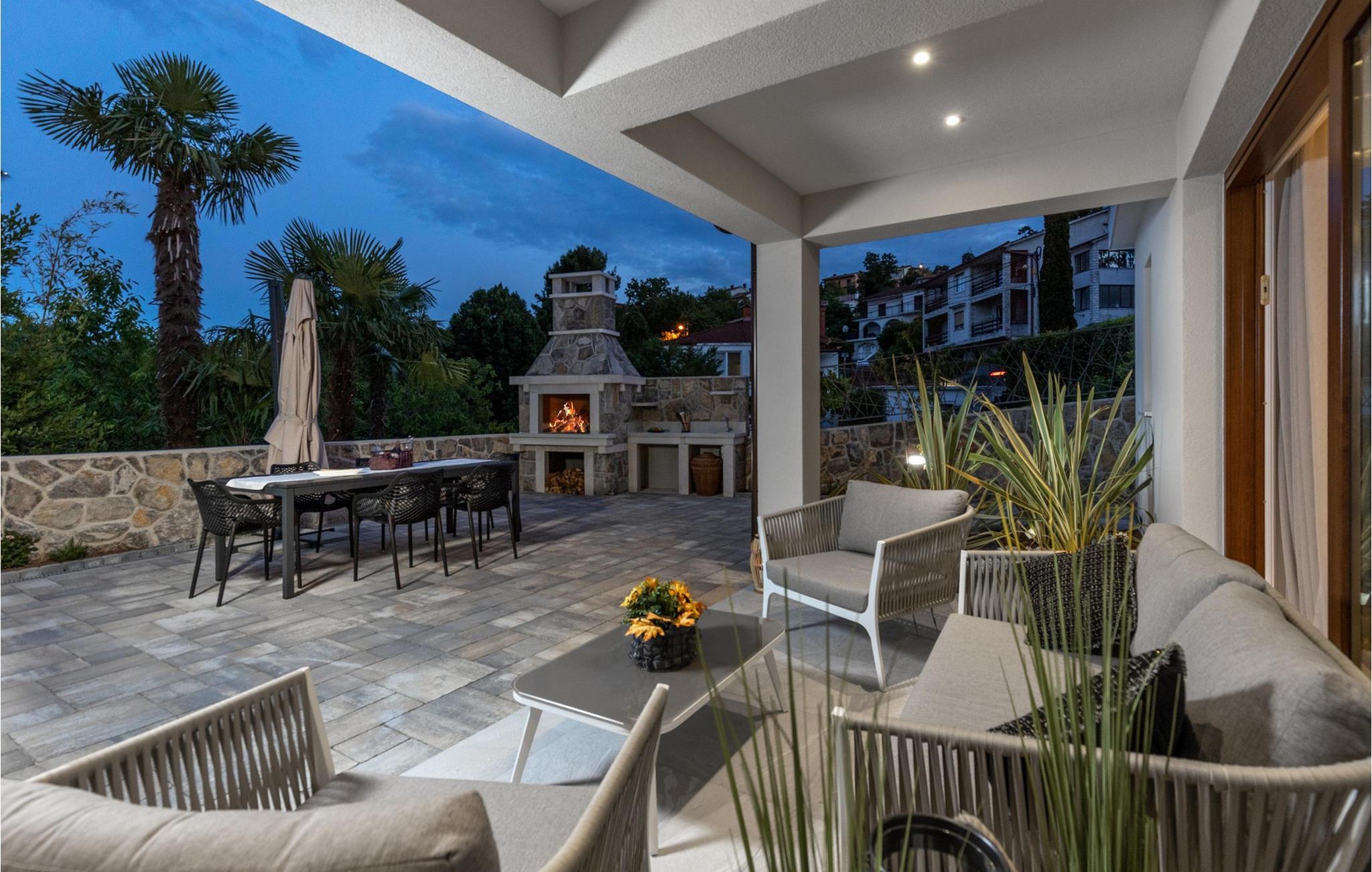 Villa Salu liegt in der kleinen Stadt Pobri, die nur zwei Kilometer von Opatija entfernt liegt, an der Grenze zwischen Kvarner und dem bergigen Teil Kroatiens. Entdecken Sie den Charme von Volosko, sonnen Sie sich in entspannenden Sonnenstrahlen und baden Sie im kristallklaren Wasser am wunderschönen Kies- und Betonstrand Crnikovica, der Ihnen alles bietet, was Sie für einen perfekten Urlaub brauchen. In der Nähe der Villa befindet sich auch der Strand Lido, der aufgrund seines reichhaltigen Angebots und seines sauberen Meeres mit der Blauen Flagge ausgezeichnet wurde. Im ersten Stock der wunderschönen modernen Villa Salu befinden sich drei moderne, klimatisierte Zimmer mit einem Doppelbett und einem luxuriösen Badezimmer mit Dusche. Außerdem gibt es einen klimatisierten Fitnessraum mit Level-Geräten, der Ihnen dabei hilft, Ihren Körper im Sommer in Topform zu bringen. Im Erdgeschoss befindet sich eine funktionelle Küche mit allen notwendigen Geräten, mit denen Sie schnell und einfach kochen können. Sie können Ihre Spezialitäten auch auf dem Holzkohlegrill im Freien zubereiten und sie im Speisesaal im Freien mit 6 Sitzplätzen oder im Speisesaal im Innenbereich mit 8 Sitzplätzen servieren. Im Erdgeschoss gibt es außerdem ein klimatisiertes Wohnzimmer mit elektrischem Kamin und ein separates Badezimmer. Vor der Villa gibt es eine schöne Ecke mit einem Pool und 6 bequemen Liegen, wo Sie die Sonne genießen können. Beheizter Pool vom 15.04. - 01.06. und vom 01.09. - 01.10. (wetterabhängig). Die Jüngsten werden sich sicherlich auf dem Spielplatz gegenüber der Villa oder beim Radfahren (zwei Fahrräder verfügbar) vergnügen. Für Privatsphäre sorgen eine Steinmauer und ein schmiedeeiserner Zaun, der die Villa umgibt. Villa Salu wird Ihnen eine wundervolle mediterrane Atmosphäre bieten, die Ihnen sicher in Erinnerung bleiben wird! In der Villa Salu gibt es auch eine finnische Sauna, deren Nutzung viele wohltuende Wirkungen mit sich bringt! Fans eines aktiven Urlaubs sollten sich die Gelegenheit nicht entgehen lassen, die Rad- und Wanderwege auszuprobieren, die sie durch jahrhundertealte Wälder führen. Ein Spaziergang durch die Riviera von Opatija wird Sie dank der wunderschönen Architektur der Villen, luxuriösen Parks mit Kräutern aus aller Welt und einem reichhaltigen gastronomischen Angebot in eine romantische Zeit entführen. Das Zentrum der Riviera von Opatija ist Opatija, aber es gibt auch attraktive Orte wie Volosko und Ika, Icici und Lovran, Medveja und Mošcenicka Draga. * Das Privathaus des Eigentümers befindet sich direkt neben der Villa. Dort finden Sie auch den Schönheitssalon des Eigentümers, der Massagen, Pediküre, verschiedene Gesichtsbehandlungen und Maniküre anbietet.
