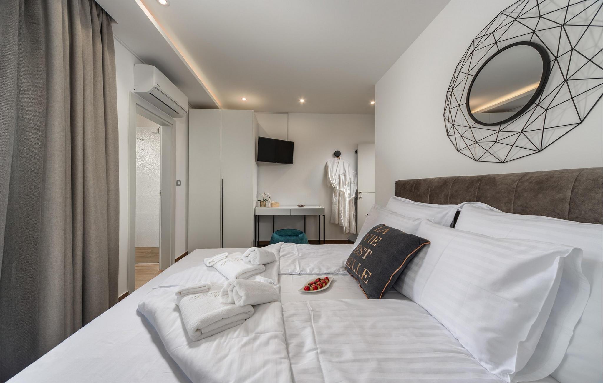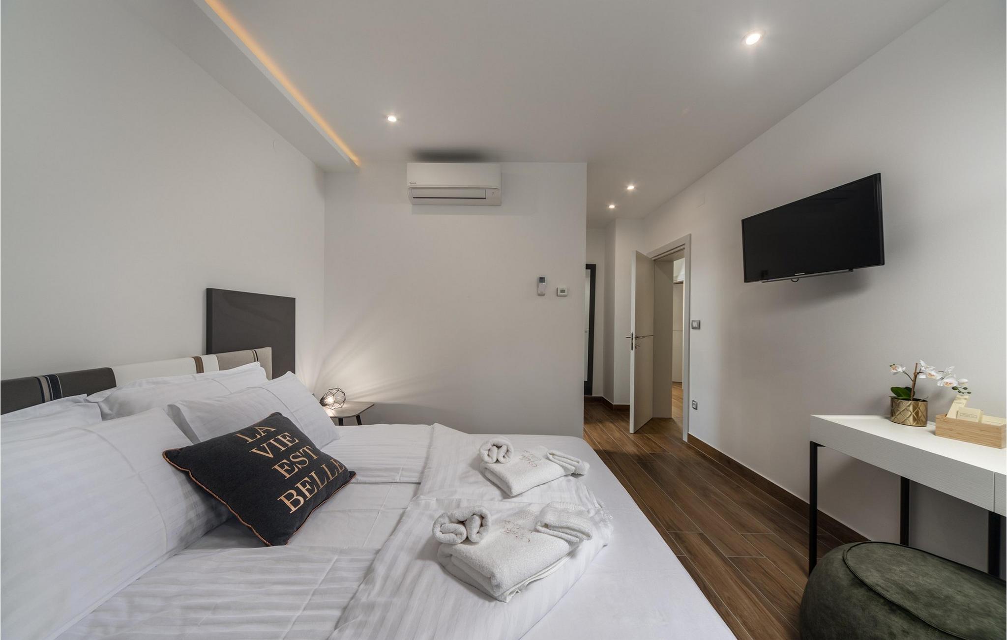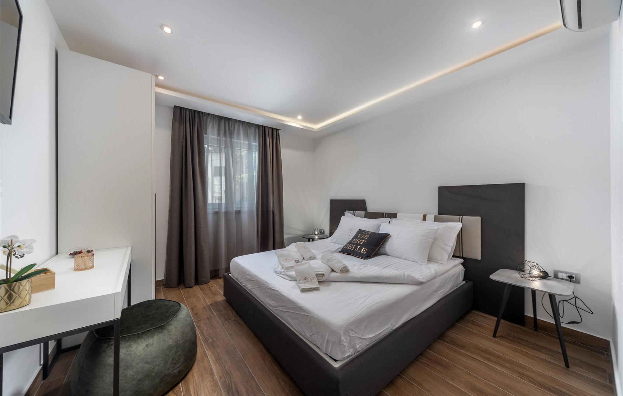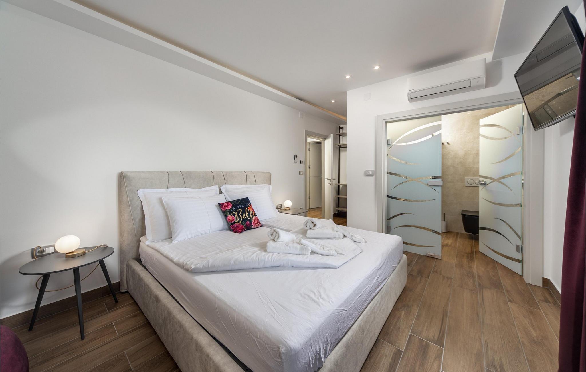 Villa Salu liegt in der kleinen Stadt Pobri, die nur zwei Kilometer von Opatija entfernt liegt, an der Grenze zwischen Kvarner und dem bergigen Teil Kroatiens. Entdecken Sie den Charme von Volosko, sonnen Sie sich in entspannenden Sonnenstrahlen und baden Sie im kristallklaren Wasser am wunderschönen Kies- und Betonstrand Crnikovica, der Ihnen alles bietet, was Sie für einen perfekten Urlaub brauchen. In der Nähe der Villa befindet sich auch der Strand Lido, der aufgrund seines reichhaltigen Angebots und seines sauberen Meeres mit der Blauen Flagge ausgezeichnet wurde. Im ersten Stock der wunderschönen modernen Villa Salu befinden sich drei moderne, klimatisierte Zimmer mit einem Doppelbett und einem luxuriösen Badezimmer mit Dusche. Außerdem gibt es einen klimatisierten Fitnessraum mit Level-Geräten, der Ihnen dabei hilft, Ihren Körper im Sommer in Topform zu bringen. Im Erdgeschoss befindet sich eine funktionelle Küche mit allen notwendigen Geräten, mit denen Sie schnell und einfach kochen können. Sie können Ihre Spezialitäten auch auf dem Holzkohlegrill im Freien zubereiten und sie im Speisesaal im Freien mit 6 Sitzplätzen oder im Speisesaal im Innenbereich mit 8 Sitzplätzen servieren. Im Erdgeschoss gibt es außerdem ein klimatisiertes Wohnzimmer mit elektrischem Kamin und ein separates Badezimmer. Vor der Villa gibt es eine schöne Ecke mit einem Pool und 6 bequemen Liegen, wo Sie die Sonne genießen können. Beheizter Pool vom 15.04. - 01.06. und vom 01.09. - 01.10. (wetterabhängig). Die Jüngsten werden sich sicherlich auf dem Spielplatz gegenüber der Villa oder beim Radfahren (zwei Fahrräder verfügbar) vergnügen. Für Privatsphäre sorgen eine Steinmauer und ein schmiedeeiserner Zaun, der die Villa umgibt. Villa Salu wird Ihnen eine wundervolle mediterrane Atmosphäre bieten, die Ihnen sicher in Erinnerung bleiben wird! In der Villa Salu gibt es auch eine finnische Sauna, deren Nutzung viele wohltuende Wirkungen mit sich bringt! Fans eines aktiven Urlaubs sollten sich die Gelegenheit nicht entgehen lassen, die Rad- und Wanderwege auszuprobieren, die sie durch jahrhundertealte Wälder führen. Ein Spaziergang durch die Riviera von Opatija wird Sie dank der wunderschönen Architektur der Villen, luxuriösen Parks mit Kräutern aus aller Welt und einem reichhaltigen gastronomischen Angebot in eine romantische Zeit entführen. Das Zentrum der Riviera von Opatija ist Opatija, aber es gibt auch attraktive Orte wie Volosko und Ika, Icici und Lovran, Medveja und Mošcenicka Draga. * Das Privathaus des Eigentümers befindet sich direkt neben der Villa. Dort finden Sie auch den Schönheitssalon des Eigentümers, der Massagen, Pediküre, verschiedene Gesichtsbehandlungen und Maniküre anbietet.