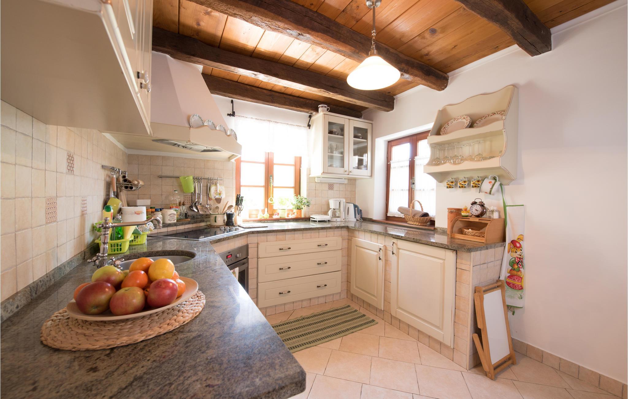 Im kleinen Ort Poljane in der Nähe der Stadt Opatija steht dieses, im traditionellen Stil renovierte und von idyllischer Landschaft umgebene Ferienhaus. Das Feriendomizil ist geräumig und geschmackvoll eingerichtet und bietet jeglichen Komfort für einen erholsamen und unvergesslichen Urlaub. Im Erdgeschoss befindet sich das Wohnzimmer, in dem Sie auch einen schönen Kamin zur Verfügung haben, der an kühleren Abenden für wohlige Wärme sorgt. Eine steile Innentreppe führt sie in die erste Etage, wo die Schlafzimmer sind. Sie können aber auch draußen über die Terrasse in diese Etage gelangen. Die Sauna sowie die Hydromassagebadewanne, aus der Sie sicherlich nicht so schnell herauskommen wollen, locken mit Entspannung.