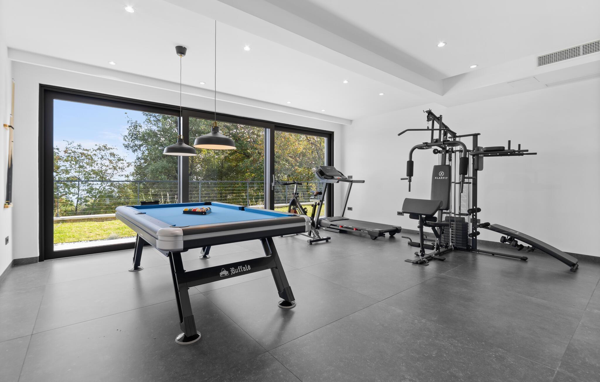 Entspannen Sie in der hauseigenen Wellness-Oase und gönnen Sie sich wohlige Momente im Whirlpool oder in der Sauna. Freuen Sie sich auf gemeinsame Koch-Events in der hochwertigen Küche und gesellige Mahlzeiten im stilvollen Essbereich. Streamen Sie Ihre Lieblingsserie, vergnügen Sie sich mit der PlayStation oder am Billardtisch, oder trainieren Sie im Fitnessraum.