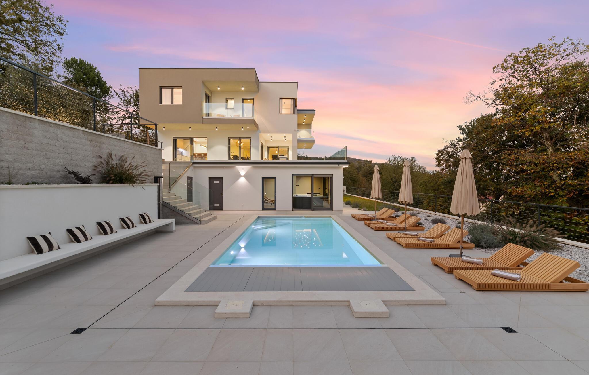 Freuen Sie sich auf Luxus und Erholung in diesem modernen Ferienhaus mit Pool und Sauna.