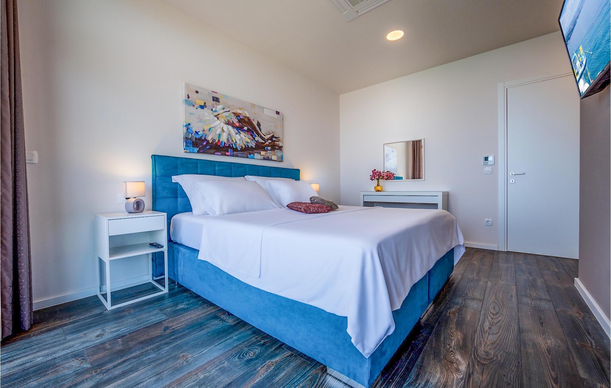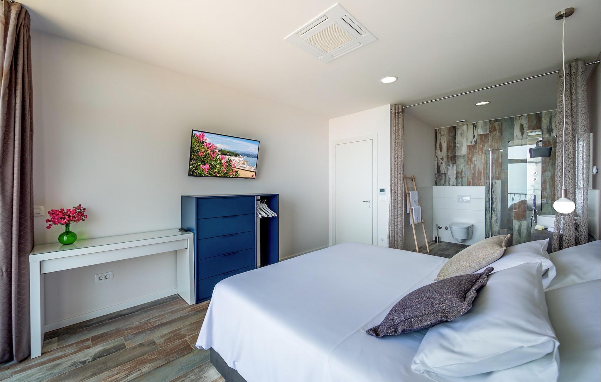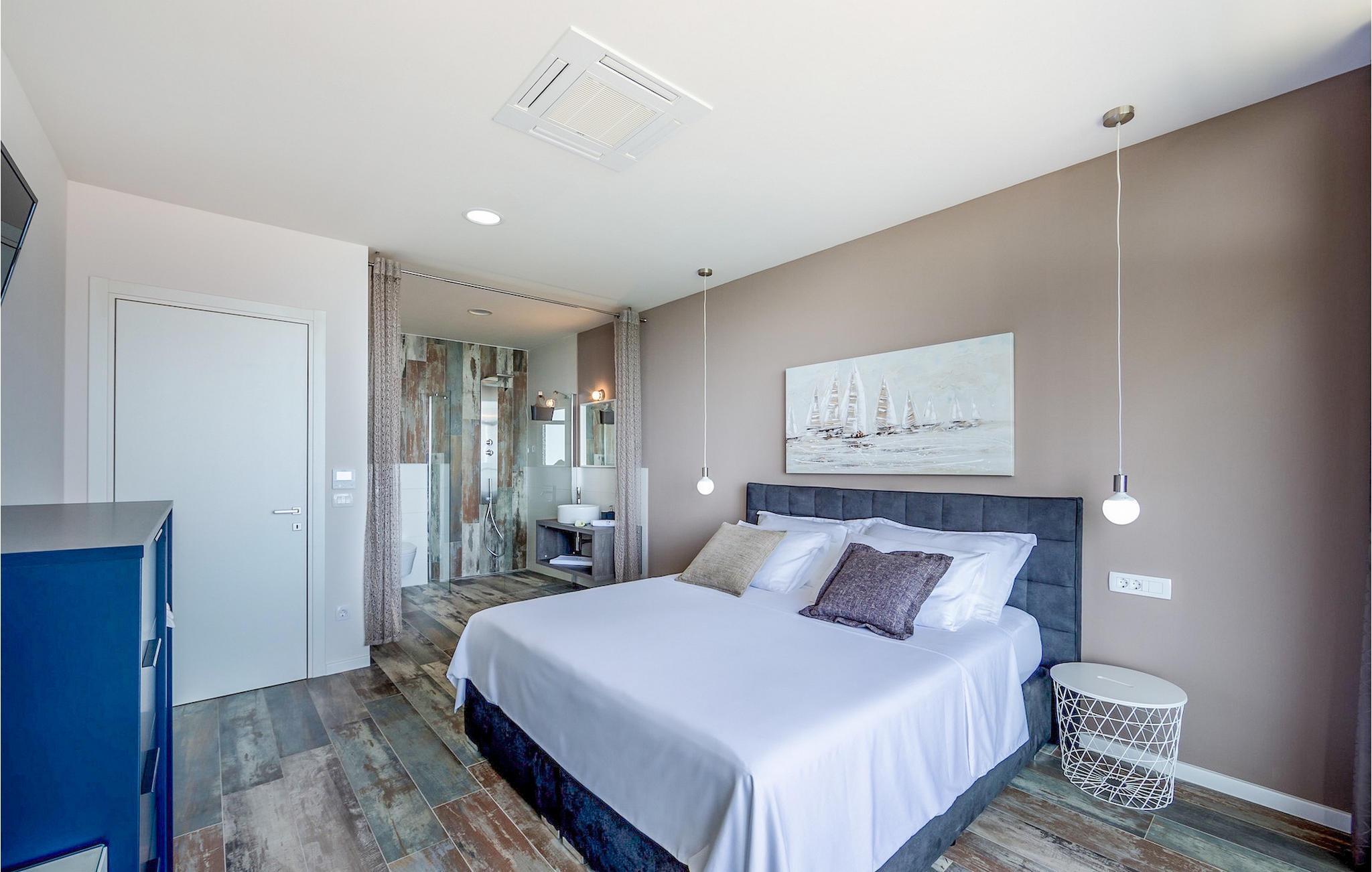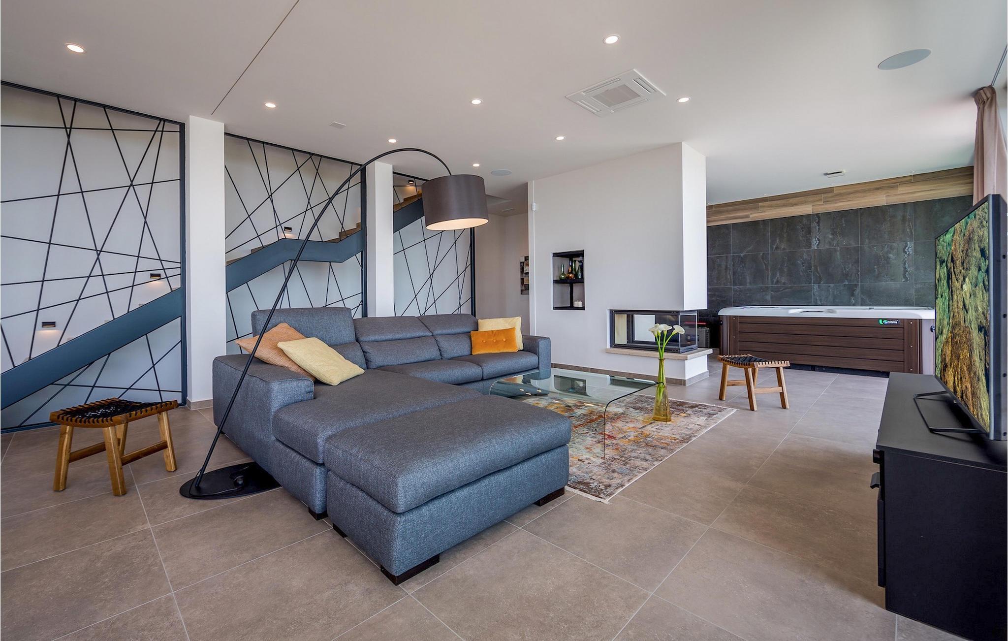 Die Villa bietet Platz für bis zu 10 + 1 Personen in 5 komfortablen und geschmackvoll eingerichteten Schlafzimmern. Im Erdgeschoss finden Sie die moderne Küche, den offenen Wohnbereich, den Wellnessbereich und ein Gäste-WC. Im ersten Stock befinden sich 4 der Schlafzimmer mit eigenem Bad. Das fünfte Schlafzimmer befindet sich im Untergeschoss. Der Außenbereich ist der perfekte Ort, um das lokale Klima zu genießen. Er verfügt über einen einladenden Infinity-Pool und eine Terrasse mit Liegestühlen und einem Essbereich im Freien.