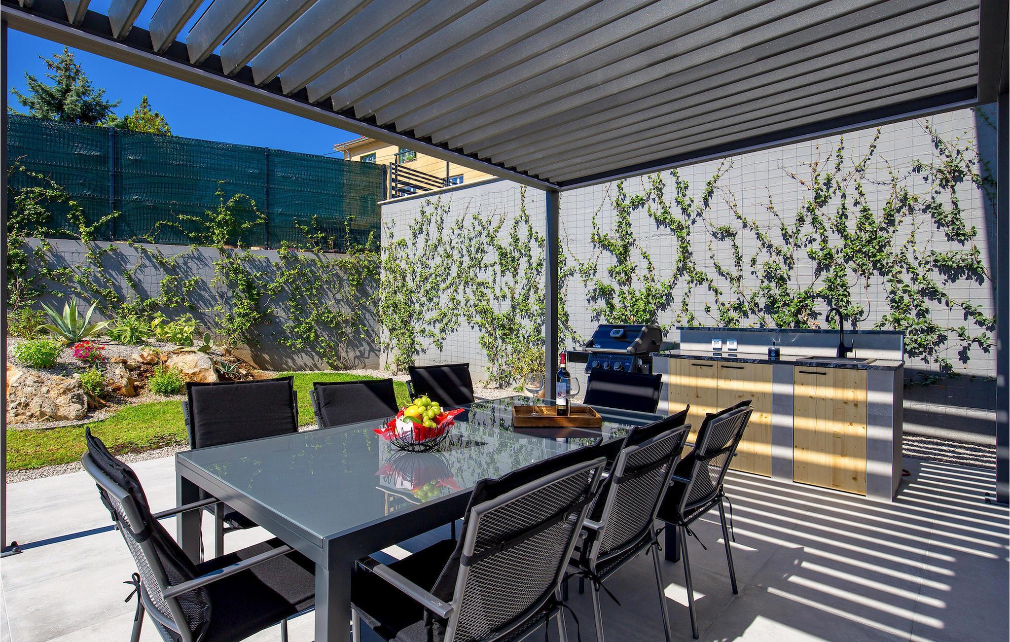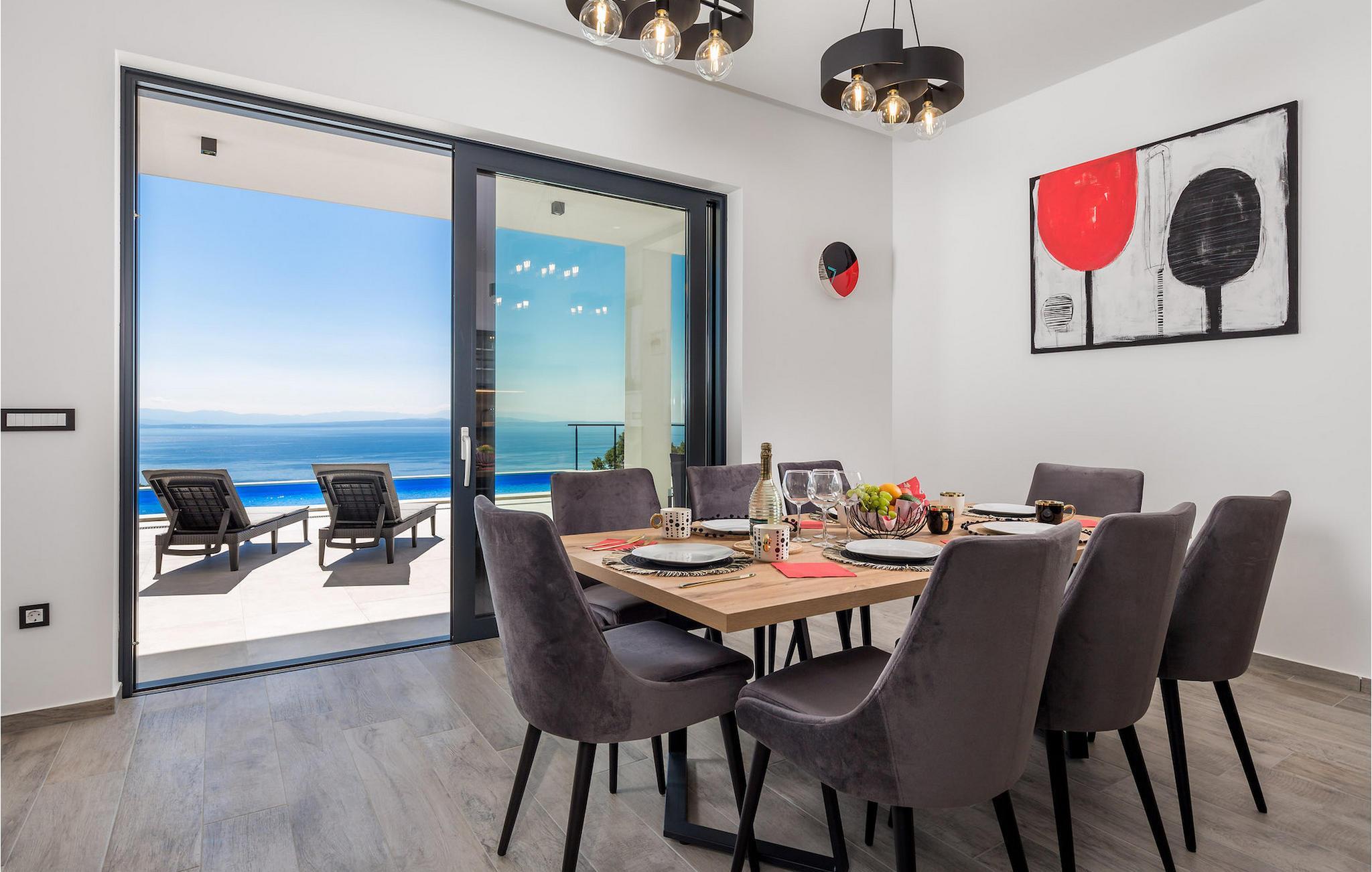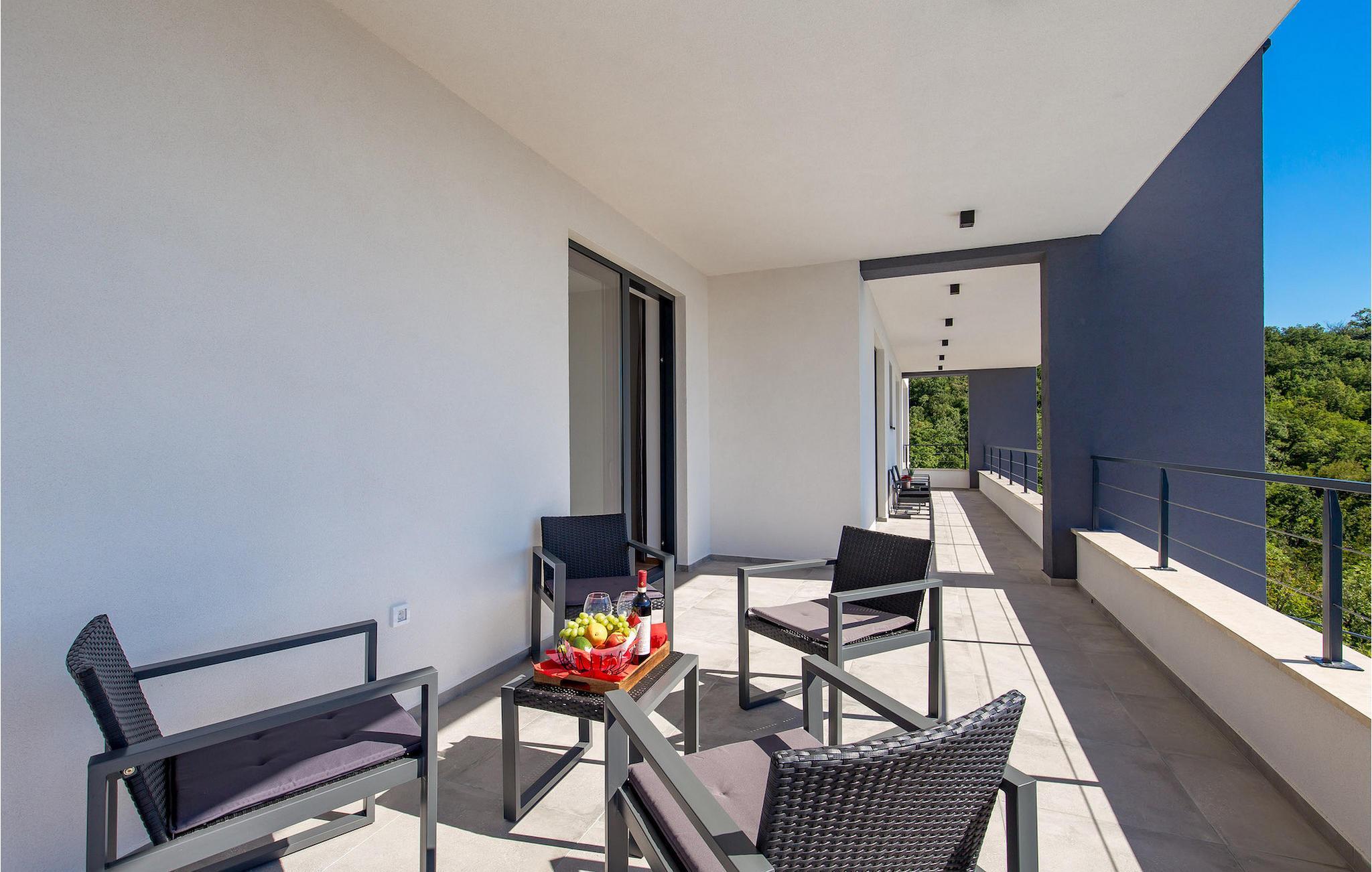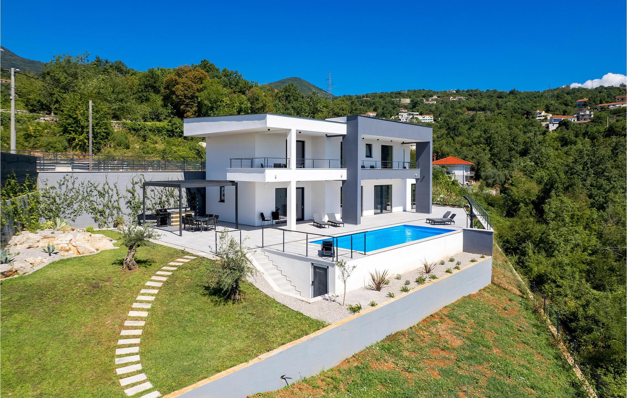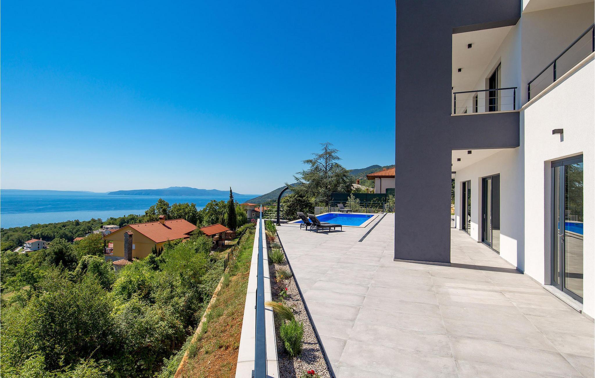 Einer der besten Vorzüge dieser Villa ist ihre große Terrasse mit einem wunderschönen Pool. Dort finden Sie auch eine Außenküche mit Herd, Gasgrill und überdachtem Essbereich. Nehmen Sie ein erfrischendes Bad im Pool und entspannen Sie sich anschließend auf einer der Sonnenliegen.Die Villa befindet sich im Dorf Poljane in der Kvarner Bucht, einer wahren Perle der Adria. Es ist nur 10 km vom Zentrum von Opatija entfernt, einem der charmantesten touristischen Hotspots Kroatiens, der für sein altes österreichisch-ungarisches Flair bekannt ist. Im Umkreis von 10 km finden Sie viele Strände und in der Nähe befindet sich auch ein Jachthafen, wo Sie ein Boot mieten und die Inseln in der Bucht besuchen können. Lungomare, ein 12 km langer Küstenweg, der sich von Lovran nach Volosko erstreckt, ist bei Touristen, die die Gegend besuchen, sehr beliebt. Ein romantischer und erholsamer 100 Jahre alter Spaziergang entlang des Ufers, weit weg vom Stadtverkehr, bietet Ihnen die Möglichkeit zur Entspannung von Stress und Alltagssorgen. Ein weiteres Muss ist Volosko, eine ehemalige Fischerstadt. Heute lockt Volosko Touristen mit seinen vielen Restaurants sowie einem wunderbaren Blick auf das Meer. Rijeka, die drittgrößte Stadt Kroatiens und ihr größter Hafen, liegt nur 20 km entfernt.