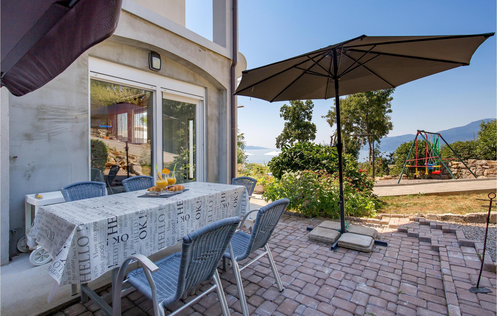 Im Erdgeschoss dieses Hauses befinden sich ein schönes Studio-Apartment für 2 Personen. Sie haben direkten Zugang zum Garten, wo es eine gemeinsame Terrasse und einen Grill gibt. Außerdem bietet die Ferienwohung eine eigene Terrasse. Erfrischen Sie sich im gemeinsamen Pool oder genießen Sie die Sonne auf den Sonnenliegen mit Ihrem Lieblingsbuch. Die funktionell eingerichteten Wohnelemente sind stilvoll miteinander verknüpft und behagen Ihnen bestimmt. Für Sportbegeisterte hat der Schwimmbadkomplex in Kantrida eine Vielfalt von Anlagen und Opatija wird Sie mit ihrer wunderschönen Uferpromenade bezaubern.