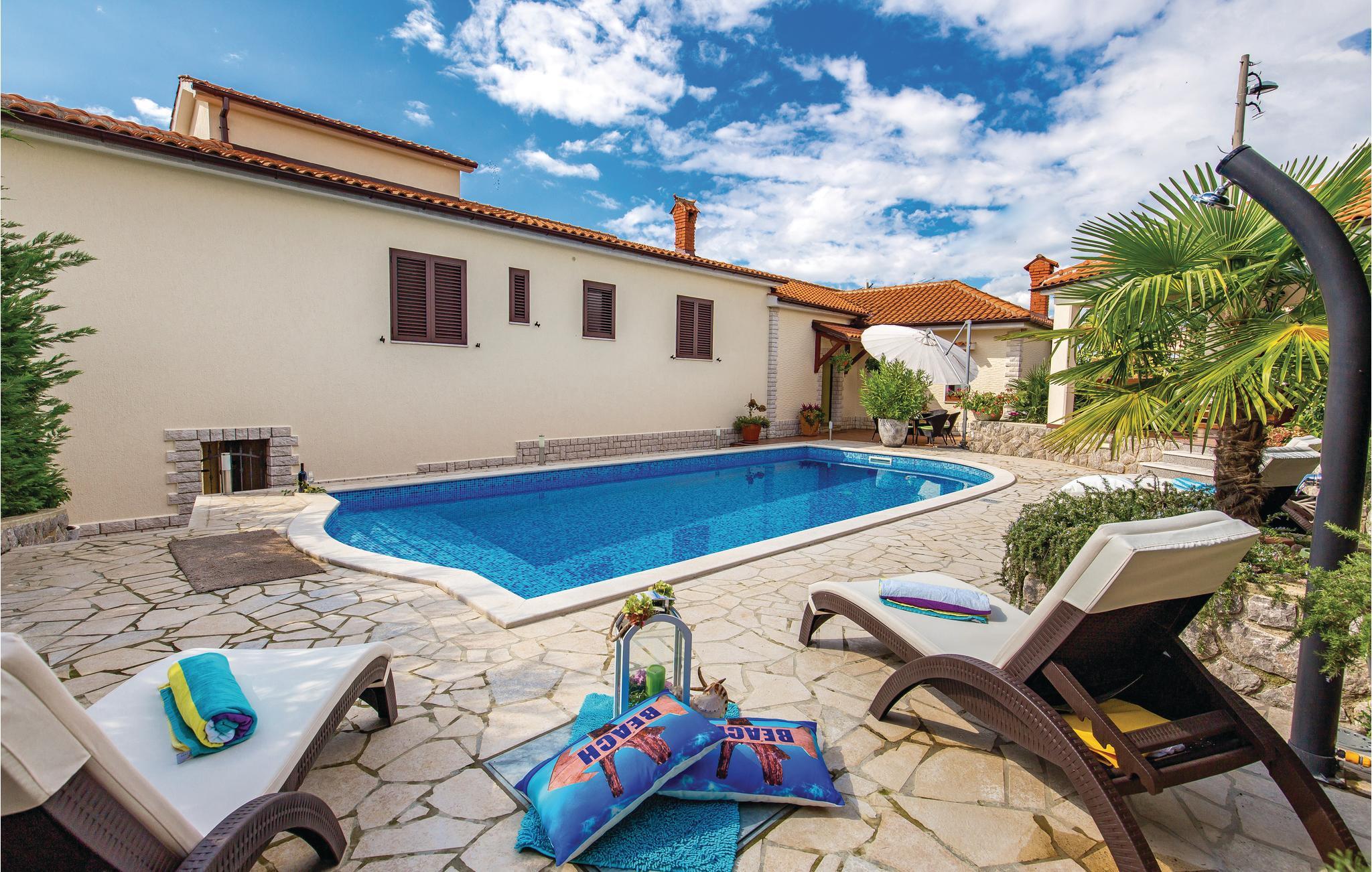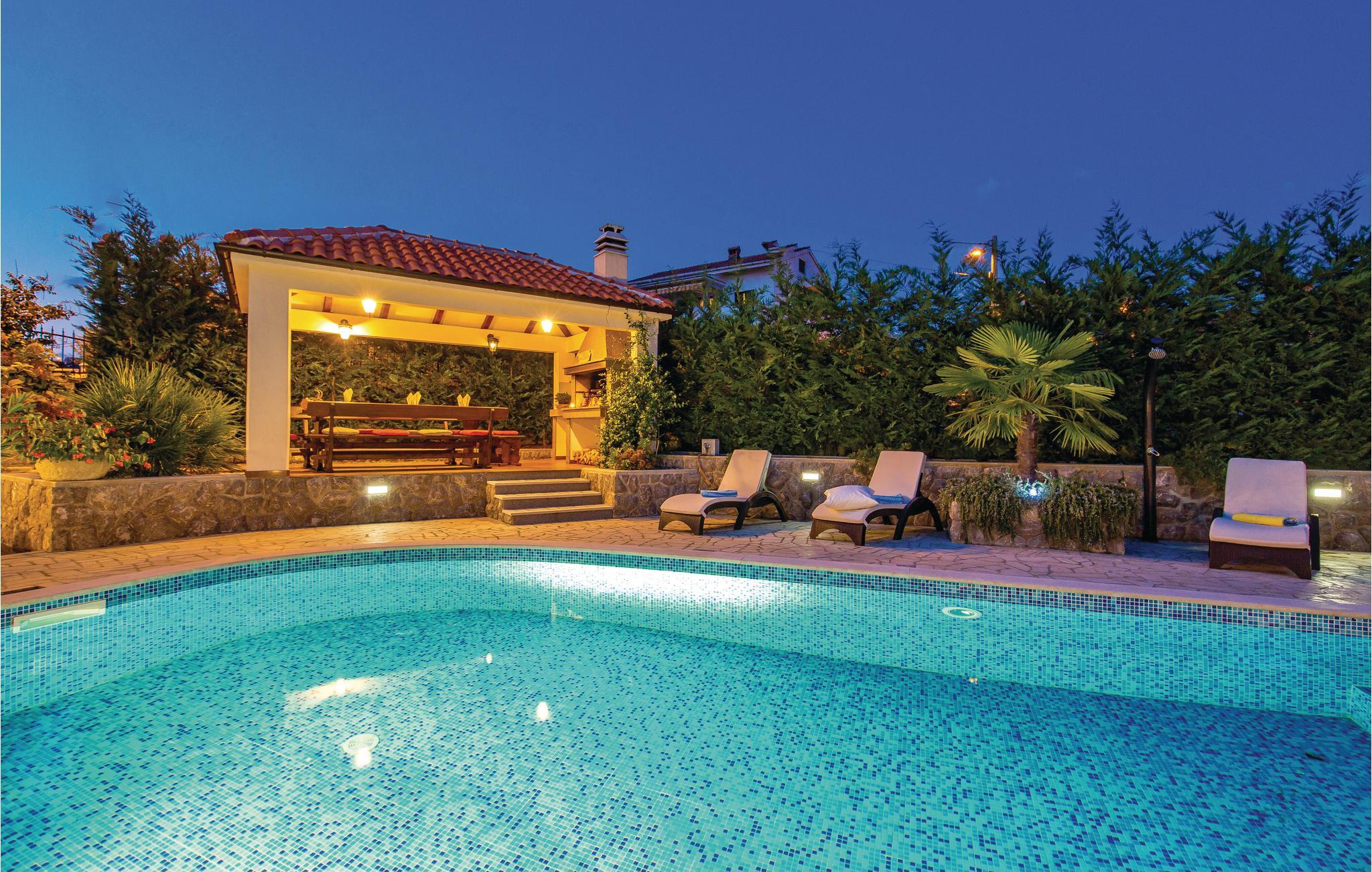 Im Hinterland von Rijeka befindet sich diese wunderschön eingerichtete Ferienwohnung. Durch die Hanglage ist der Eingang ebenerdig, der Balkon ist jedoch auf der ersten Etage. Die Wohnung verfügt über zwei Schlafzimmer, Wohnzimmer mit Küche und Bad. Das Schlafzimmer ist durch eine Trennwand unterteilt und in einem Teil des Zimmers befindet sich ein Doppelbett, während im anderen Teil zwei Einzelbetten vorhanden sind. Der Garten ist schön eingerichtet und komplett eingezäunt, sodass Sie auf der überdachte Terrasse entspannen oder sich im Pool erfrischen können. In der Nähe befinden sich zahlreiche Sehenswürdigkeiten in den Städten Rijeka, Opatija und Kastav. In und um Rijeka werden das ganze Jahr über zahlreiche kulturelle und unterhaltsame Veranstaltungen angeboten. Sportbegeisterte werden den Kantrida-Schwimmkomplex mit seinen schönen Stränden oder den wunderschönen Naturpark Ucka besuchen.