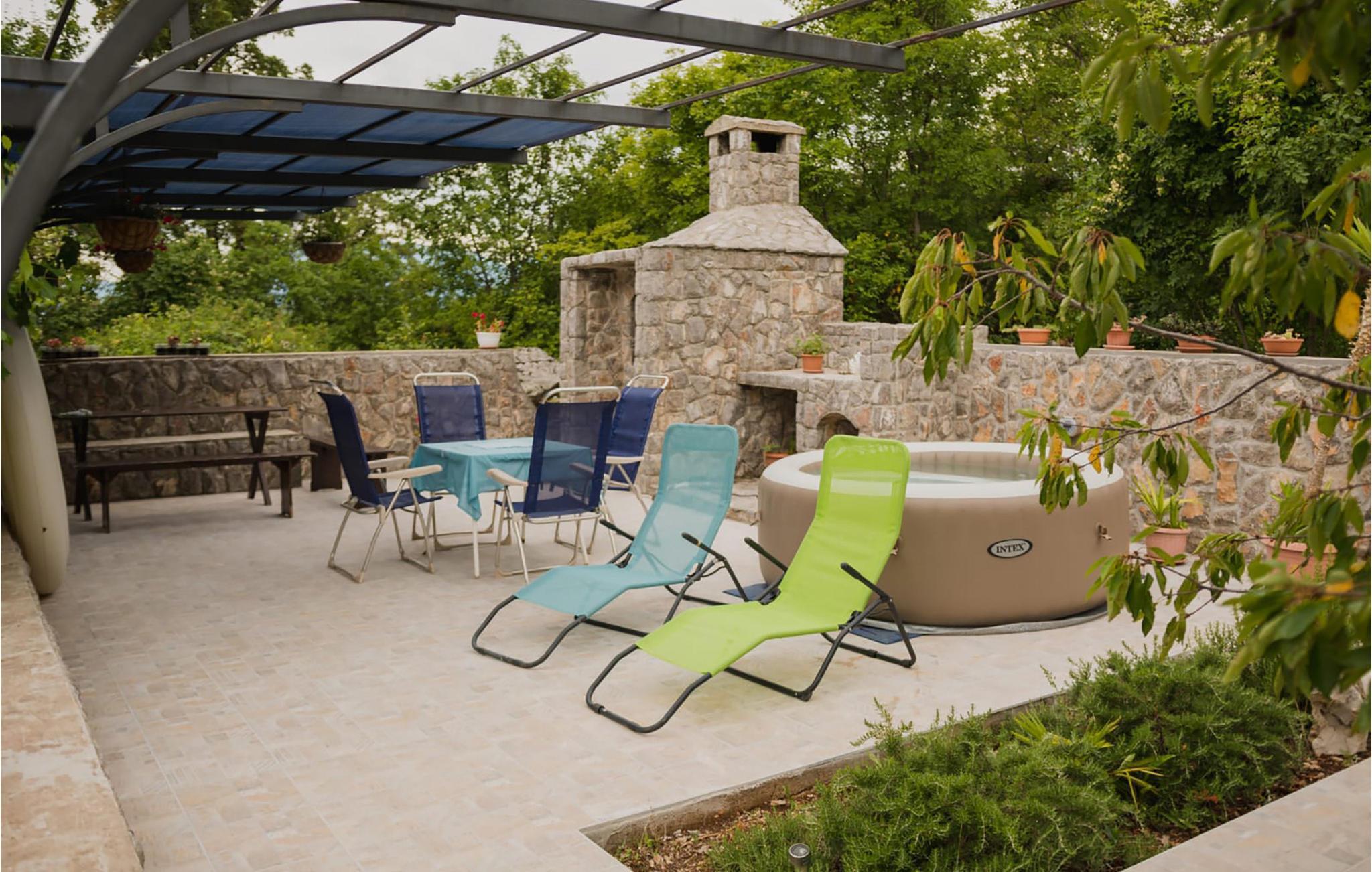 diese geräumige Ferienwohnung. Die Wohnung ist modern und verfügt über vier Schlafzimmer, drei Badezimmer und eine Küche mit Wohnzimmer. Vom Wohnzimmer aus erreichen Sie die geräumige, überdachte Terrasse. Im Garten haben Sie eine weitere offene Terrasse mit Grill und Whirlpool, ideal zum Entspannen. Aufgrund der guten Verkehrsanbindung erreichen Sie schnell das Stadtzentrum von Rijeka sowie andere sehenswerte Ziele: Opatija, Crikvenica oder die Insel Krk.