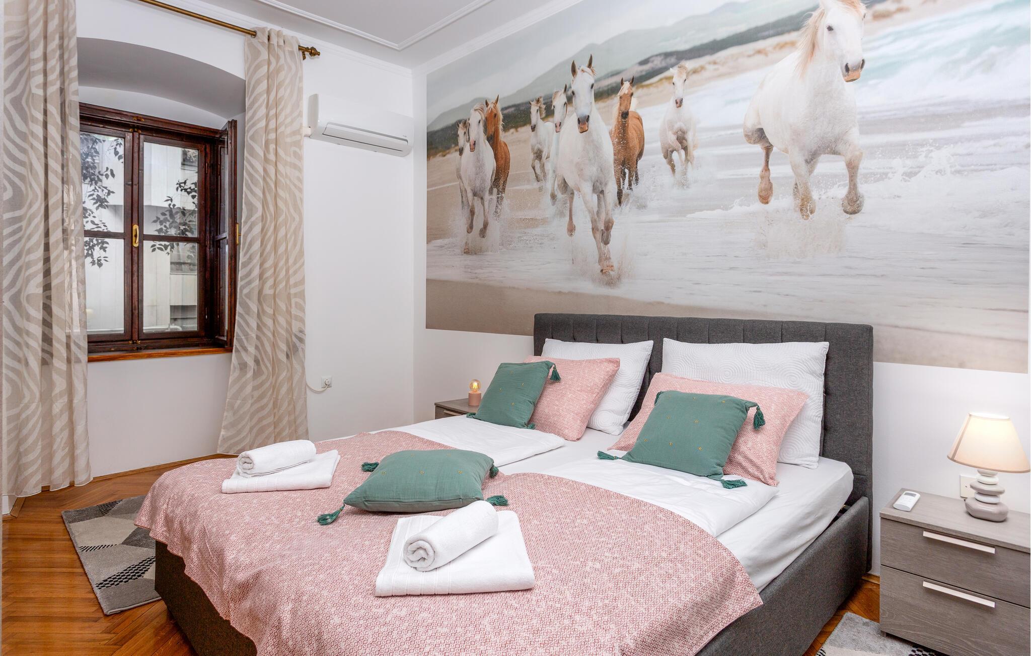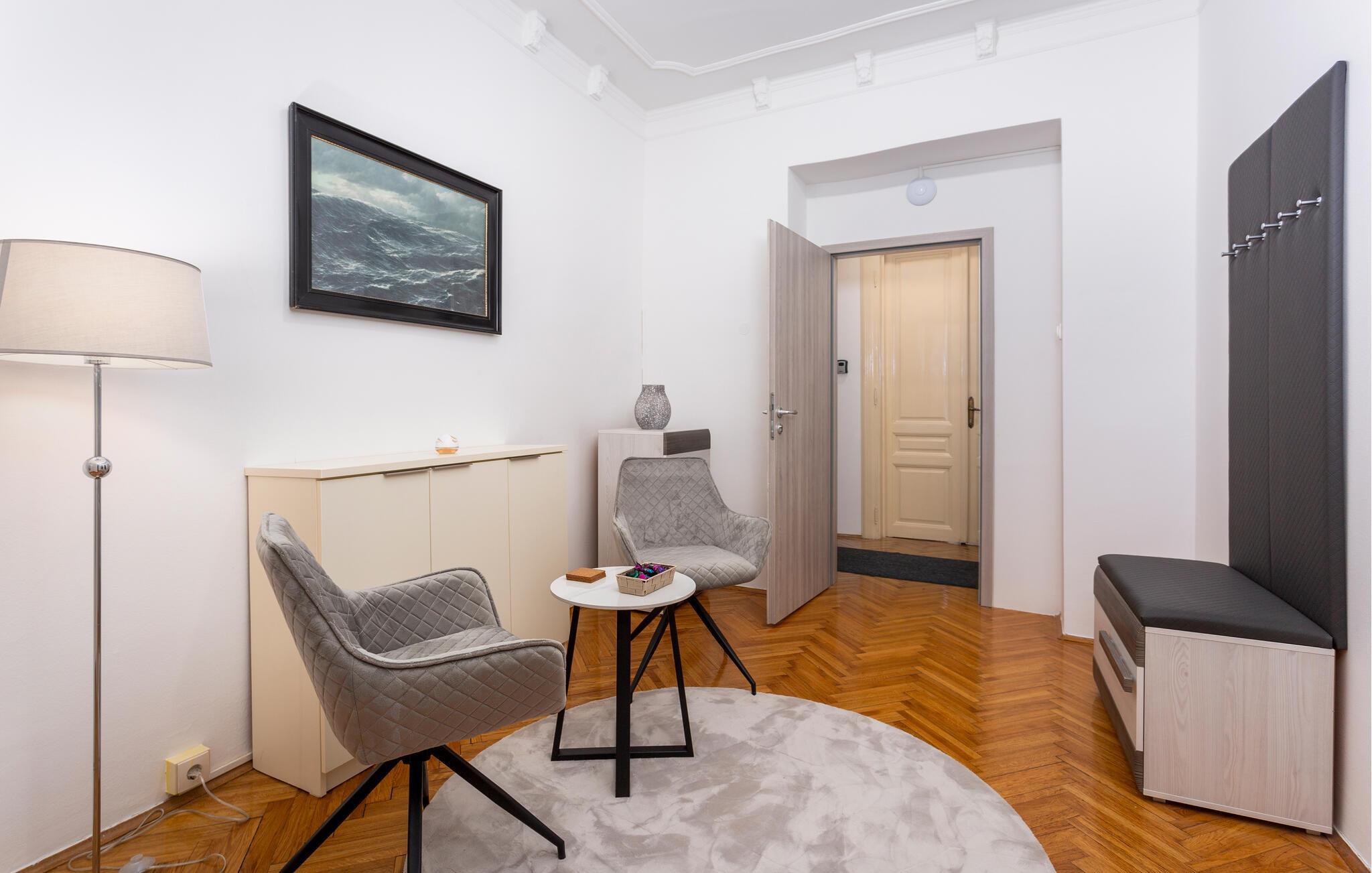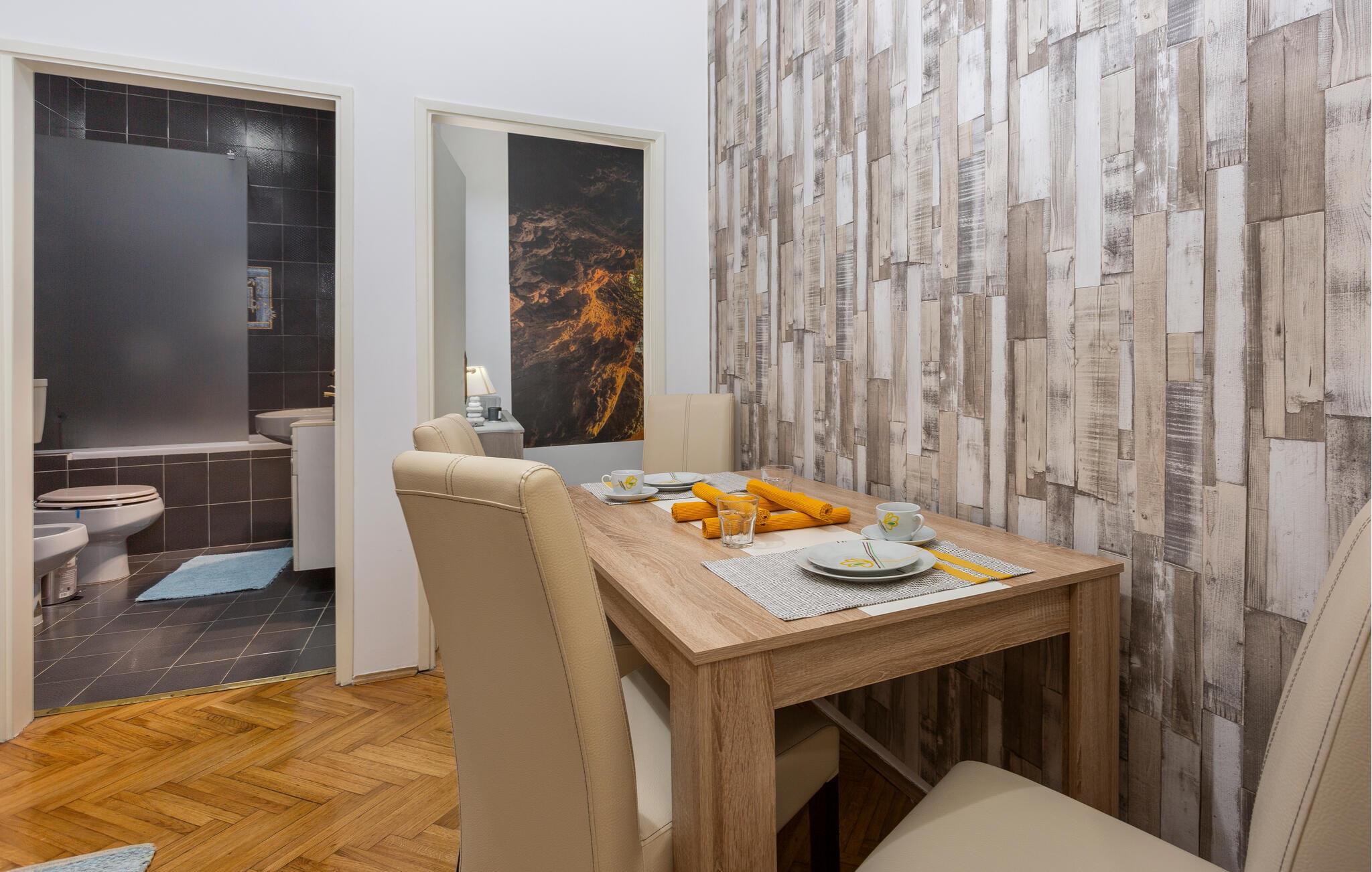 Diese geschmackvolle Ferienwohnung im Zentrum von Rijeka begeistert mit komfortabler Einrichtung, hohen Decken und ausgewählten Motivtapeten. Die schönen Möbel und das ansprechende Ambiente schaffen eine charmante und luxuriöse Atmosphäre, die zum Entspannen einlädt. Nach einem erlebnisreichen Tag in der Stadt bietet diese Wohnung den perfekten Rückzugsort, um den Abend in stilvollem Komfort ausklingen zu lassen – ein idealer Ausgangspunkt, um die pulsierende Stadt und ihre Kultur zu erkunden.