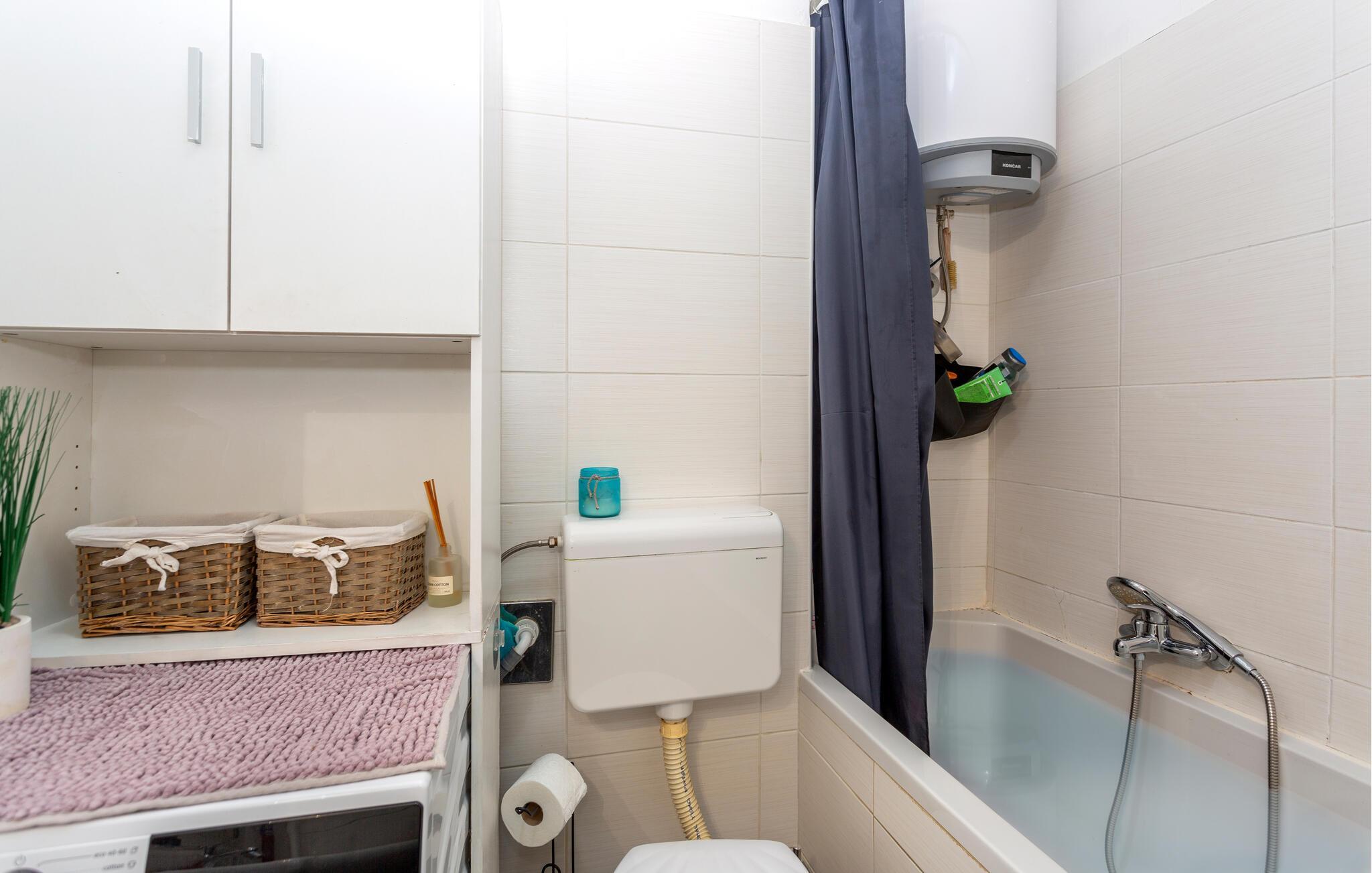 Badezimmer 4m2 (nr. 1) - WC. Warmes und kaltes Wasser. Badewanne
