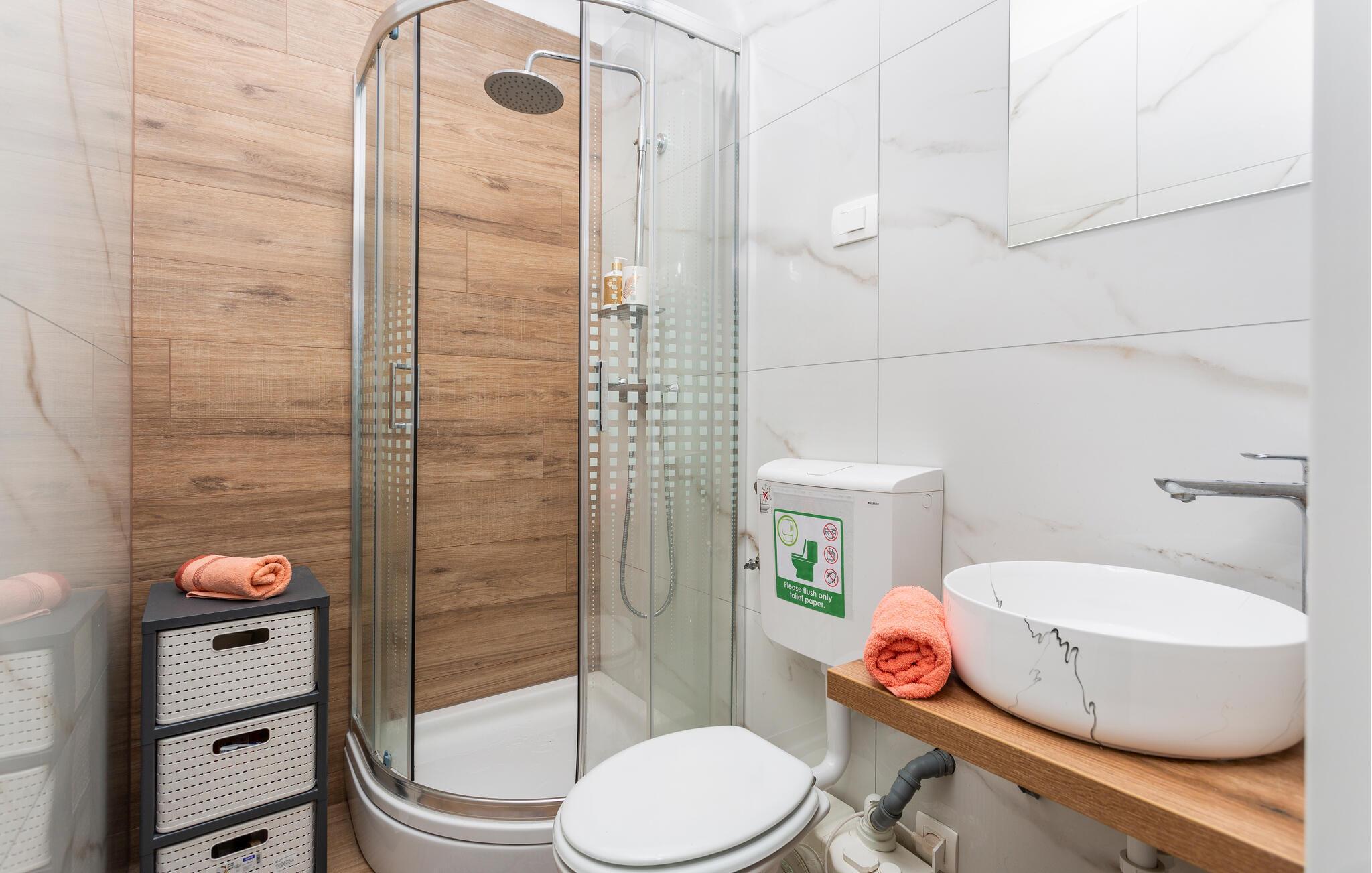 Badezimmer 3m2 (nr. 1) - WC. Warmes und kaltes Wasser. Dusche