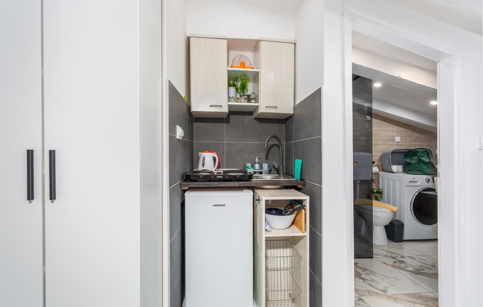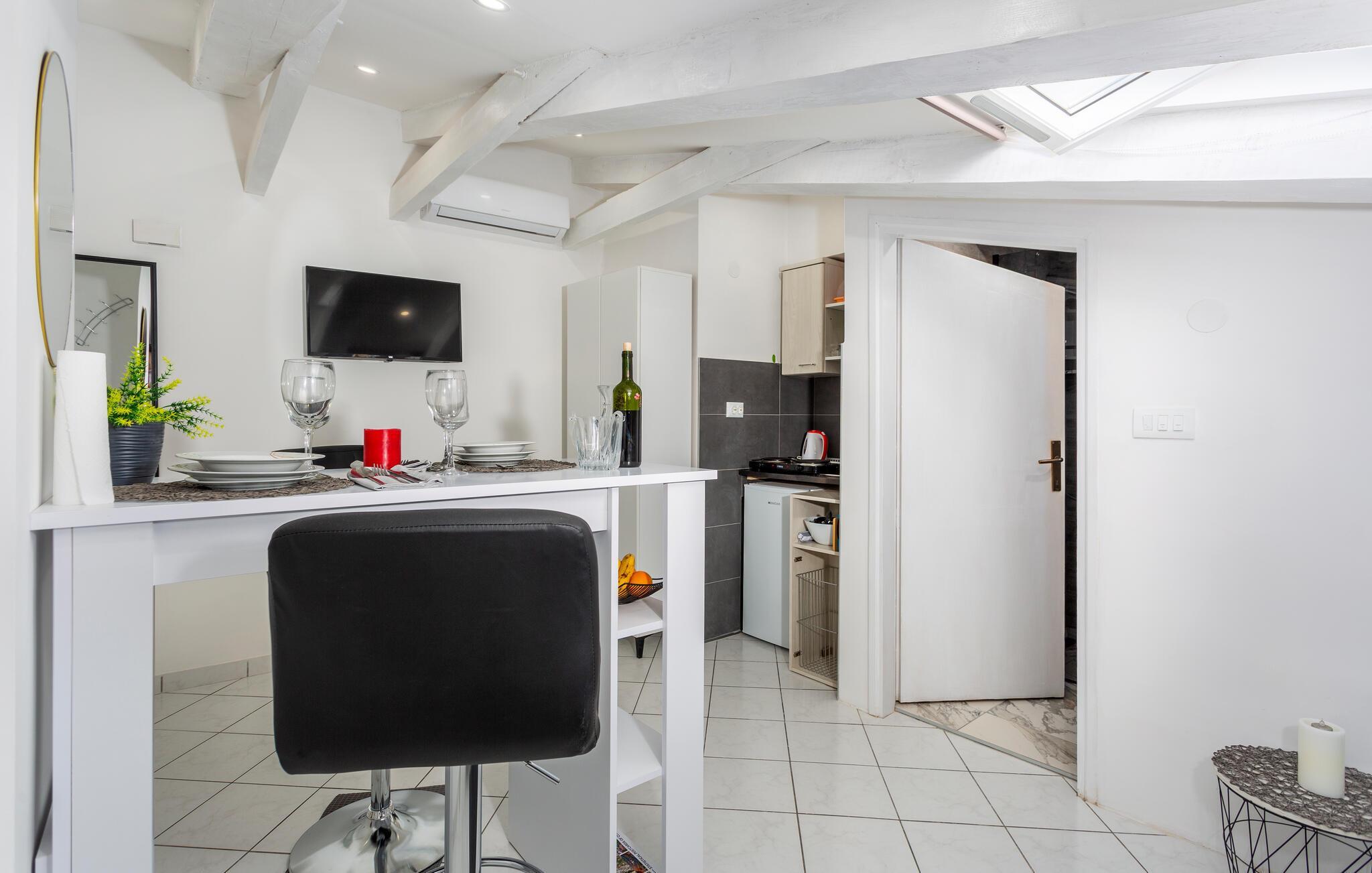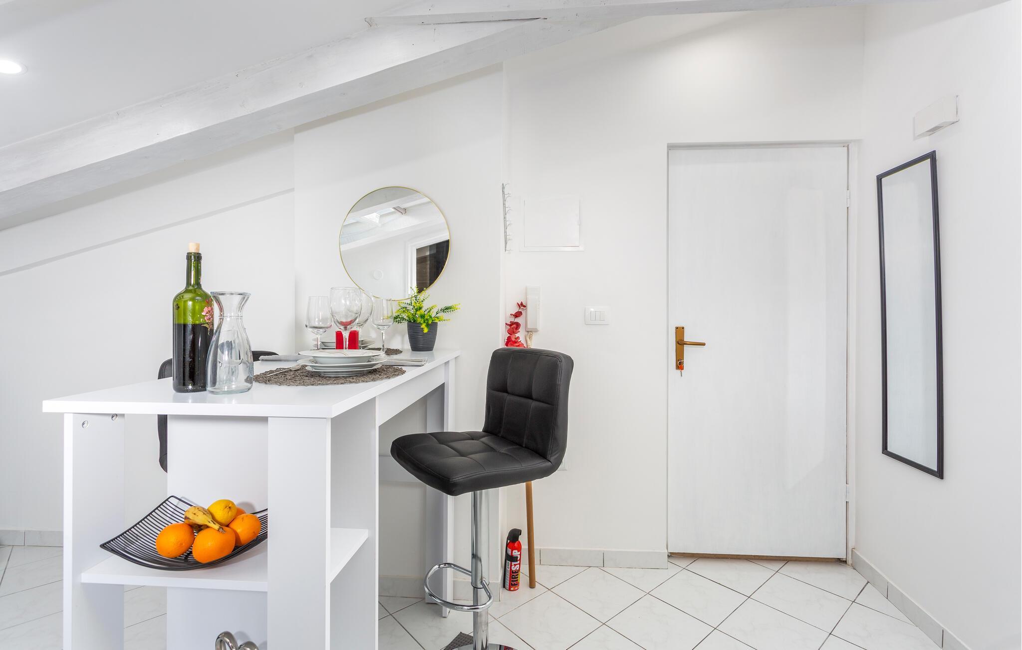 Verbringen Sie Ihren Urlaub in dieser Dachgeschosswohnung mitten im Zentrum von Rijeka. Die Unterkunft bietet Ihnen eine stilvolle, helle Atmosphäre für erholsame Tage zu zweit. Entspannen Sie nach einem Stadtbummel bei einem Glas Wein am Esstresen oder starten Sie mit einem frischen Kaffee entspannt in den Tag. Das Apartment ist modern eingerichtet und gut durchdacht auf kleinem Raum. Nutzen Sie die kompakte Küchenzeile für einfache Mahlzeiten.