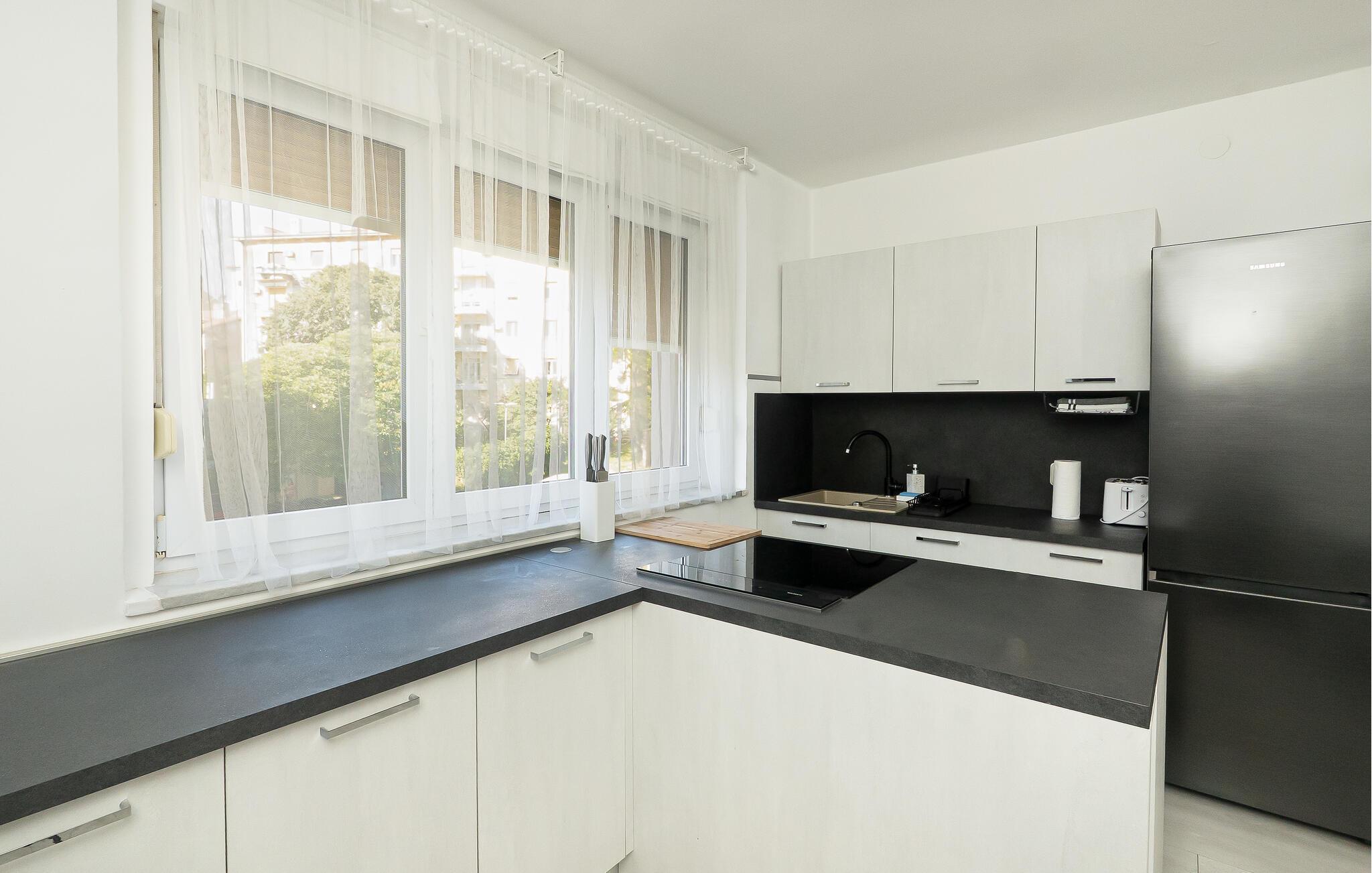 Diese in dezenten Farben gehaltene Wohnung bietet Ihnen alles, was Sie für eine entspannte Auszeit vom Alltag brauchen. Ein gemütliches Sofa, ein Fernseher und eine moderne Küche laden Sie zu erholsamen Stunden beim Plaudern, Fernsehen oder Kochen ein. Kommen Sie hier zur Ruhe und genießen Sie Ihre Wohlfühlzeit ganz nach Ihren Wünschen.