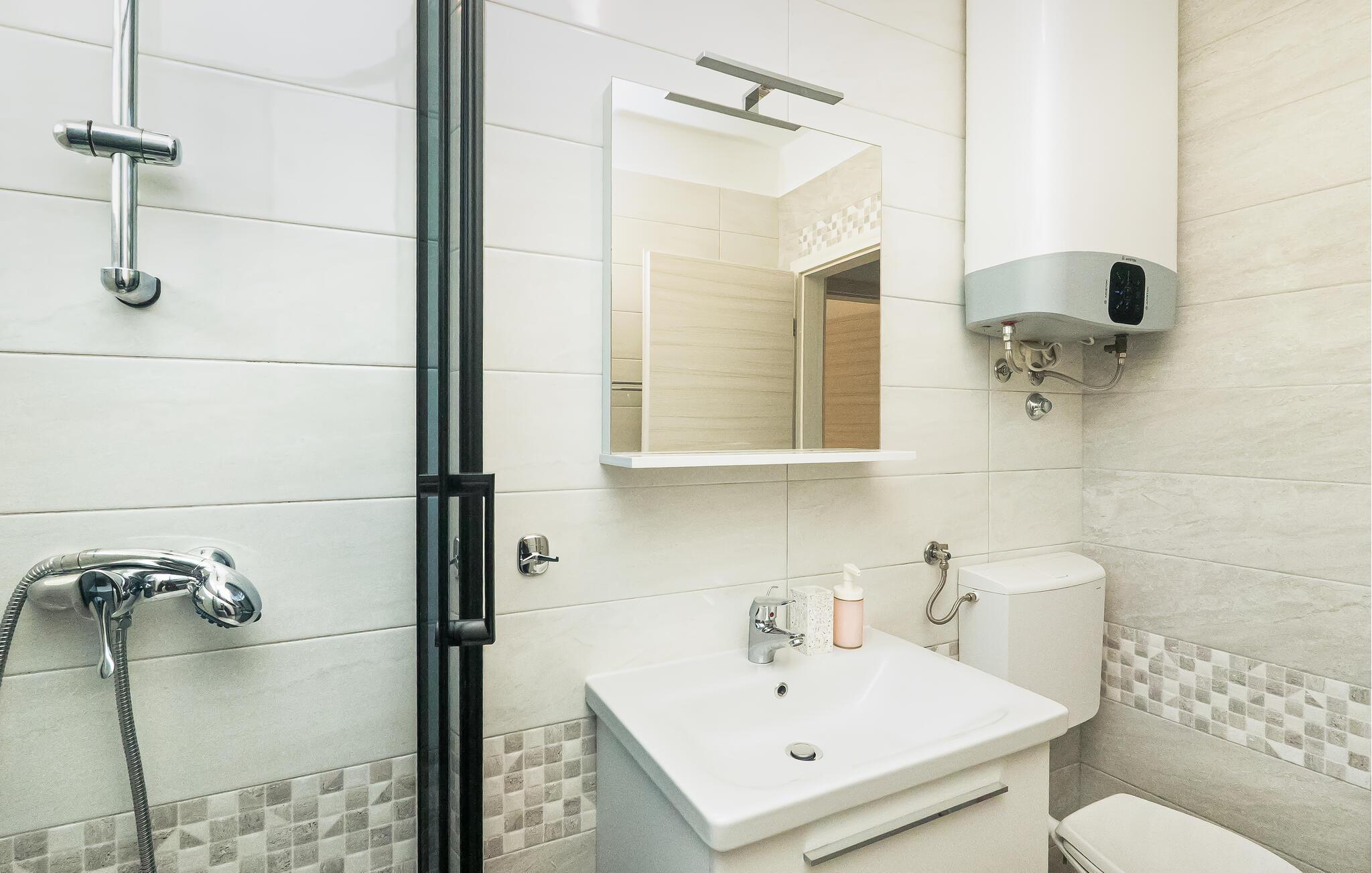 Badezimmer 7m2 (nr. 1) - WC. Warmes und kaltes Wasser. Dusche