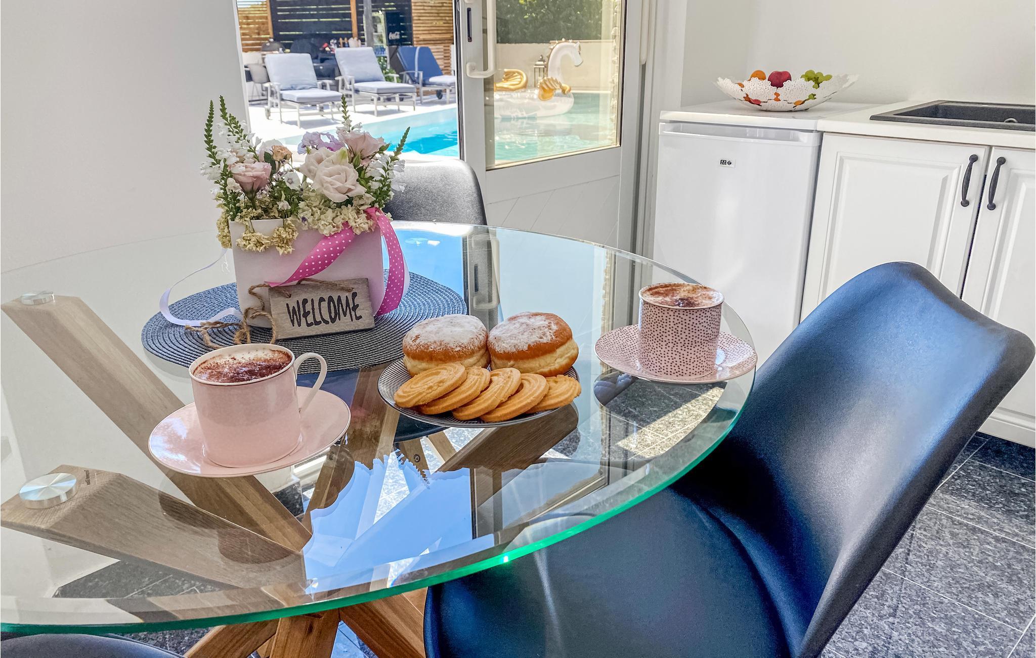 Entspannen Sie auf der schönen großen Terrasse in guten Gartenmöbeln. Zur Zubereitung leckerer Mahlzeiten haben Sie nicht nur den Grill, sondern auch eine Außenküche zur Verfügung.