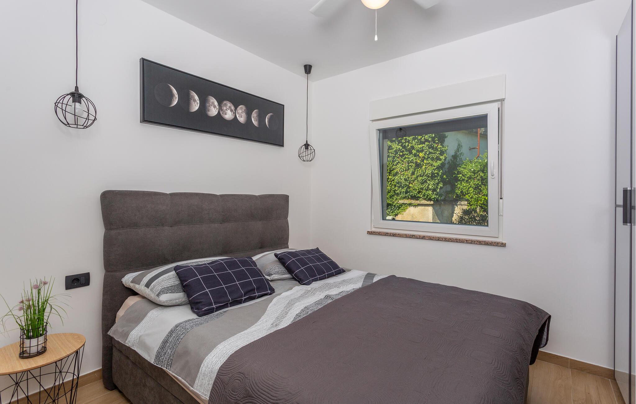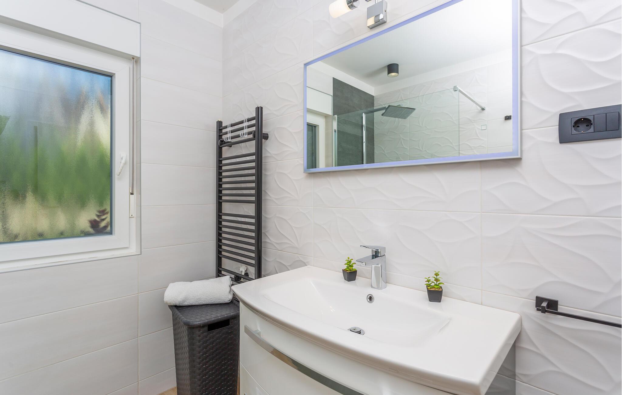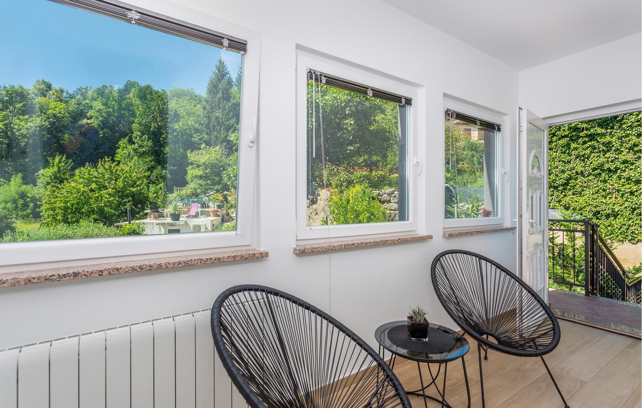 Erleben Sie Luxus und Komfort in Ihrer Ferienwohnung in Opatija-Rukavac, die sich durch ihre stilvolle Einrichtung und ein einladendes Ambiente auszeichnet. Die hellen Innenräume laden Sie ein, dank des modernen Komforts und einer entspannten Atmosphäre, zur Ruhe zu kommen. Das Kochen in der modernen Küche wird zum Erlebnis. Helfen Sie alle mit und entspannen Sie sich am Abend bei einem unterhaltsamen Film auf dem Sofa.