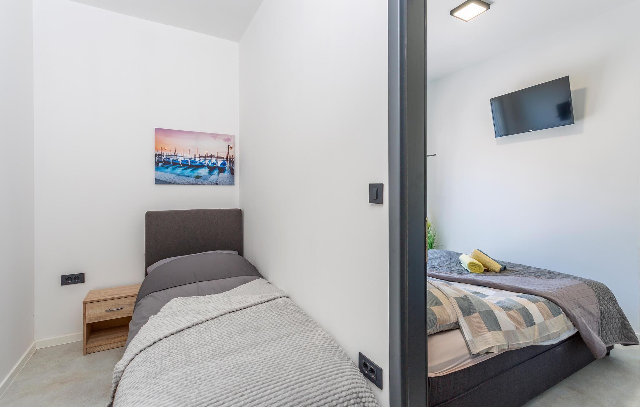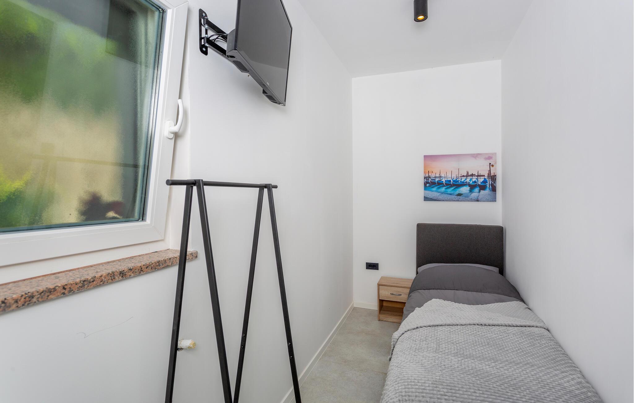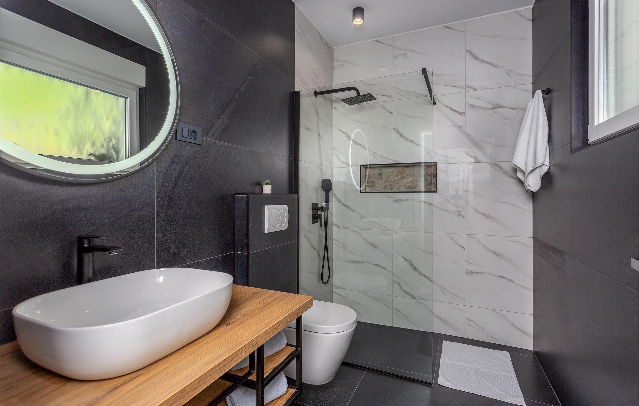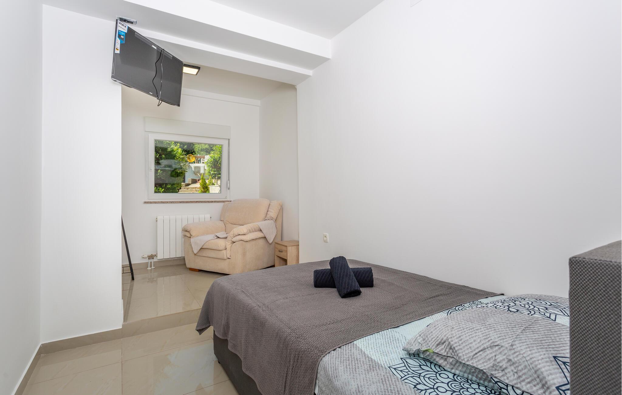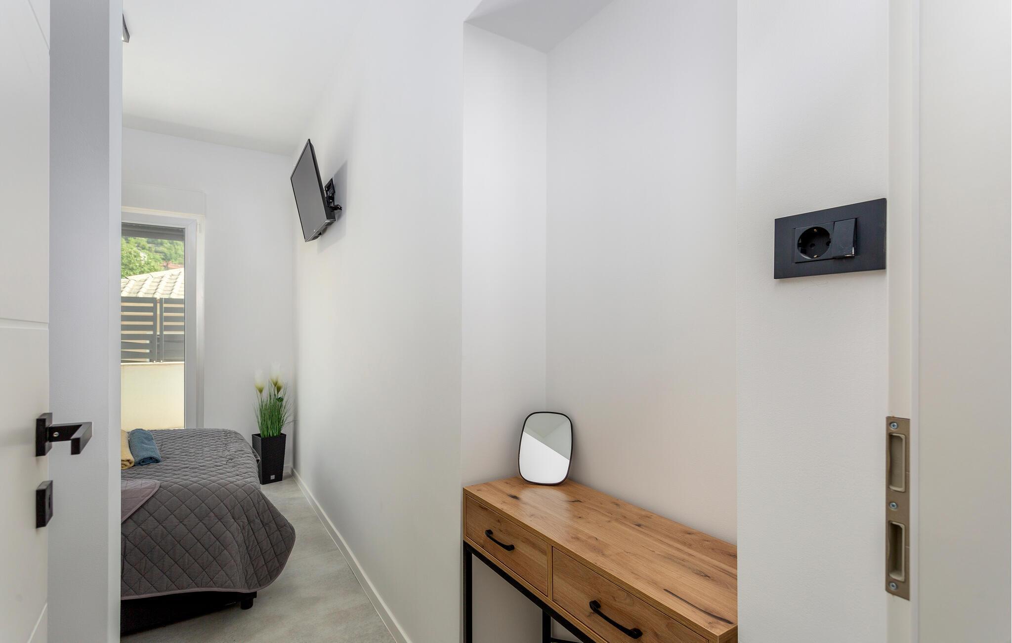 Erleben Sie Luxus und Komfort in Ihrer Ferienwohnung in Opatija-Rukavac, die sich durch ihre stilvolle Einrichtung und ein einladendes Ambiente auszeichnet. Die hellen Innenräume laden Sie ein, dank des modernen Komforts und einer entspannten Atmosphäre, zur Ruhe zu kommen. Das Kochen in der modernen Küche wird zum Erlebnis. Helfen Sie alle mit und entspannen Sie sich am Abend bei einem unterhaltsamen Film auf dem Sofa.