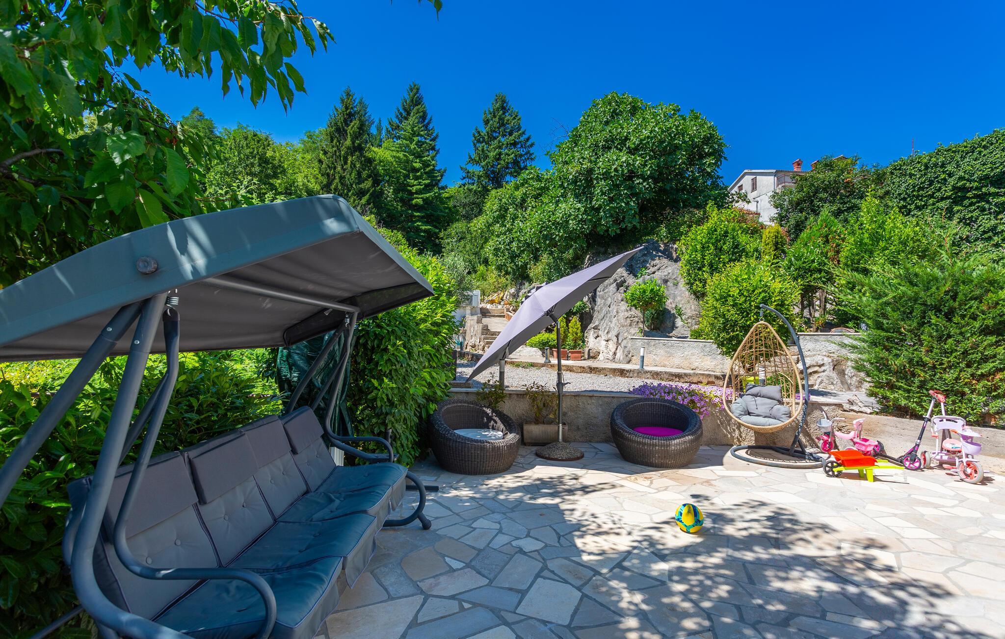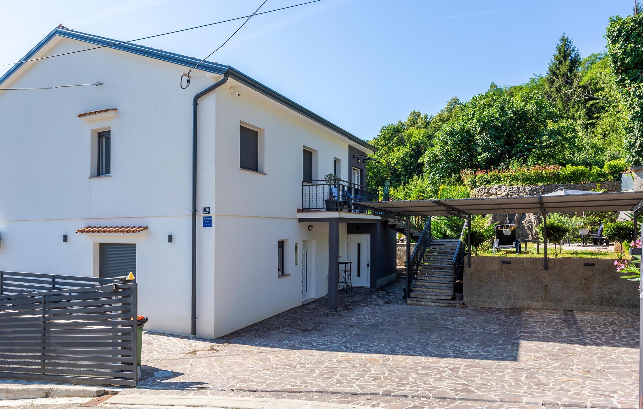 Rukavac, ein malerisches Dorf in der Nähe von Opatija, bietet Ihnen zahlreiche Freizeitmöglichkeiten. Die Umgebung lädt Sie zu entspannenden Spaziergängen entlang der Küste ein oder zu Aktivitäten wie Radfahren und Wandern in der beeindruckenden Natur des Ucka Parks. Besuchen Sie die nahegelegene Stadt Opatija, bekannt für ihre historische Architektur und eleganten Promenaden. Die Strände und das kristallklare Wasser sind ideal zum Schwimmen und Sonnenbaden. Tauchen Sie ein und lassen sich von den Wellen hin und her tragen. Für kulturelle Ausflüge bieten sich Tagestrips in die charmanten Städte Rijeka und Pazin an.
