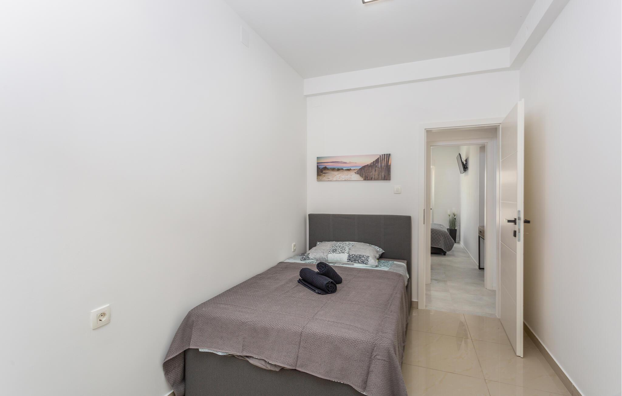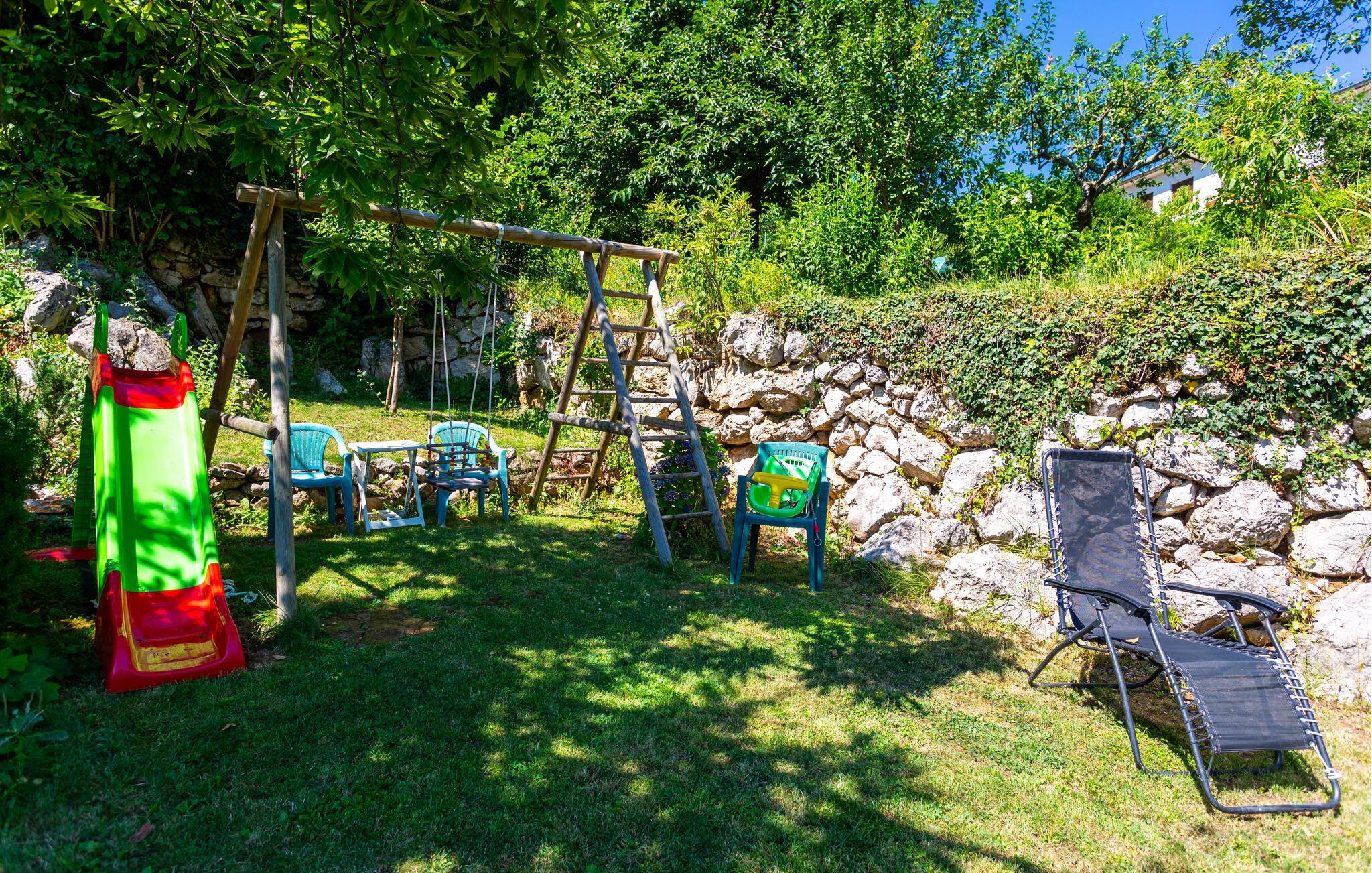 Die geräumige Terrasse ist der perfekte Ort, um den Tag beim Sonnen und gemeinsamen Verweilen im Garten zu genießen. Im Haus befinden sich weitere Ferienwohnungen sowie ein großer Garten, der ideal für Familien ist. Ein Grillbereich ermöglicht Ihnen gesellige Abende im Freien, während Einrichtungen für Kinder für zusätzlichen Komfort sorgen.