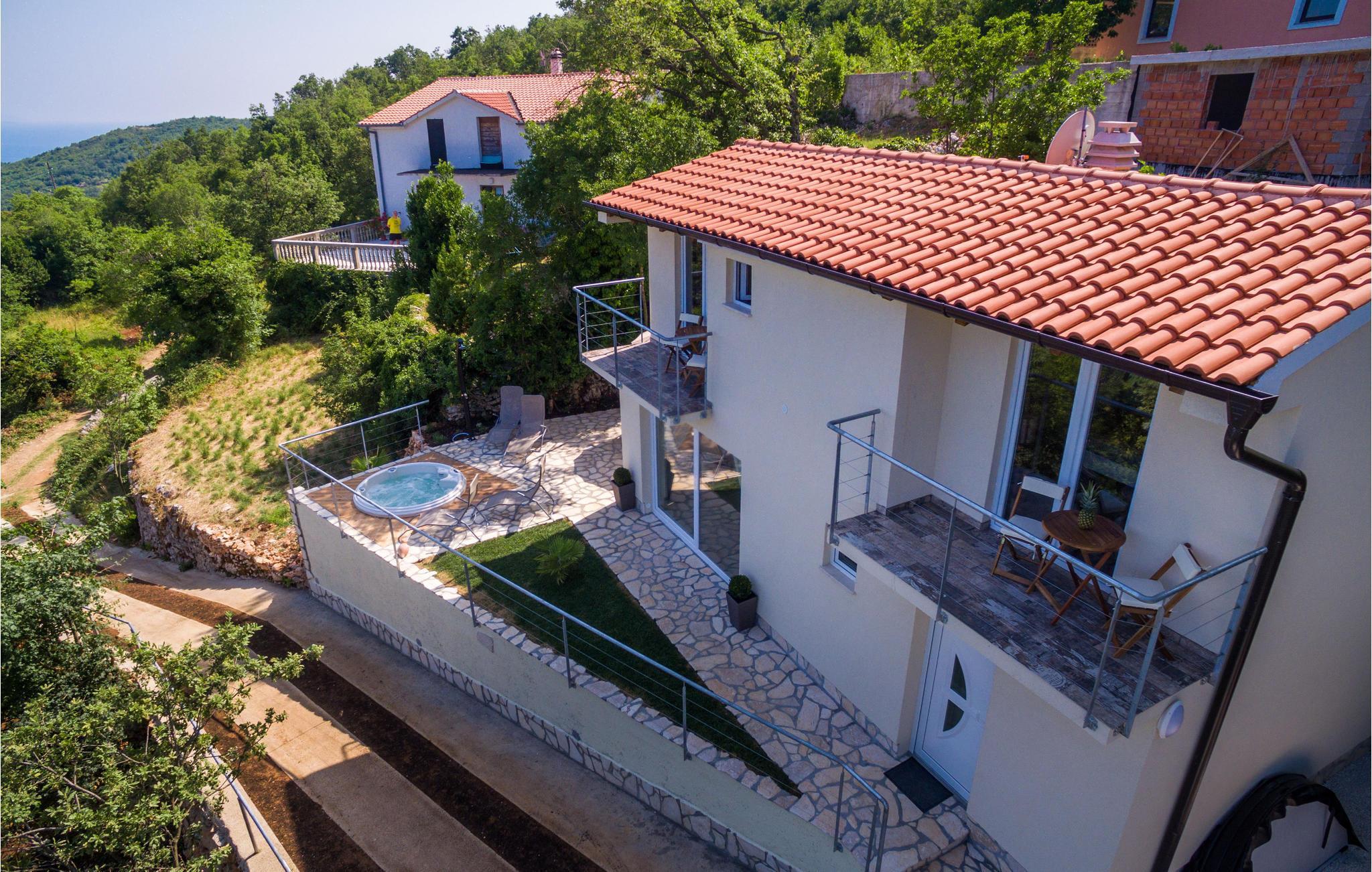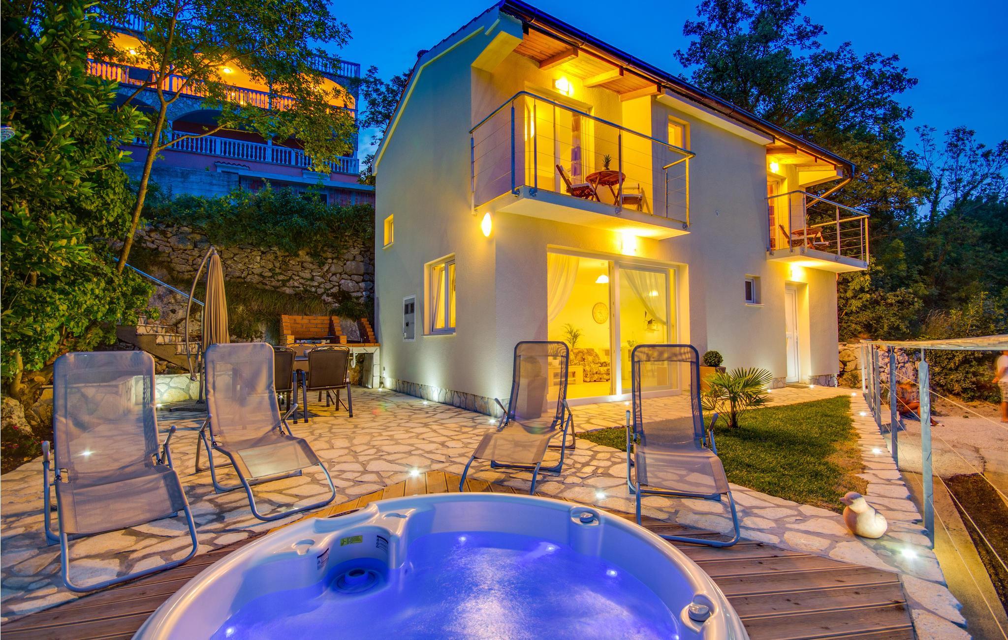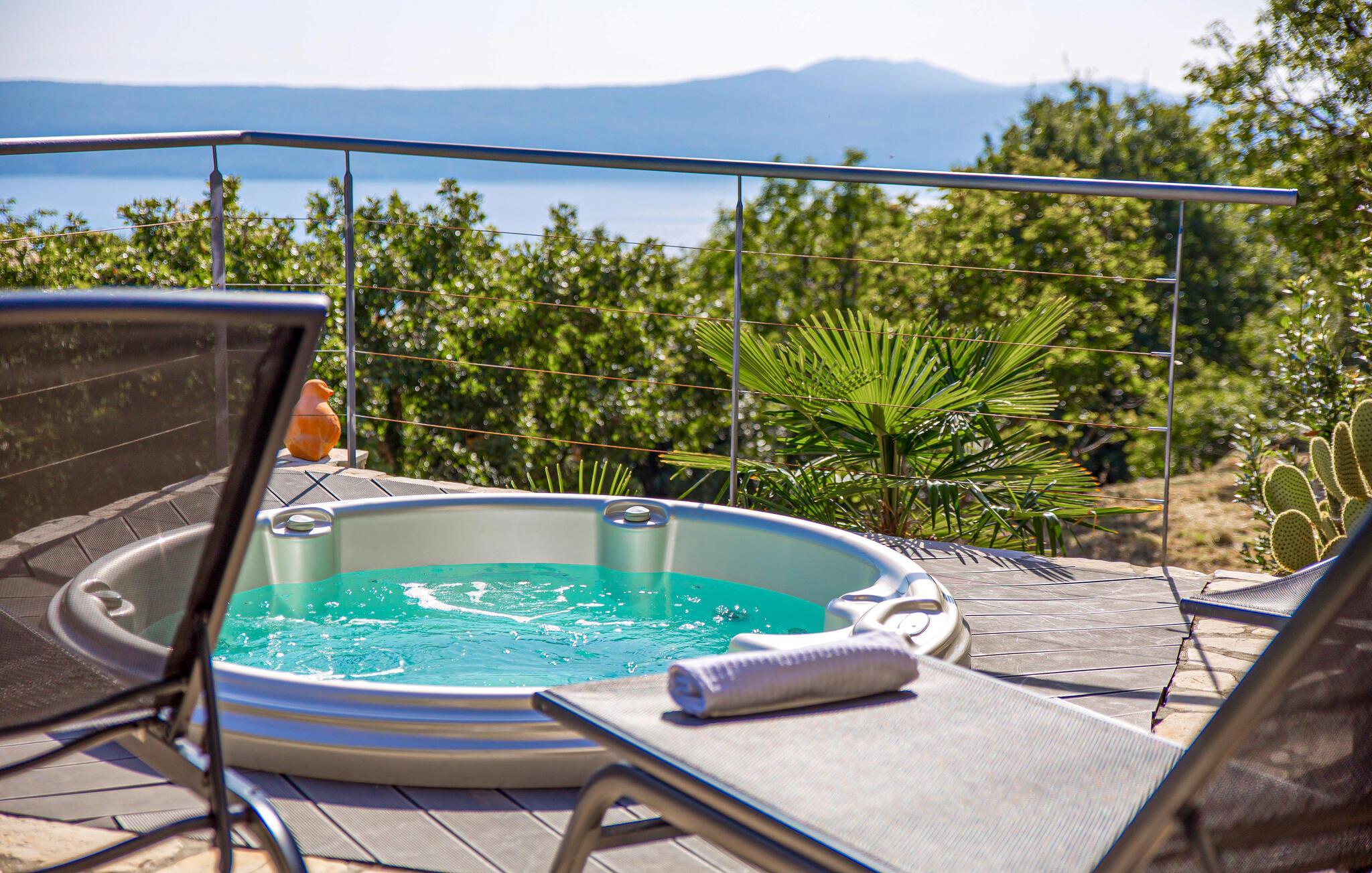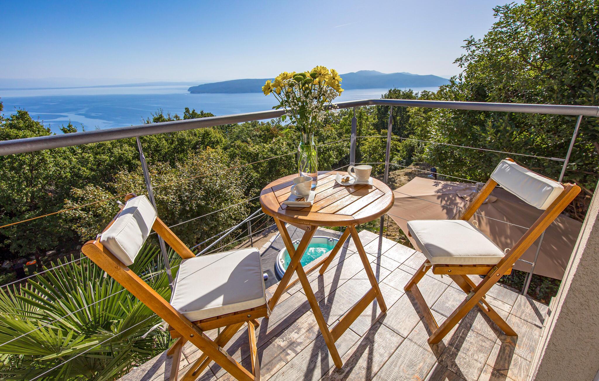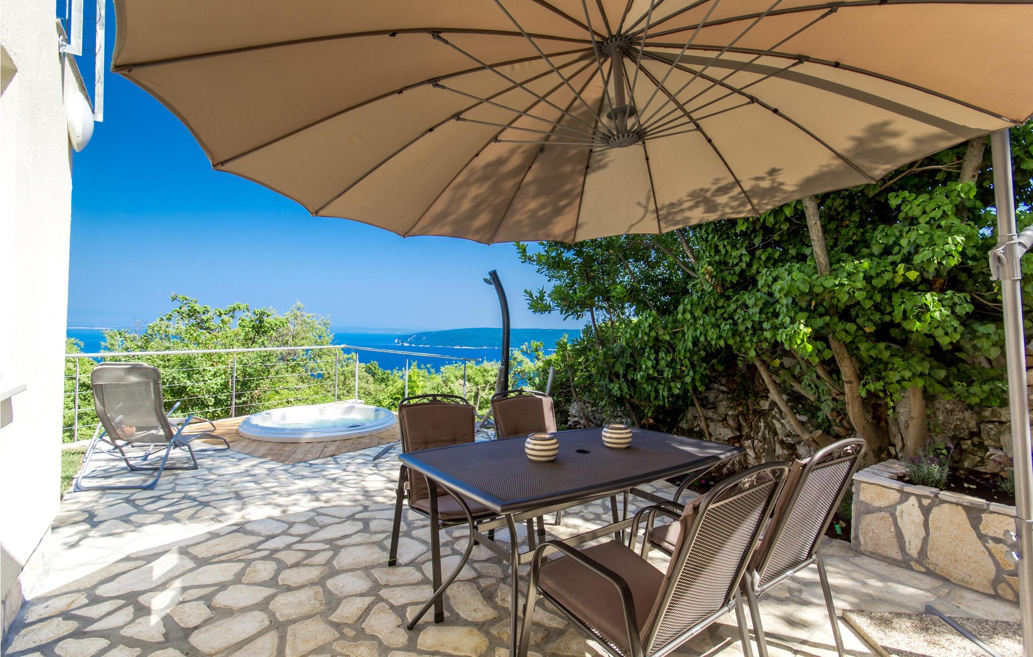 Auf der Außenterrasse kommen Sie immer wieder zusammen und erleben im Freien bei einem atemberaubenden Panoramablick im Whirlpool eine entspannte Atmosphäre. Rundherum locken Ausflüge nach Rijeka, an Buchten und Strände oder in den Nationalpark Ucka.