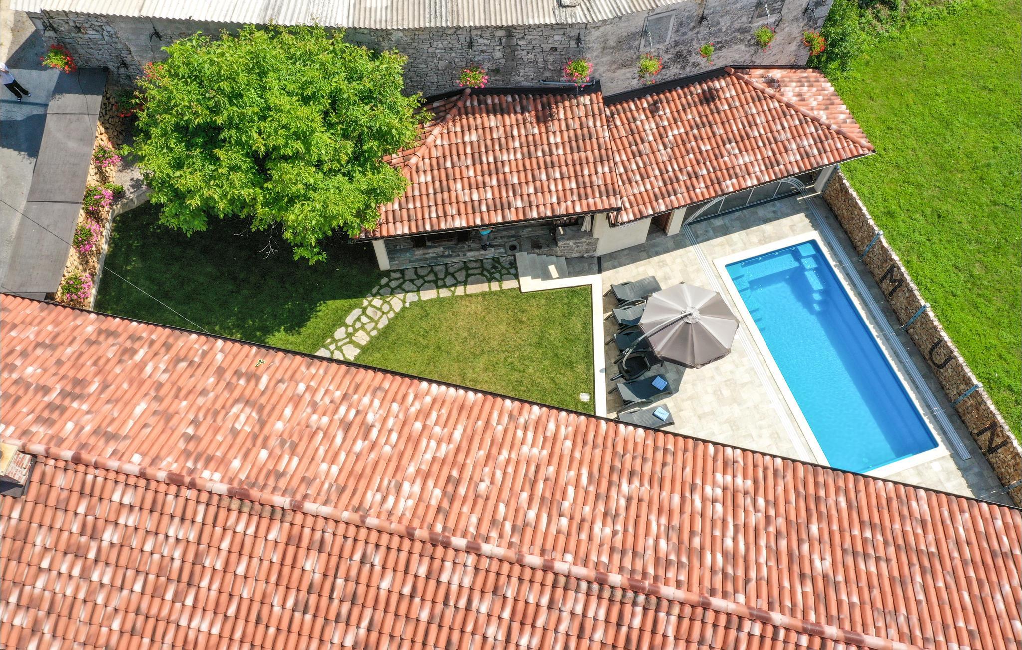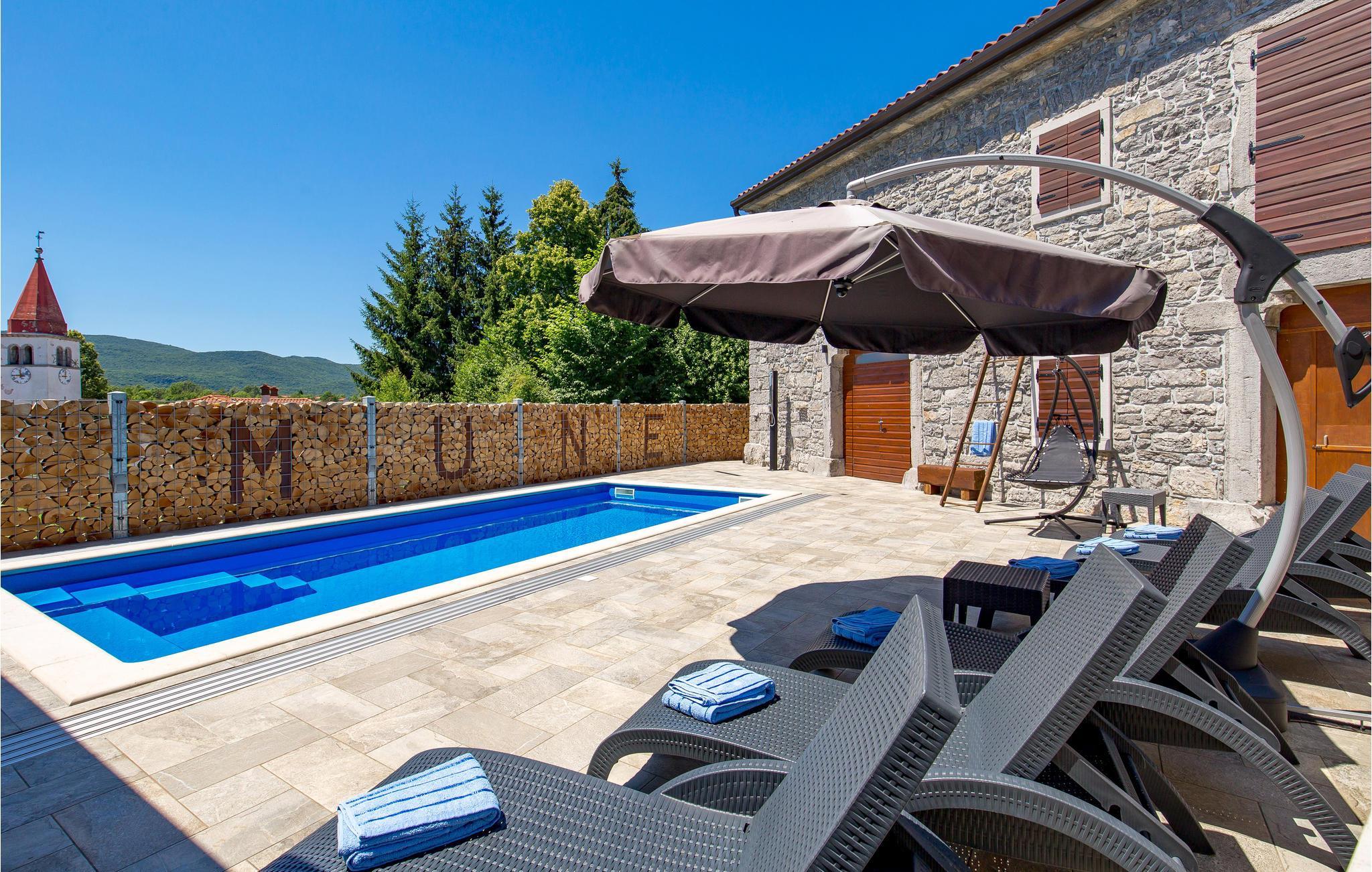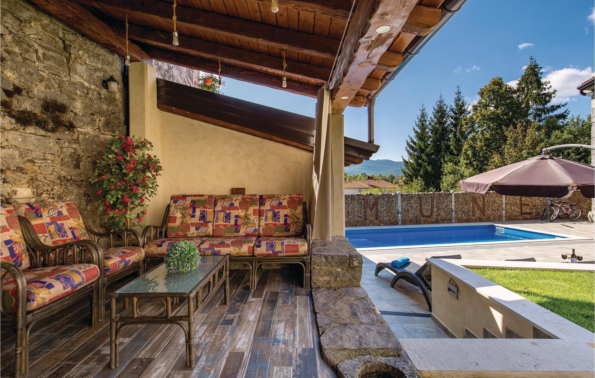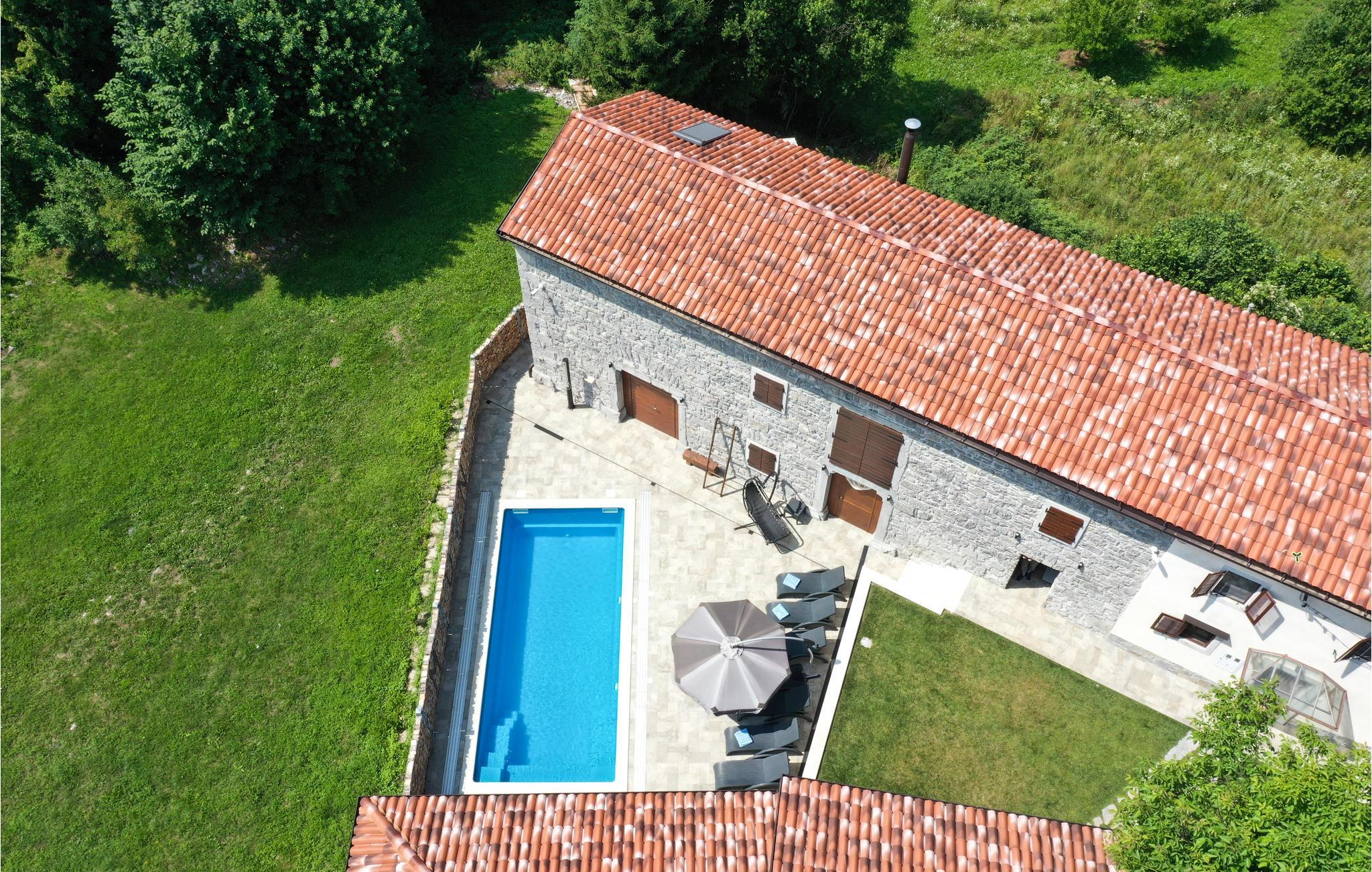 Das charmante Ferienhaus liegt im kleinen Ort Vele Mune. Hier werden Sie einen perfekten Urlaub verbringen, Sie sind umgeben von einer wunderschönen Landschaft, Obstgärten, Wiesen, Teichen und Wäldern. Das Haus ist komfortabel und praktisch eingerichtet. Im Erdgeschoss liegt der Wohnraum und im Obergeschoss sind die Schlafzimmer. Der Hof ist großzügig; hier gibt es eine Terrasse, einen Pool und einen Grill. Der Pool ist mit einem UV-Sterilisator ausgestattet, der zusätzlich für die Wasserhygiene sorgt. Mit dem Billard und Darts werden Sie viel Spaß haben. Das Klima der gebirgigen Küste sorgt für warme, sonnige Tage und frische Nächte. An der Riviera von Opatija liegen schöne Strände, im alten Kastav und in Rijeka gibt es ebenfalls viel zu sehen und zu erleben. Die Kvarner Bucht beherbergt die besten Restaurants Kroatiens, sie alle verwöhnen Sie mit einer exzellenten, mediterranen Küche. In Absprache mit dem Eigentümer ist es möglich, 3 Fahrräder für Erwachsene und 2 für Kinder zu benutzen. Eine Poolkuppel sorgt für angenehmen Spaß auch in der Vor-und Nachsaison.