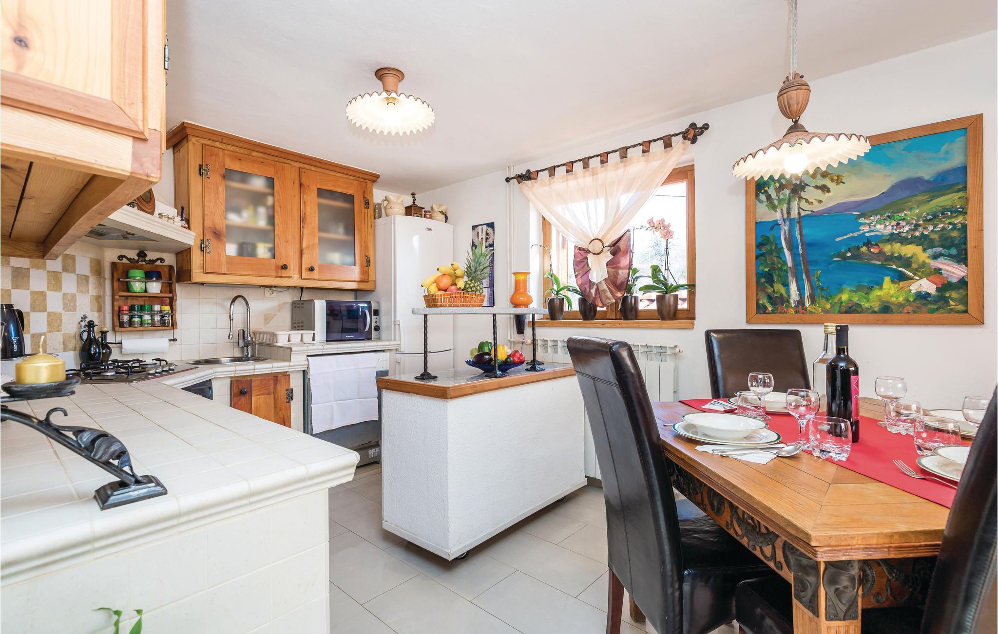 Das Haus befindet sich in einem kleinen Dorf namens Vela Mune, umgeben von Obstgärten, Wiesen, einem kleinen See und Wald. Die Innenräume sind mit viel Liebe eingerichtet und strahlen eine warme Atmosphäre aus. Da es in zwei separaten Einheiten verbunden ist, kann es bequem zwei Familien beherbergen.