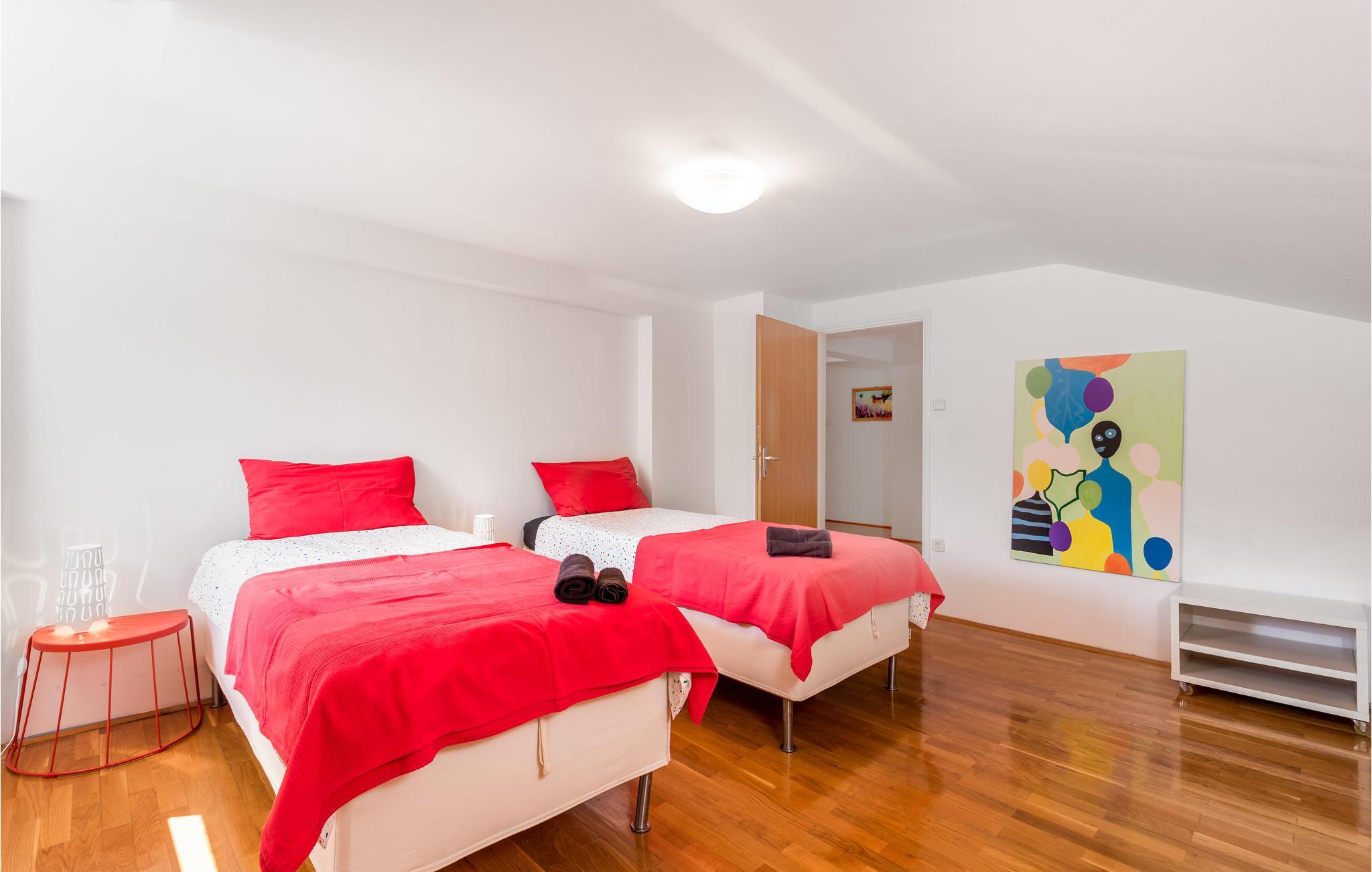 Im Hinterland von Opatija und in sehr ruhiger Lage befindet sich diese Unterkunft auf einem umzäunten Grundstück von 3850 m². Sie ist ideal für den gemeinsamen Urlaub mehrerer Familien geeignet. Sie verfügen über den 1. Stock und das Dachgeschoss. Über Außentreppen erreichen Sie die erste Etage und im Dachgeschoss ist die niedrigste Deckenhöhe 120 cm. Hinter dem Haus befinden sich der Außenpool sowie eine Gartenlaube, in der Sie gemütlich beisammen sitzen können.