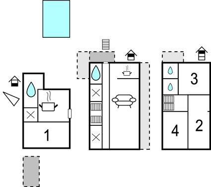 Badezimmer (nr. 3) - WC. Warmes und kaltes Wasser. Dusche