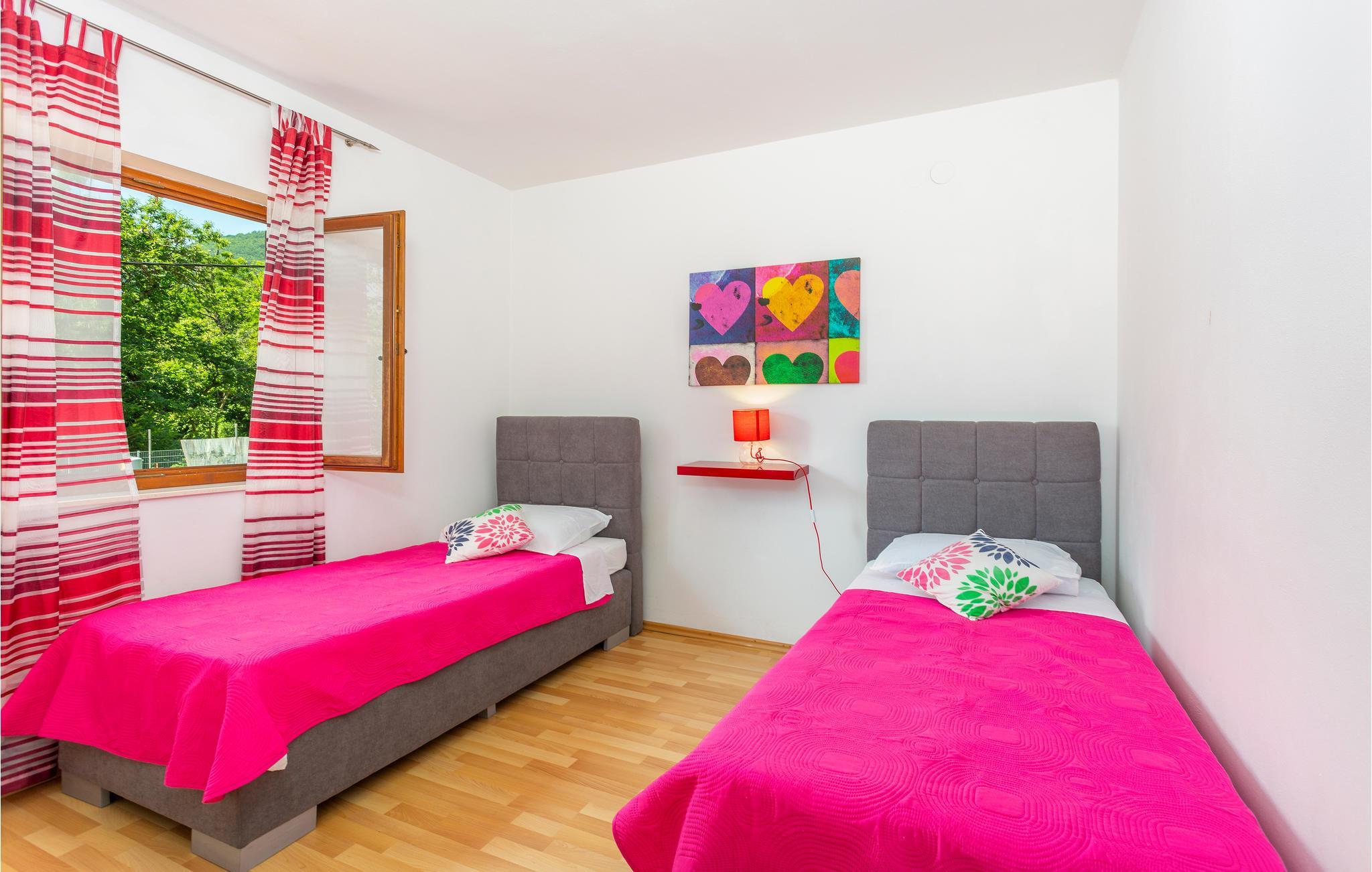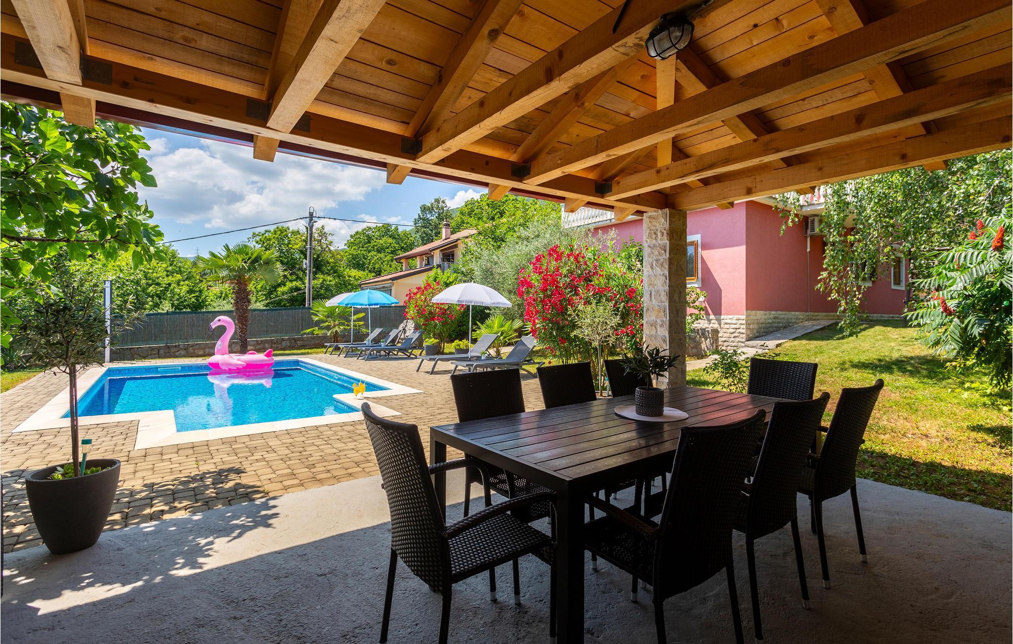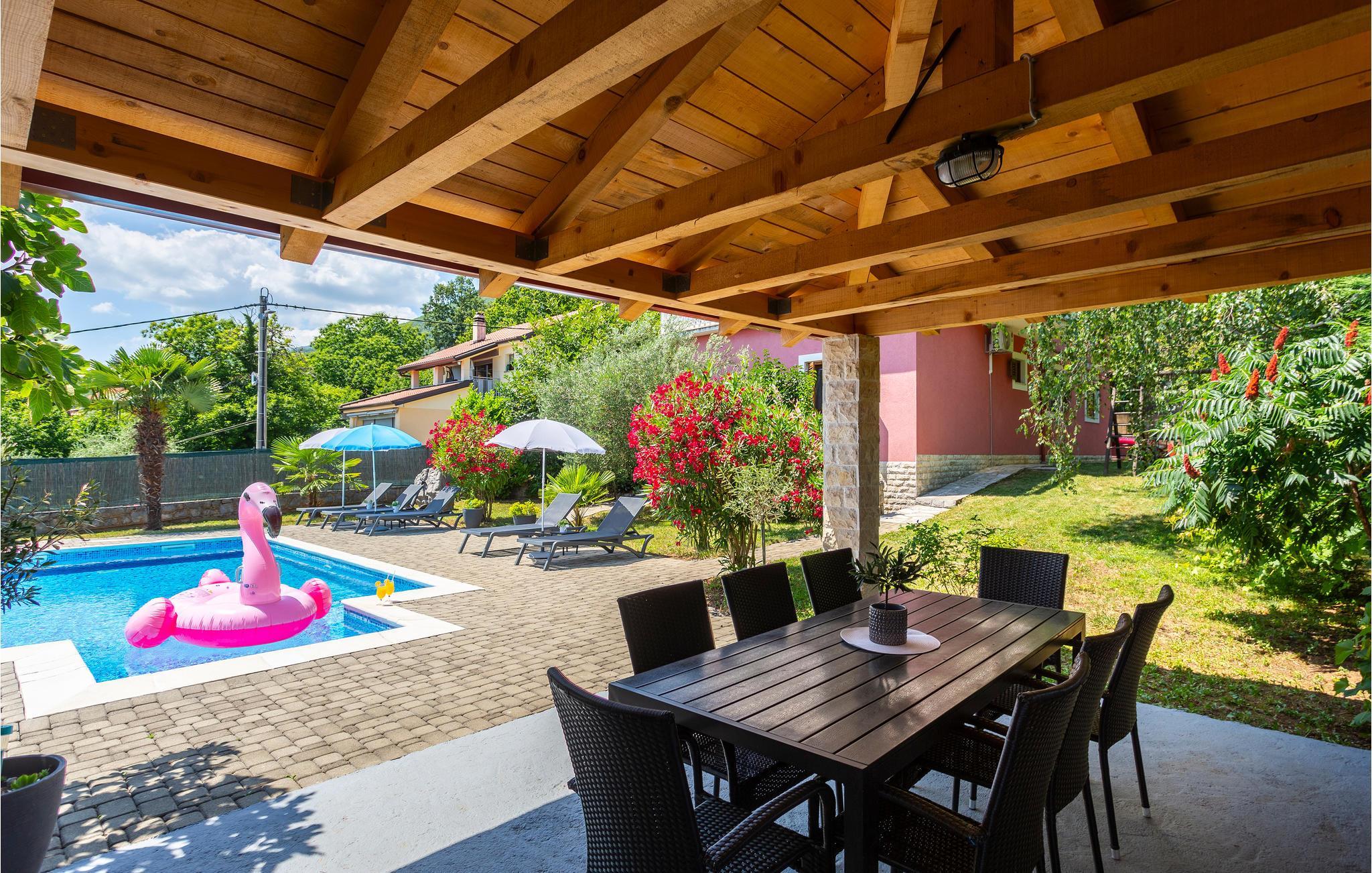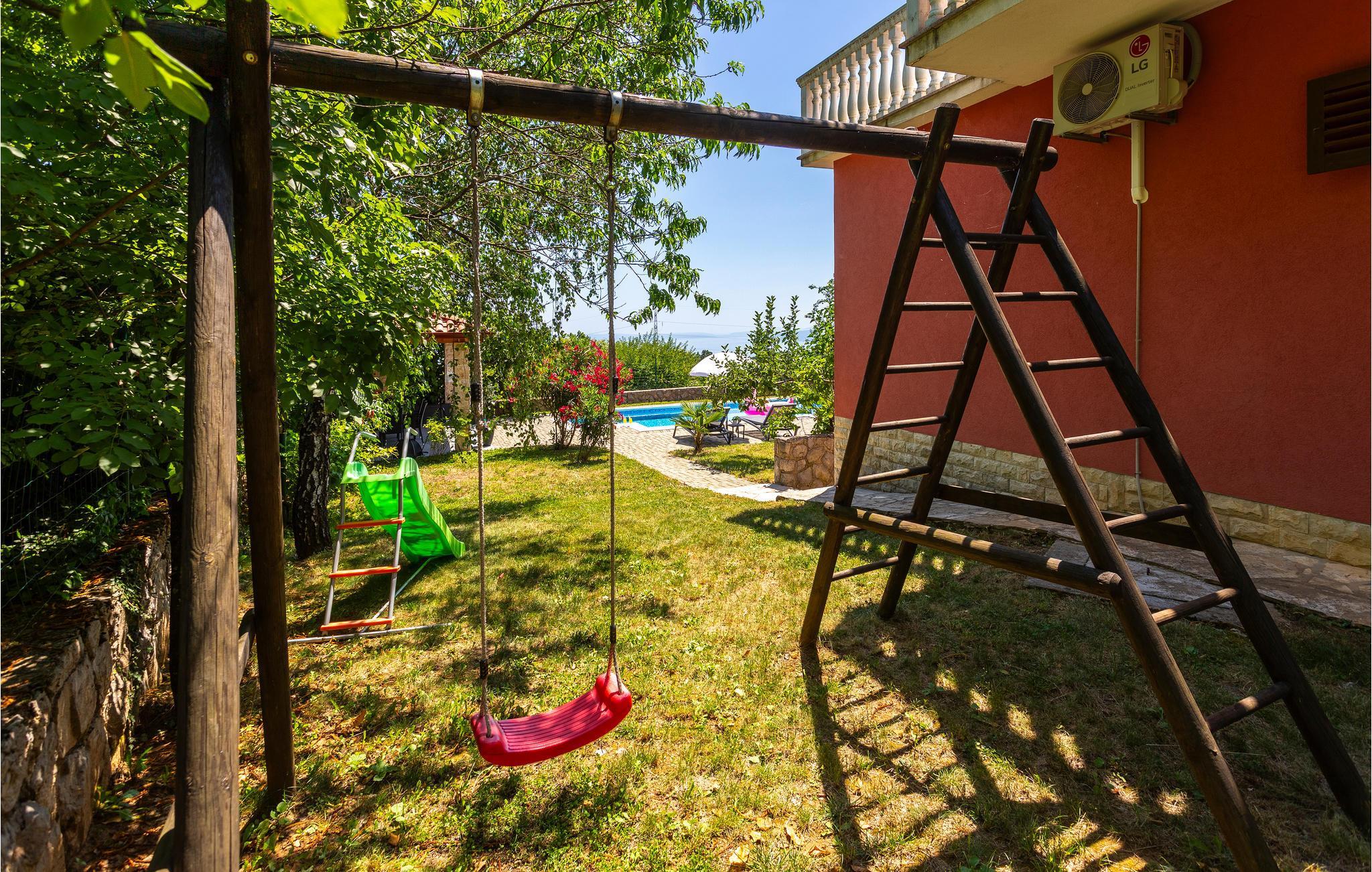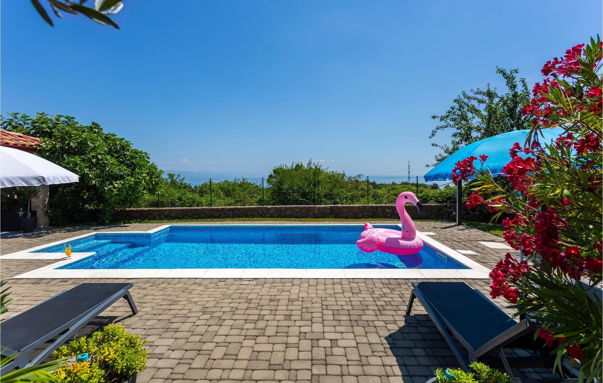 Dieses Ferienhaus befindet sich auf den Berghängen des Ucka Gebirges mit einem wunderschönen Ausblick auf die Kvarner Bucht. Das Haus hat zwei Stockwerke mit Innentreppen. Die große Terrasse ist im Obergeschoß, mit einer Spielecke für Kinder und wird den Ansprüchen zweier Familien gerecht. Die meiste Zeit werden Sie am Pool und auf der überdachten Terrasse im Garten verbringen, wo Sie am Grill leckere Speisen zubereiten können. Nur ein paar Autominuten entfernt sind die bekannten Strände Moscenicka draga und Icici gelegen. Lernen Sie beim Abendspaziergang auch den bekannten Ferienort Opatija und seine Strandpromenade kennen, welche sich über mehrere Kilometer durch die Küstenorte zieht.
