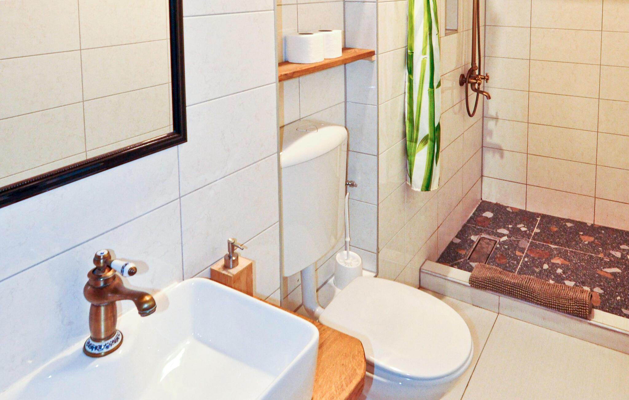 Badezimmer 4m2 (nr. 1) - WC. Warmes und kaltes Wasser. Dusche