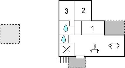 Badezimmer 3m2 (nr. 2) - WC. Warmes und kaltes Wasser. Dusche