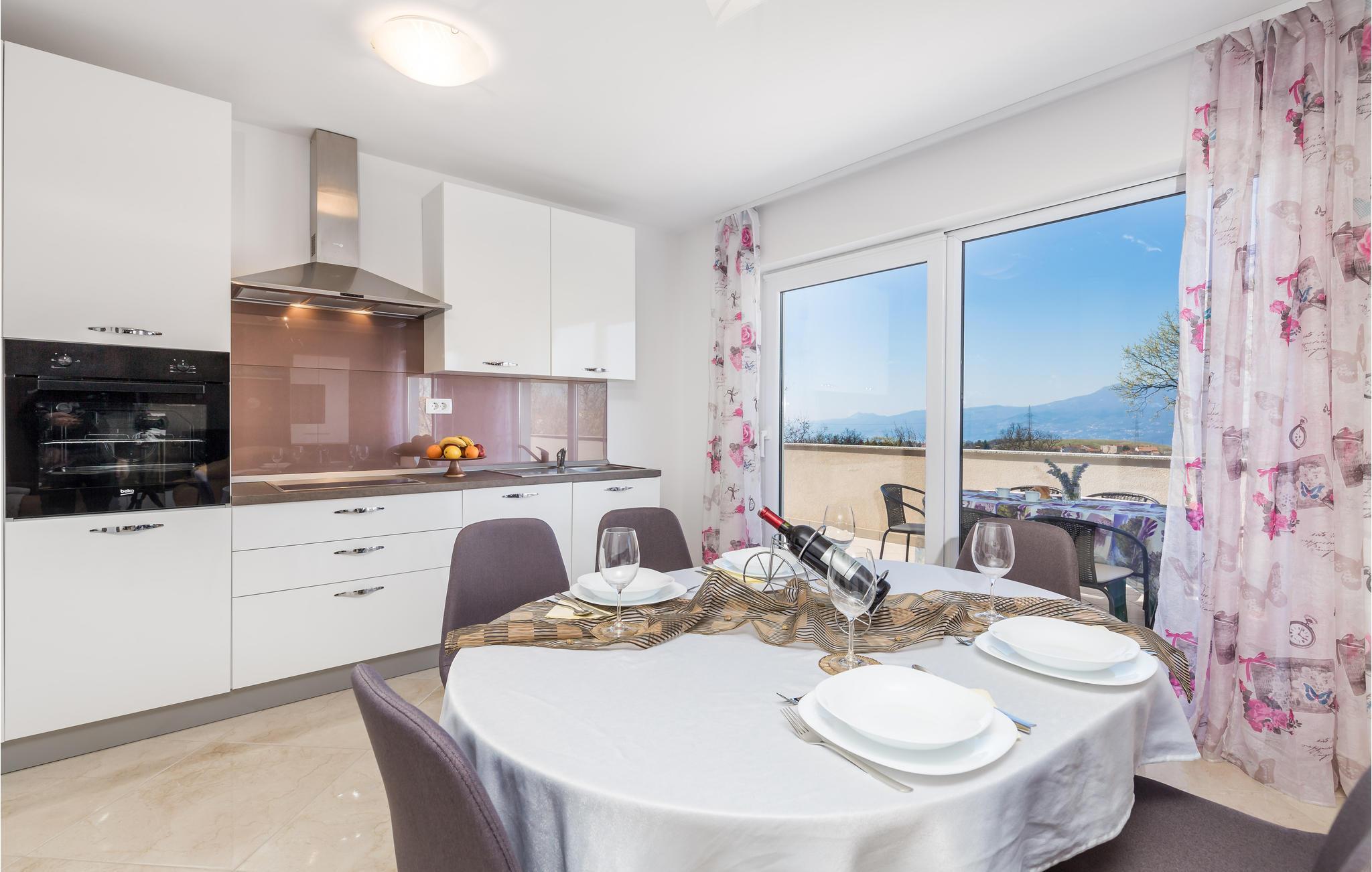 Diese geräumige und schön eingerichtete Ferienwohnung befindet sich im 1. Stock eines Einfamilienhauses im Hinterland der Opatija Riviera und der Stadt Rijeka. Die angenehm eingerichteten Wohnräume bestehen aus 2 Schlafzimmern, 1 Badezimmer und einem geräumigen Wohnzimmer mit Küche. Vom Wohnzimmer haben Sie direkten Zugang zur Terrasse, auf der Sie tagsüber die angenehmen Sonnenstrahlen genießen können.