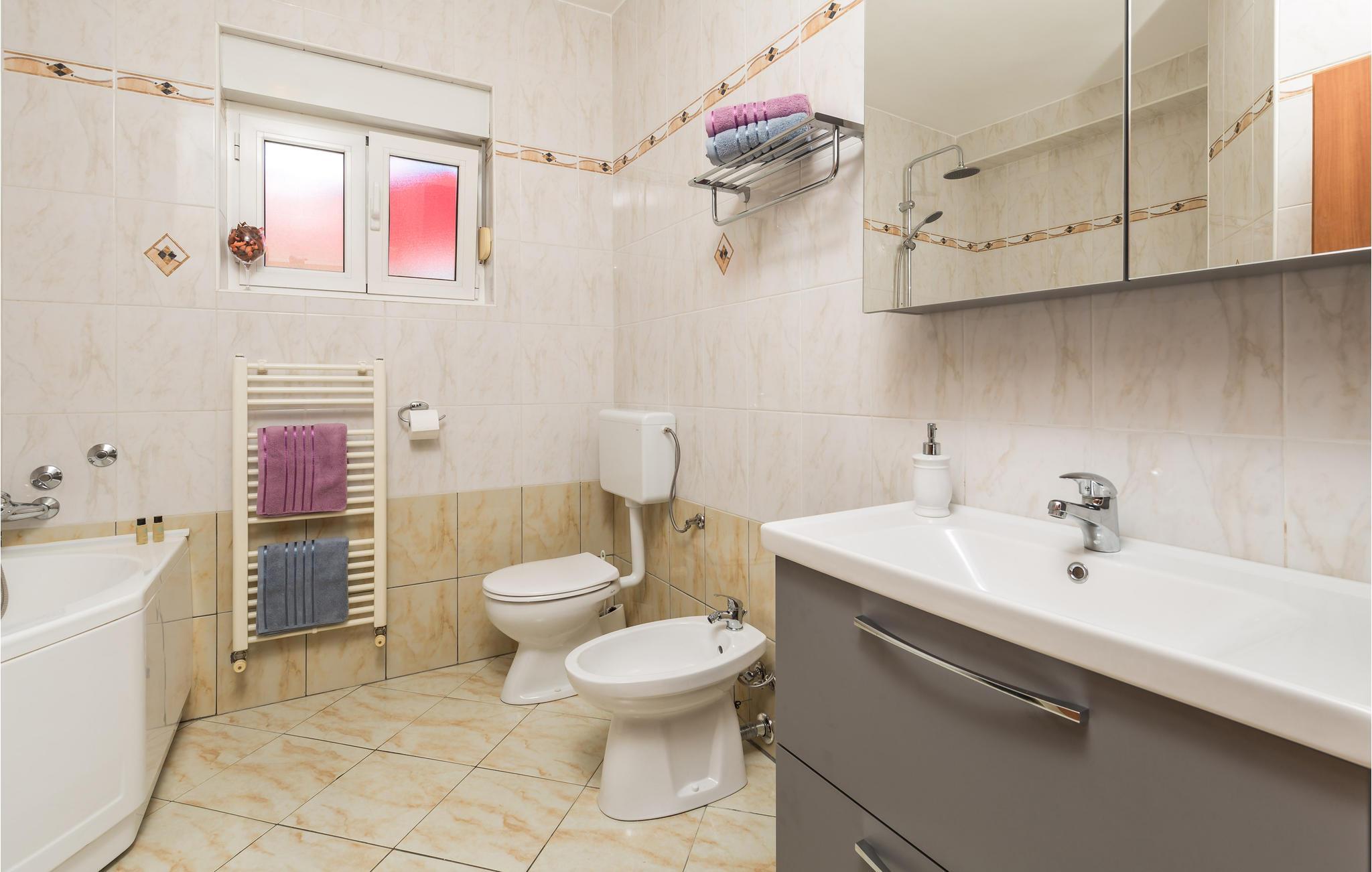 Badezimmer (nr. 1) - WC. Warmes und kaltes Wasser. Badewanne
