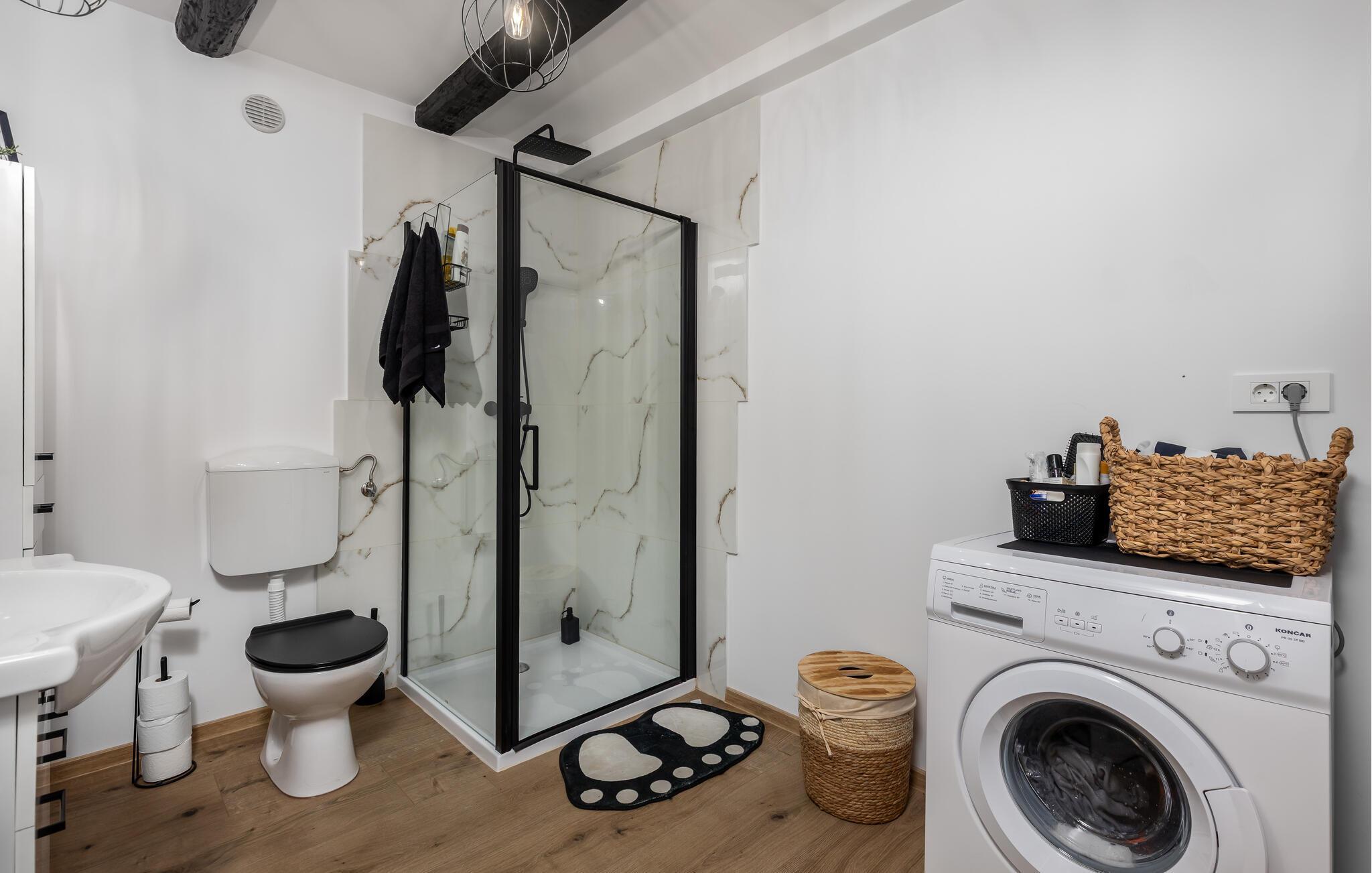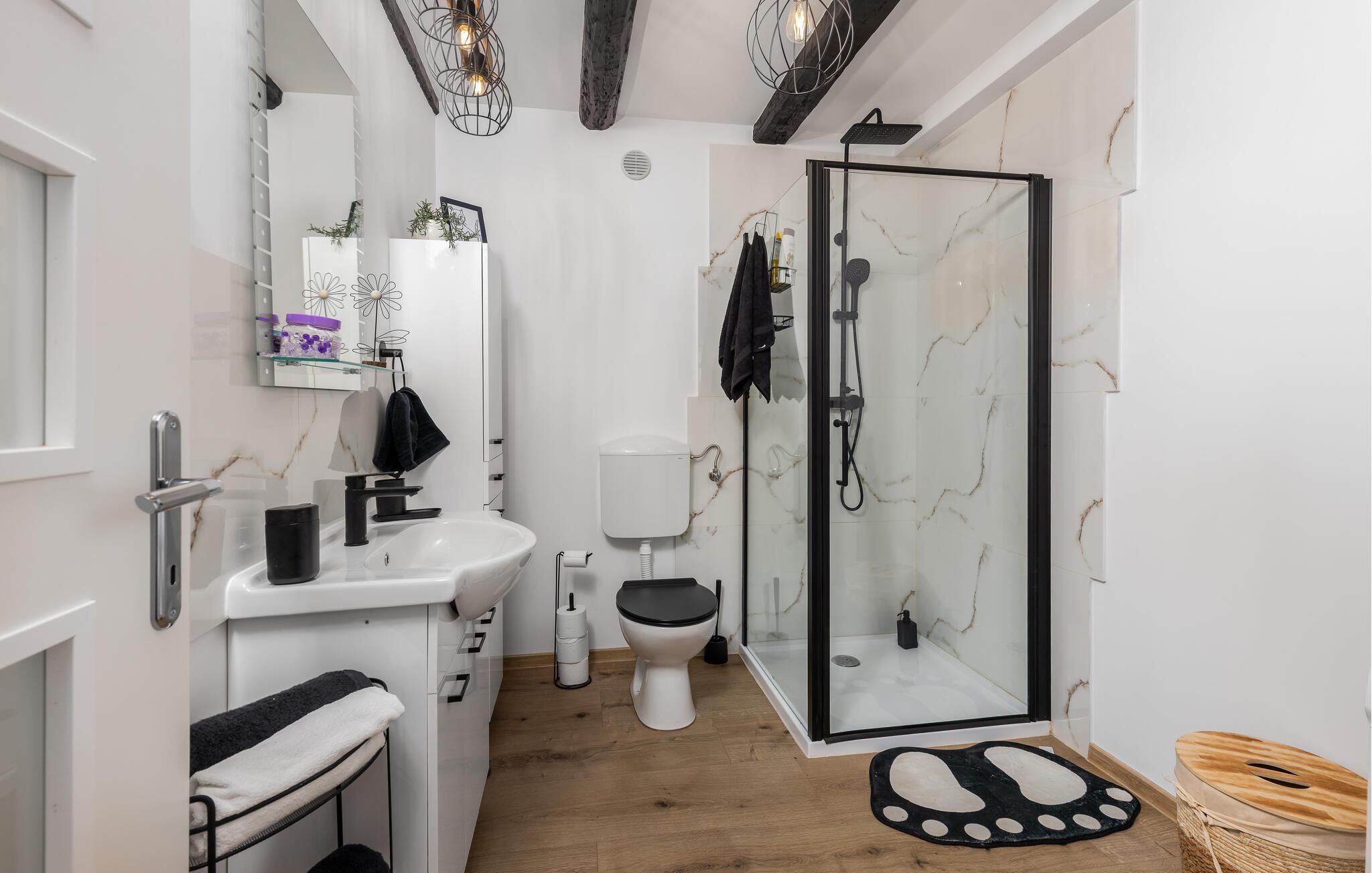 Badezimmer 7m2 (nr. 1) - WC. Warmes und kaltes Wasser. Handdusche und Badewanne