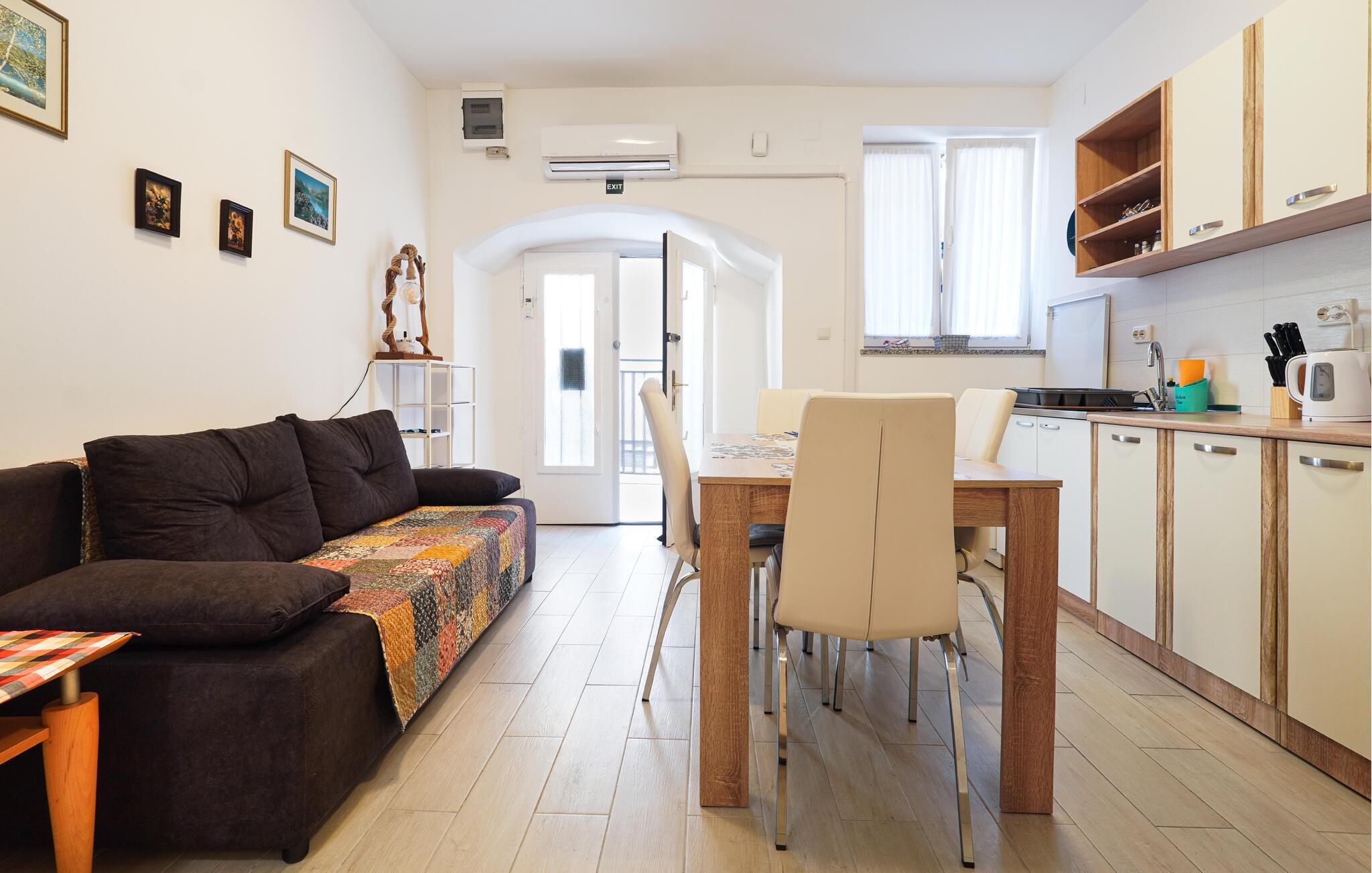 Diese liebevoll eingerichtete Erdgeschosswohnung begrüßt Sie ganz in der Nähe des Strandes und fußläufig zu allen Annehmlichkeiten des Küstenortes Volosko. Bereiten Sie hier Ihre Mahlzeiten aus frischen Produkten vom Markt zu und planen Sie Ihre Unternehmungen im freundlichen Wohnbereich. Ruhen Sie nach einem erlebnisreichen Tag Ihre müden Beine auf dem Sofa aus, streamen Sie einen Film oder vertiefen Sie sich in ein gutes Buch.