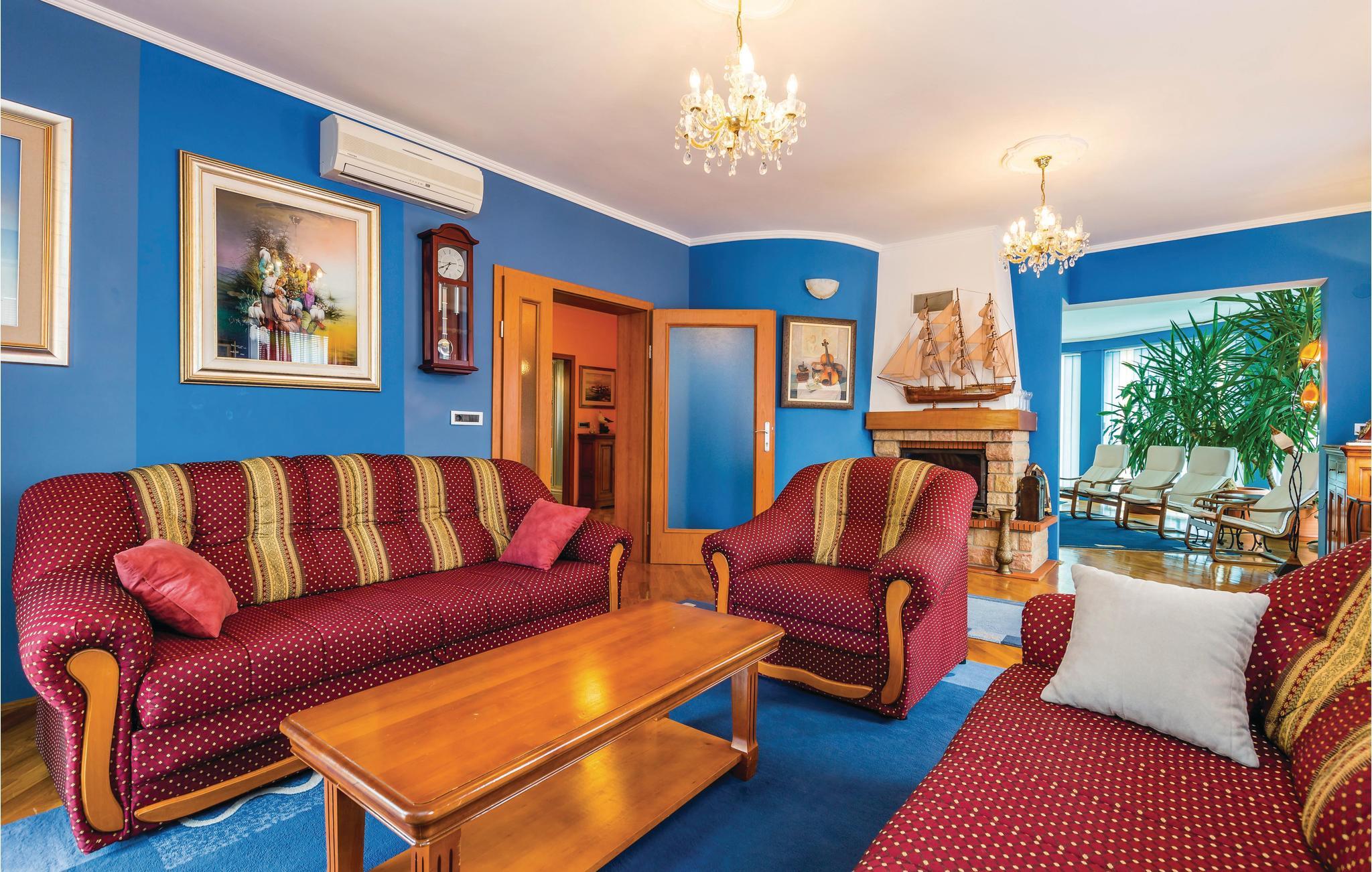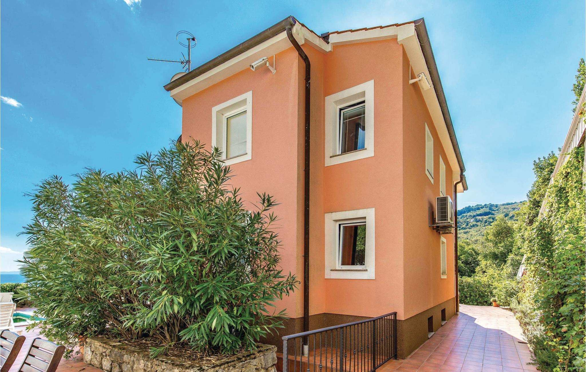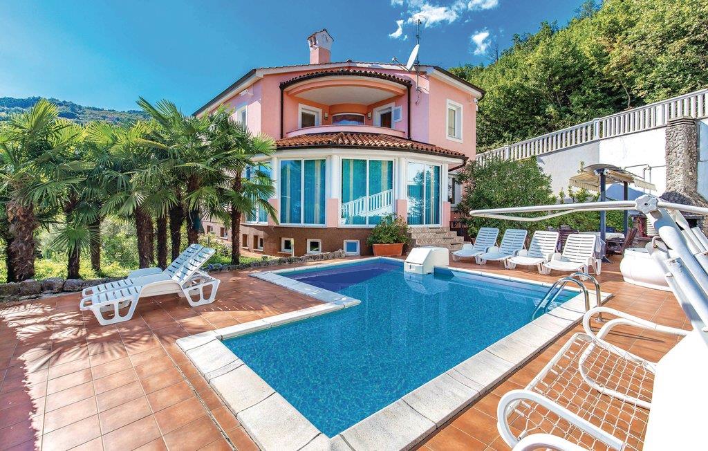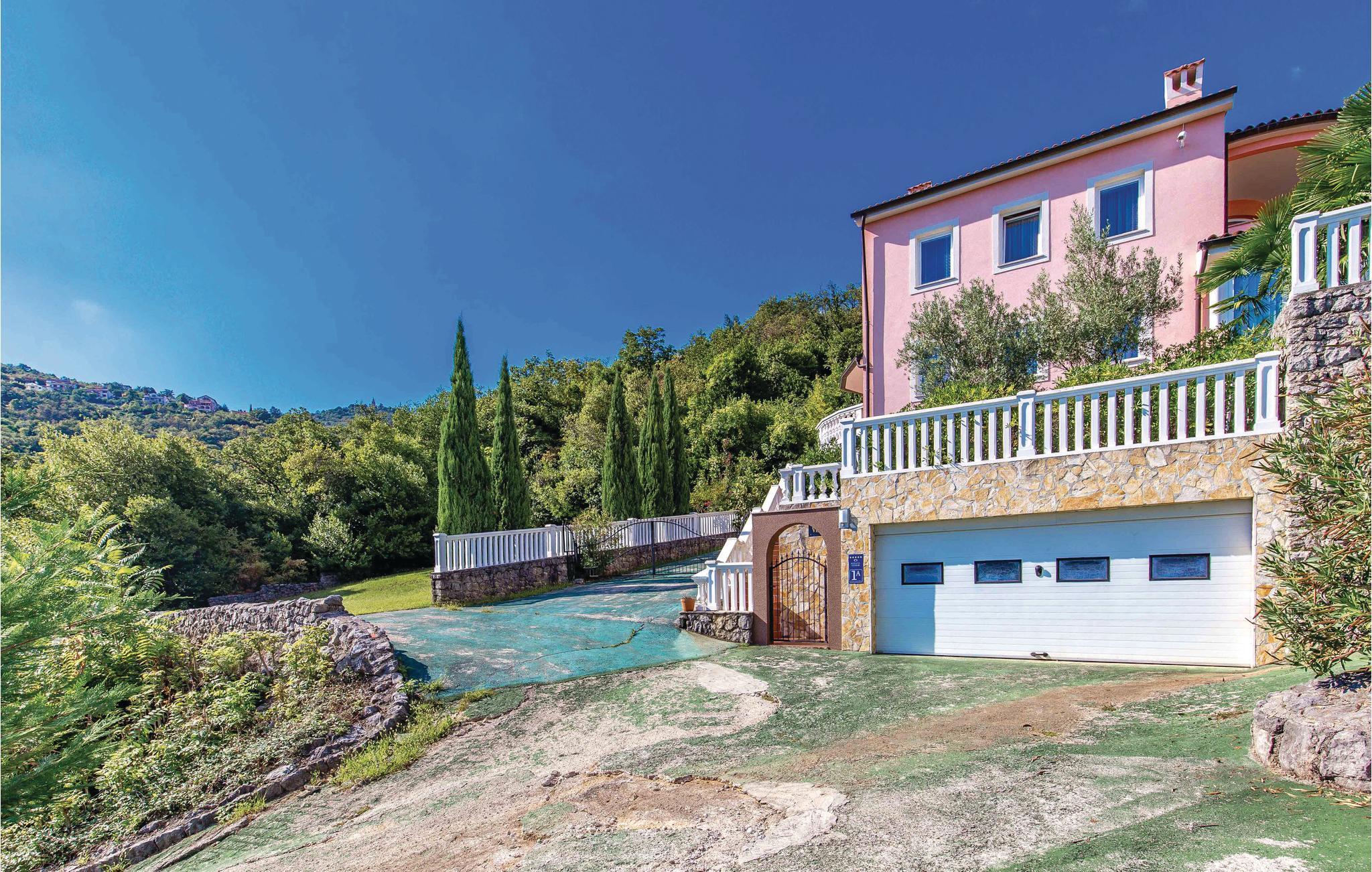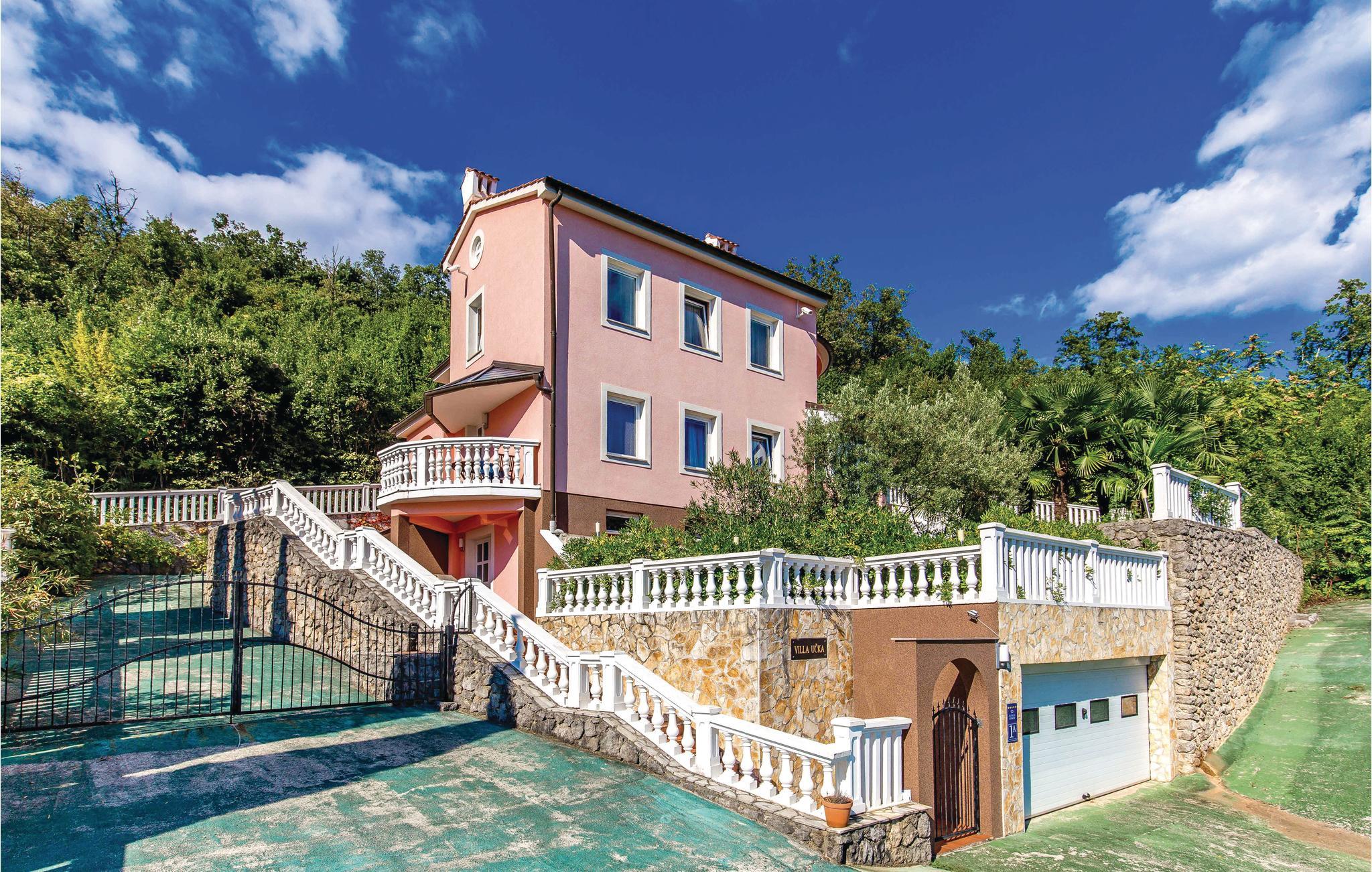 Dieses schön eingerichtete Ferienhaus liegt in der Nähe vom Zentrum des berühmten Urlaubsortes Opatija, am Hang des Ucka Gebirges. Es ist von Lorbeerbüschen umgeben und bietet viel Privatsphäre. Das Innere des Hauses ist großzügig und komfortabel eingerichtet. Ein Schlafzimmer befindet sich im Souterrain. Es hat eine Tür zum Garten. Die Strände in Medveja oder Moscenicka Draga sind einen Besuch wert. Die Abende können Sie im Schwimmbad, Jacuzzi oder in der Sauna verbringen. Opatija ist bereits seit dem 18. Jahrhundert ein beliebtes Reiseziel und bekannt für die schöne Architektur und die vielen Parks. Der Ort wird geprägt von den alten, österreichischen Villen, der sauberen Seeluft und der 12 Km langen Promenade, die sich von Volosko bis Lovran erstreckt. In der Nähe befinden sich noch viele kleinere Orte, die in den Sommermonaten ebenfalls ein interessantes, kulturelles Programm anbieten. Entdecken Sie das hochwertige, gastronomische Angebot der Region und die Wanderwege im Naturpark Ucka. Die gesamte Stadt ist eine wunderbare Mischung aus Küsten- und Berglandschaft, und als solche weit über die Grenzen des Landes bekannt. Der Anfahrtsweg zum Haus ist sehr steil.