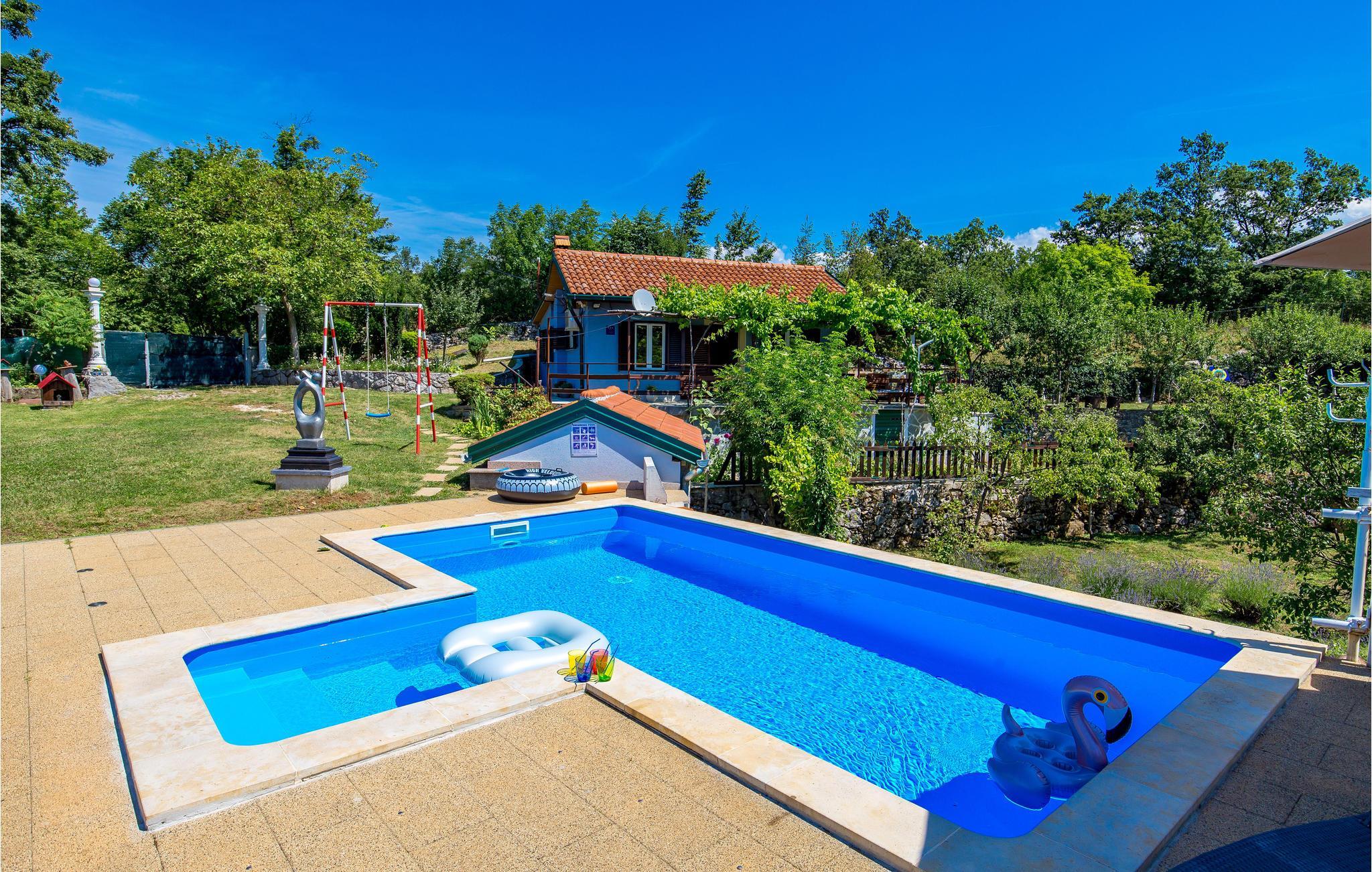 Oberhalb der bezaubernden Kvarner-Bucht, in der Nähe von einem idyllischen Wald, liegt die kleine Ortschaft Garici mit diesem Ferienhaus. Es ist gemütlich und funktionell eingerichtet und besteht aus zwei Einheiten: in einer befinden sich ein Schlafzimmer, Badezimmer, Küche und Wohnzimmer, während sich in der anderen Einheit ein Schlafzimmer mit zusätzlicher Toilette befindet. Entspannen Sie auf der mit Weinreben überdachten Terrasse vor dem Haus und bereiten Sie am Grill köstliche Spezialitäten zu. Erholen Sie sich auf dem geräumigen und schön angelegten Grundstück, fernab vom Alltagsstress. Zur Erfrischung steht Ihnen ein Außenpool, der nachts schön beleuchtet ist und daher eine tolle Atmosphäre bietet. Unternehmen Sie Ausflüge zum Naturpark Ucka, dem Nationalpark Risnjak, sowie dem Nationalpark der Plitwitzer Seen.