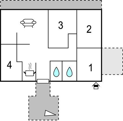 Badezimmer 4m2 (nr. 1) - WC. Warmes und kaltes Wasser. Handdusche