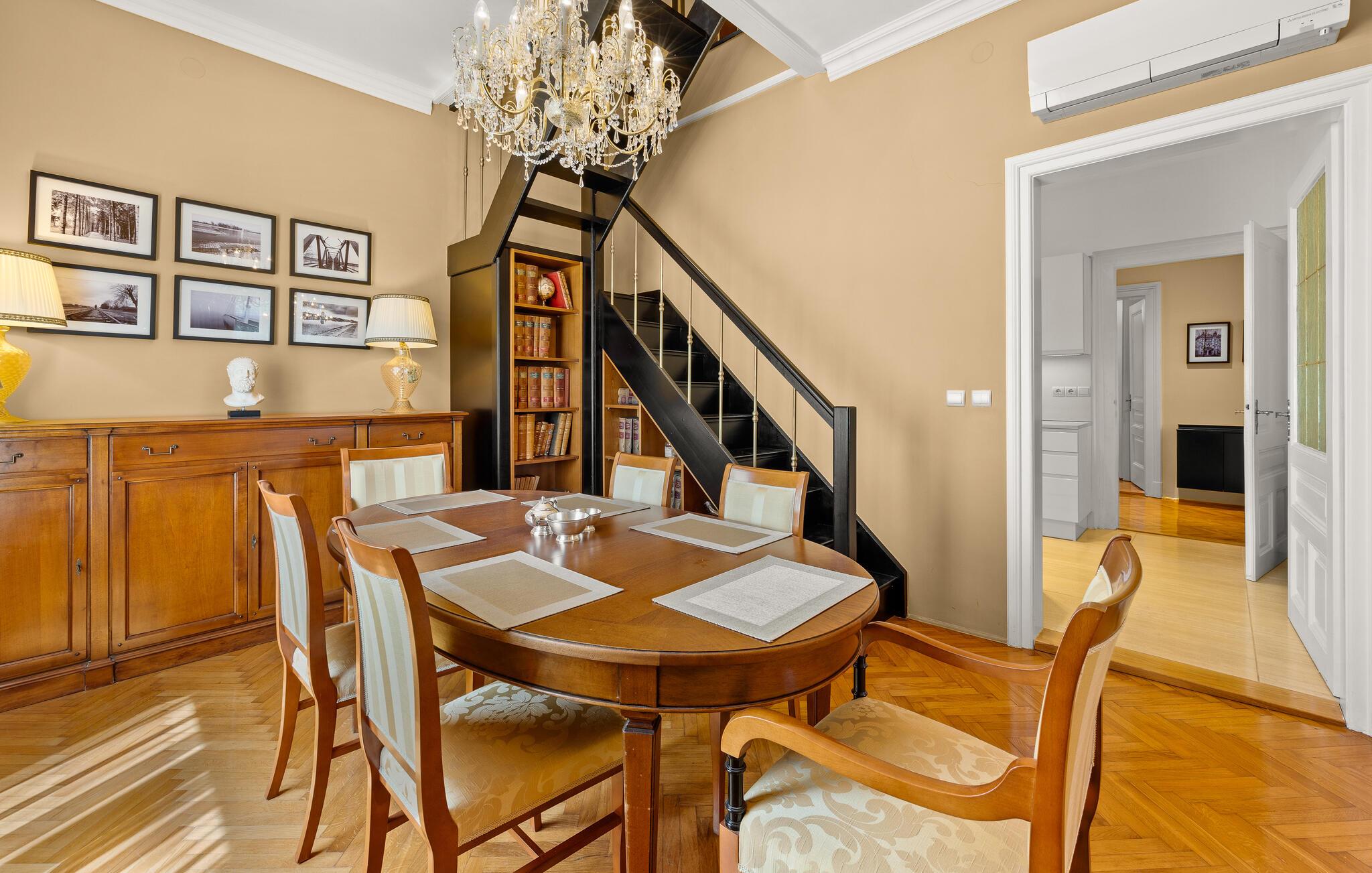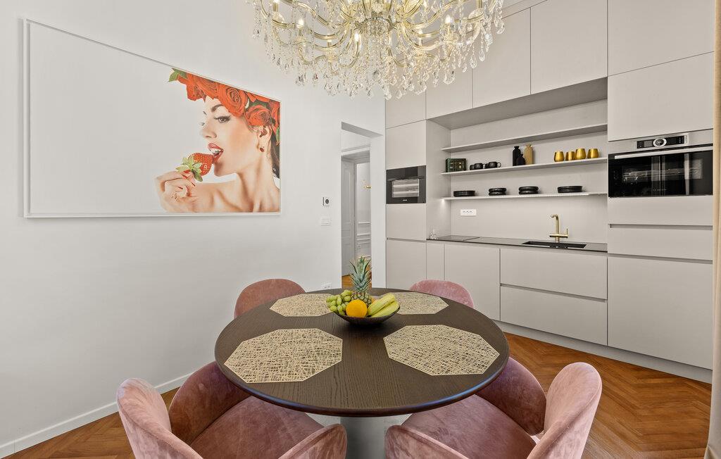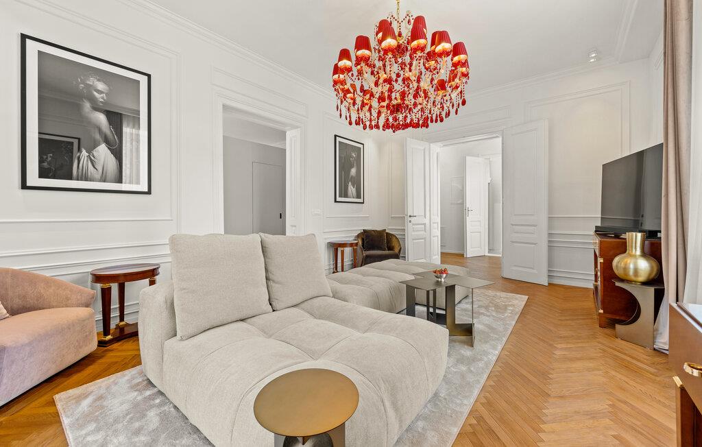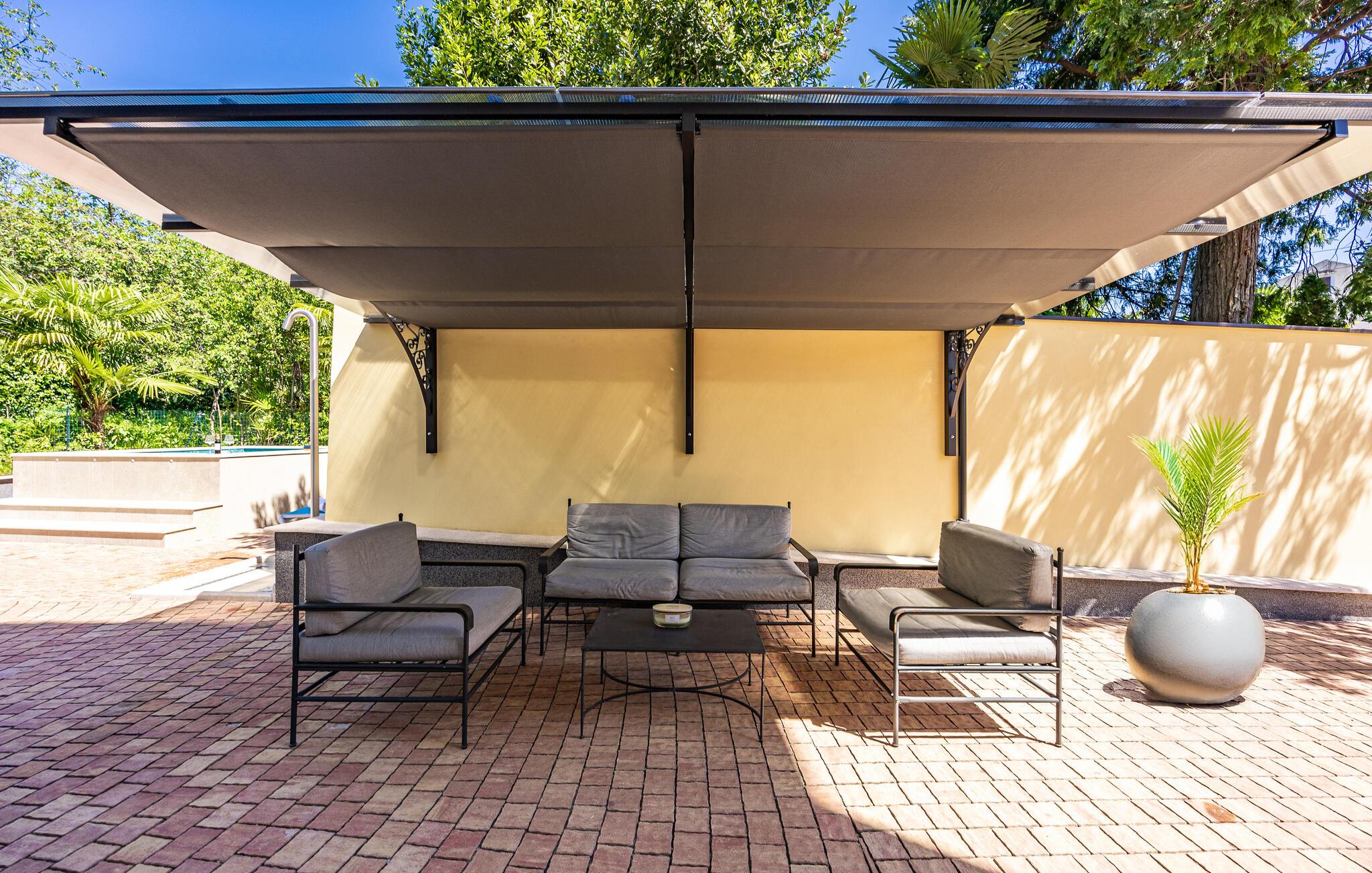 Diese majestätische Villa verspricht einen Urlaub vom Feinsten. Edles Parkett, stilvolles Mobiliar und elegante Kronleuchter schaffen eine ruhige Atmosphäre, in der sofort abschalten und neue Energie tanken können. Liebevolle Details geben dem Ganzen zusätzlich eine persönliche Note. Lehnen Sie sich entspannt auf der bequemen Sofalandschaft zurück, genießen Sie ein Glas Wein und geben Sie sich ganz dem erholsamen Urlaubsgefühl hin.