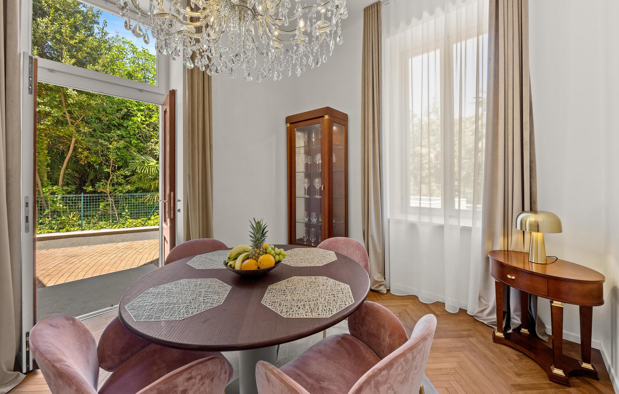 Das Meer ist nur einen Katzensprung entfernt und lädt zu erfrischenden Schwimmrunden oder entspannten Stunden am Strand ein. Spazieren Sie entlang der berühmten Uferpromenade Lungomare und genießen Sie den Blick auf die herrliche Kvarner-Bucht. Entdecken Sie die elegante Stadt Opatija mit ihren prachtvollen Villen, gepflegten Parks und gemütlichen Cafés. Unternehmen Sie Ausflüge in die grüne Hügellandschaft des Hinterlands und kosten Sie regionale Spezialitäten in traditionellen Konobas.
