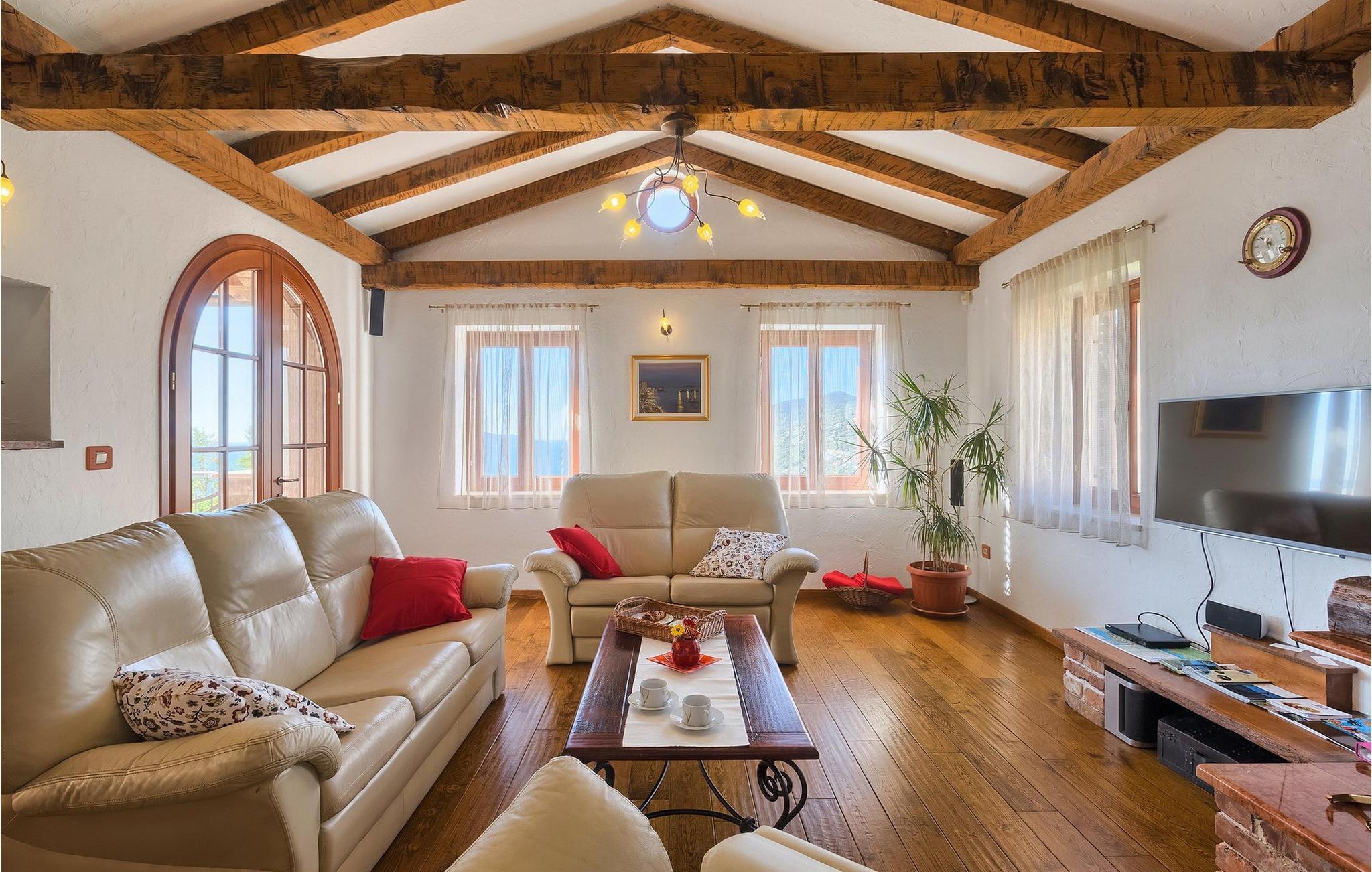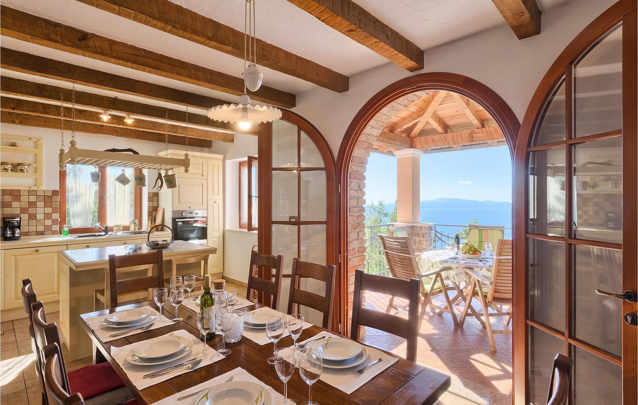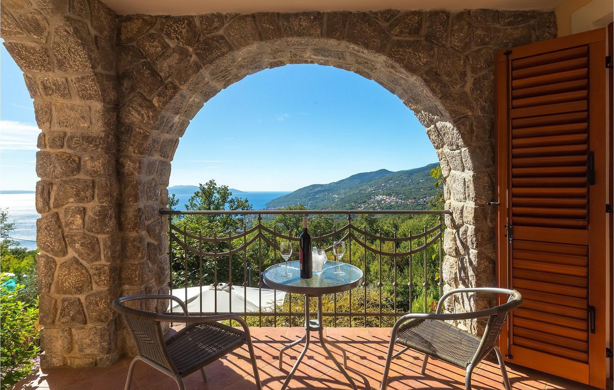 ausgestattet mit einem Doppelbett, ein Badezimmer und die gut ausgestattete Küche mit Essbereich. 3 weitere Schlafzimmer und 2 Badezimmer befinden sich im Erdgeschoß. Außerdem gibt es im Erdgeschoß eine typische kroatische "konoba", wo die ganze Gruppe Zeit zusammen verbringen kann. Der Untergeschoß der Villa ist ideal für diejenigen, die viel Wert auf Luxus legen. Sie können aktiv bleiben und im privaten Fitnessraum Sport machen oder in der Sauna entspannen. Genießen Sie die Sonne am Pool oder essen Sie im Freien auf der Terrasse. Die Villa Opatija hat alles, was man im Urlaub brauchen könnte!Veprinac, eine kleine Hügelstadt in der Nähe von Opatija, war früher ein bekanntes europäisches Touristenzentrum. Der Name "Veprinac" verbindet man mit dem Stechendem Mäusedorn, einer Pflanzenart, die fast im Überfluss in dieser Region wächst. Machen Sie einen Spaziergang durch die Stadt und genießen Sie die Aussicht auf die ganze Kvarner Bucht. Veprinac ist nur eine kurze Fahrt von Opatija, der atemberaubenden Küstenstadt mit wunderschöner Architektur und angenehm mildem Klima, entfernt. Der Tourismus in Opatija geht bis ins 19. Jahrhundert zurück, wenn die Habsburger Opatija zum Reiseziel der Adligen gemacht haben. Wenn Sie in Opatija sind, müssen Sie unbedingt die Villa Angiolina besuchen, die den Beginn des Tourismus in der Stadt darstellt. Gehen Sie durch die Stadtparks aus dem 19. Jahrhundert (Park St. Jakob und Park Angiolina) spazieren. Lungomare ist auch eine wunderbare Weise, wie Sie die Region kennen lernen können. Die Promenade erstreckt sich von Preluka bis Lovran und verbindet Opatija mit zahlreichen Stränden und Buchten.