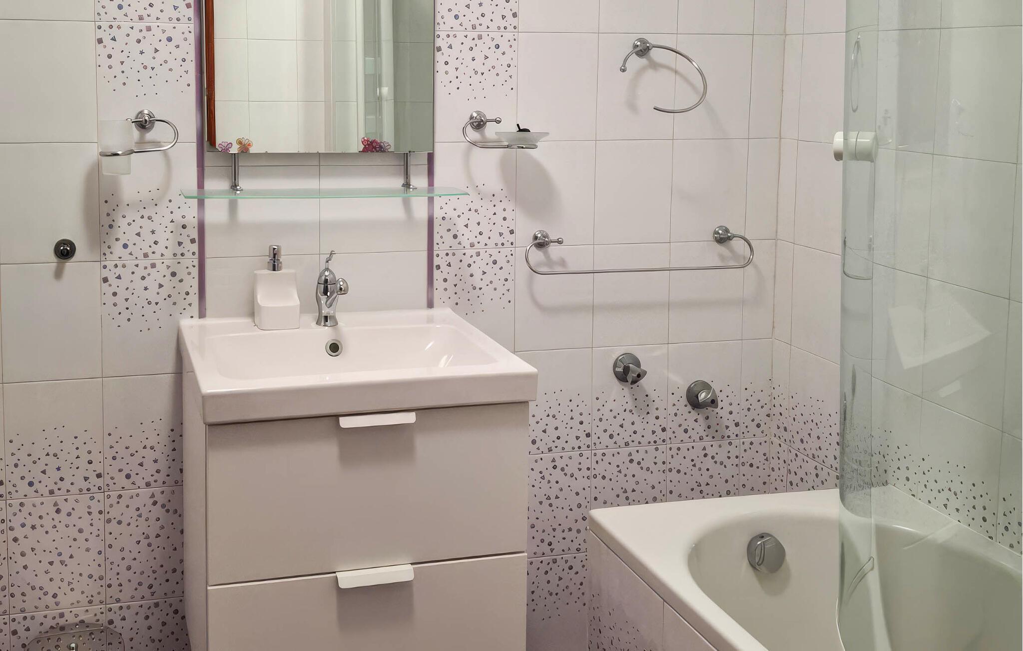 - WC mit warmem und kaltem Wasser, Dusche und Badewanne