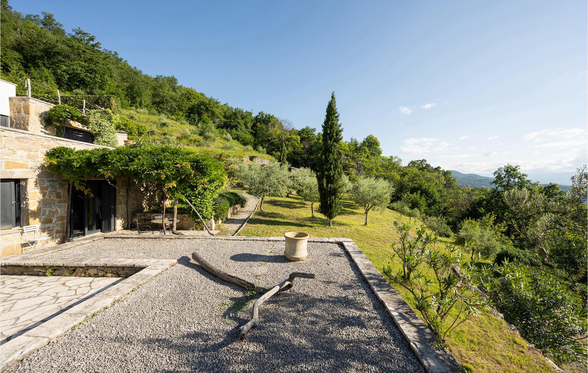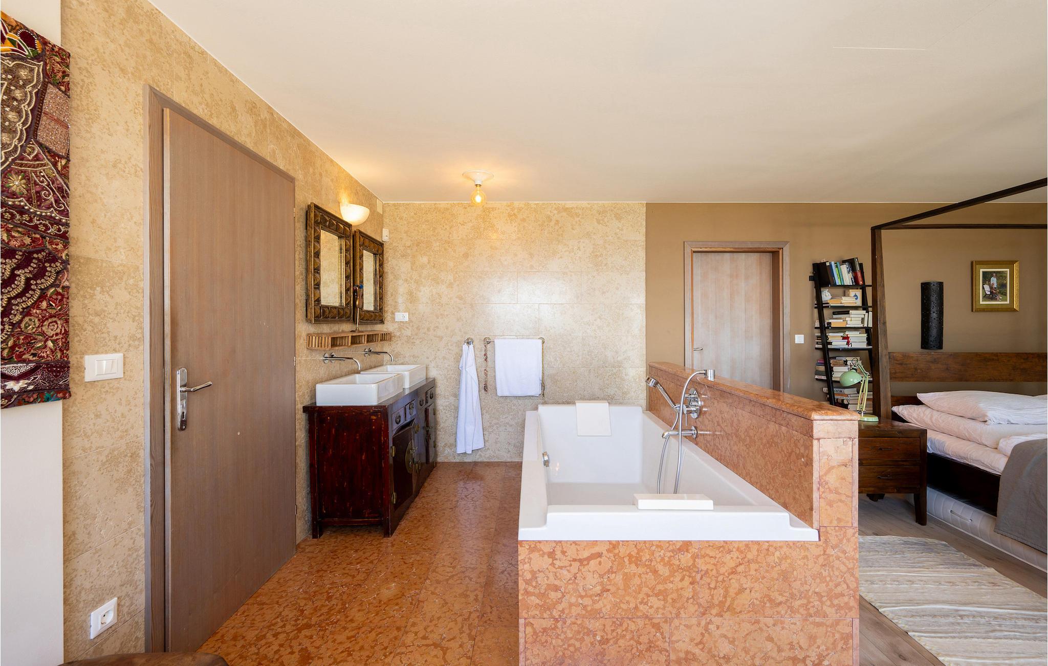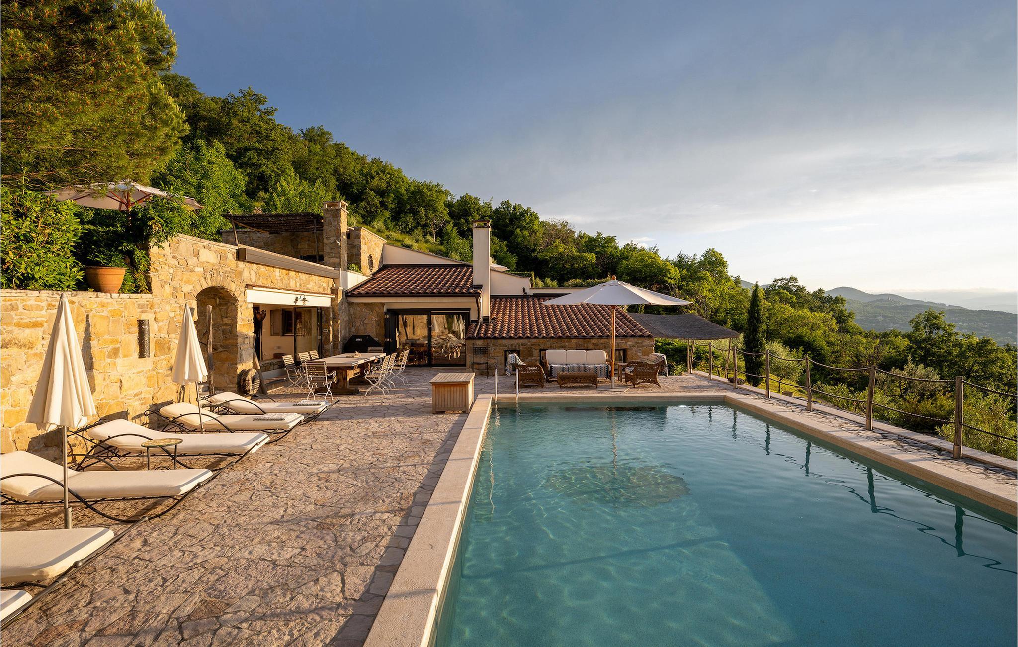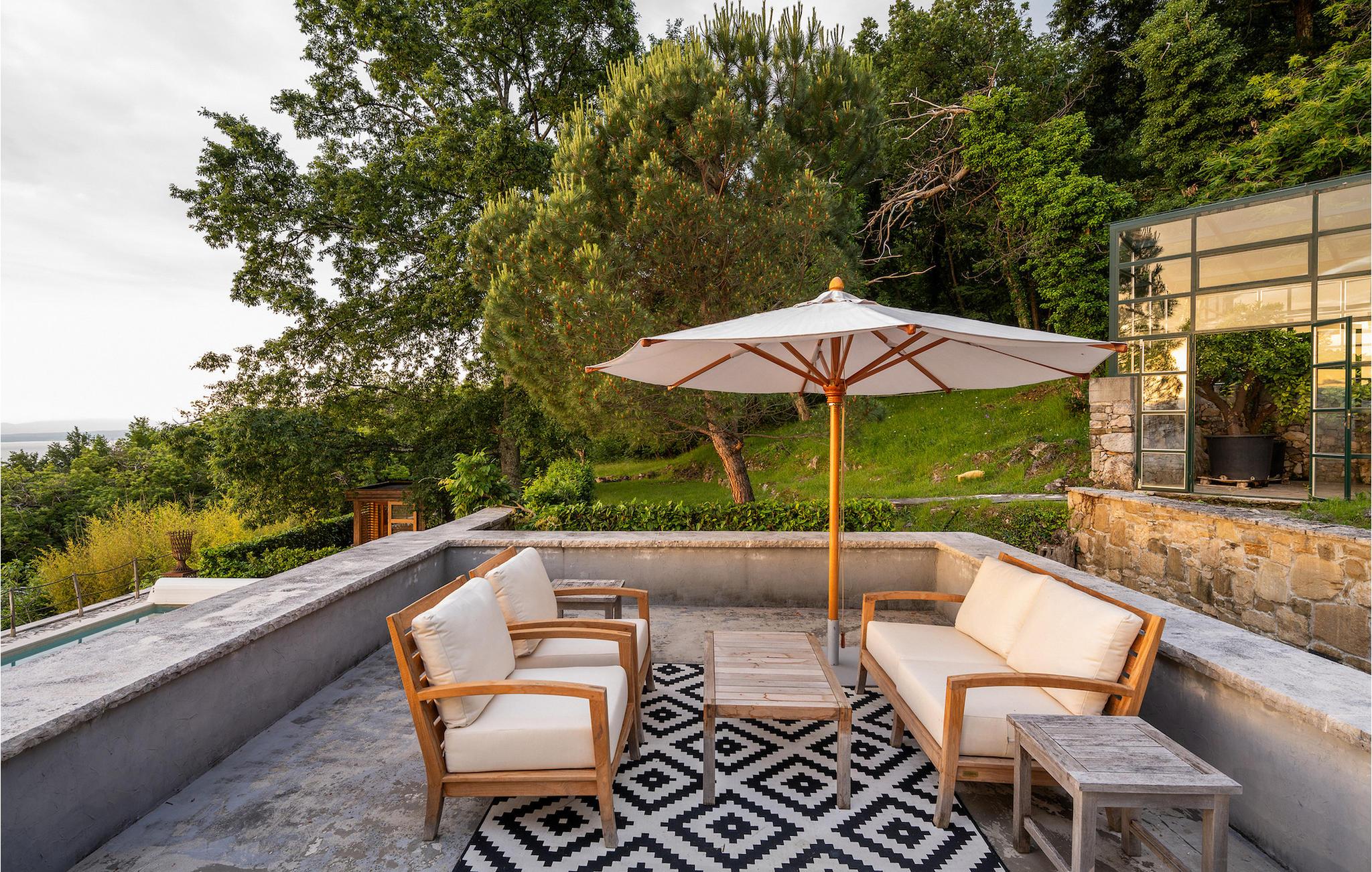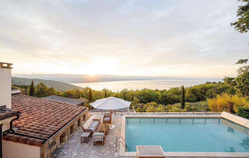 Villa Evelina Eselboeck empfängt Sie mit einer idyllischen Terrasse, umgeben von Natur. Sie können die Sonne bequem auf einer der 8 Sonnenliegen genießen oder im erfrischenden Pool schwimmen. Der Loungebereich neben dem Pool ist ideal, um kalte Getränke zu genießen und dabei den Meerblick in Ihrem eigenen kleinen Stück Paradies zu genießen. Ein zweiter Loungebereich bietet Ihnen nach einem langen Tag in der Sonne den dringend benötigten Schatten und eignet sich perfekt für unterhaltsame Zusammenkünfte bis spät in die Nacht. Der dritte Loungebereich schließlich liegt erhöht und bietet einen Blick sowohl auf den Pool als auch auf das Meer. Neben der Villa können Sie auf dem Grill eine köstliche Mahlzeit zubereiten und diese anschließend am Esstisch für bis zu 10 Personen genießen. Ihre Kinder werden es genießen, durch den schönen Garten zu toben oder sich auf der Schaukel abzuwechseln. Im Erdgeschoss finden Sie ein komfortables Doppelzimmer mit eigenem Bad und Terrasse. Das Wohnzimmer mit TV und Kamin sowie die voll ausgestattete Küche befinden sich im ersten Stock. Hier finden Sie auch den zweiten Esstisch für bis zu 12 Personen und einen Ausgang zum Garten. Auf dieser Etage stehen drei weitere komfortable Doppelzimmer für Sie bereit. Jedes verfügt über ein eigenes Badezimmer und eines davon verfügt über eine Badewanne mit Blick auf das Meer für das entspannendste Schaumbad, das Sie je hatten. Villa Evelina Eselboeck ist das friedliche Stück Himmel, das Sie für einen idyllischen, erholsamen Urlaub brauchen, der Sie die Sorgen Ihres geschäftigen Lebens vergessen lässt. Die Villa Evelina Eselboeck liegt im Dorf Lovran, nur 2 km vom Strand entfernt. Das nächste Restaurant, Café und Geschäft liegen im Umkreis von 1,1 km. Naturliebhaber können den Naturpark Ucka besuchen, ein Schutzgebiet mit Wanderwegen, die zu Schluchten, Wasserfällen und historischen Stätten führen. Die Villa liegt in unmittelbarer Nähe der „Perle der Adria“, der Stadt Opatija. Für einen entspannten Spaziergang entlang der Küste dürfen Sie die Promenade Lungomare nicht verpassen. Bei einem Spaziergang können Sie die atemberaubende Aussicht auf die Stadt und die umliegenden Inseln bewundern. Es ist der perfekte Ort, um die Natursehenswürdigkeiten von Opatija zu erkunden. Die Villa Angiolina aus dem 19. Jahrhundert liegt inmitten eines Gartens mit exotischen Pflanzen und beherbergt das Kroatische Tourismusmuseum. Es sammelt, untersucht und zeigt Objekte und Geschichten, die die reiche Geschichte des Tourismus in Kroatien repräsentieren. Etwas weiter entfernt können Sie einen Tag in Rijeka verbringen. Erkunden Sie die Burg Trsat und genießen Sie eine Mahlzeit im Innenhof, der in ein Restaurant umgewandelt wurde. Für eine modernere Aktivität besuchen Sie doch eine Ausstellung im Museum für moderne und zeitgenössische Kunst oder im Computermuseum. Die Temperatur des beheizten Schwimmbades hängt von äußeren Faktoren, einschließlich der Wetterbedingungen, ab und daher kann die Wassertemperatur nicht garantiert werden.