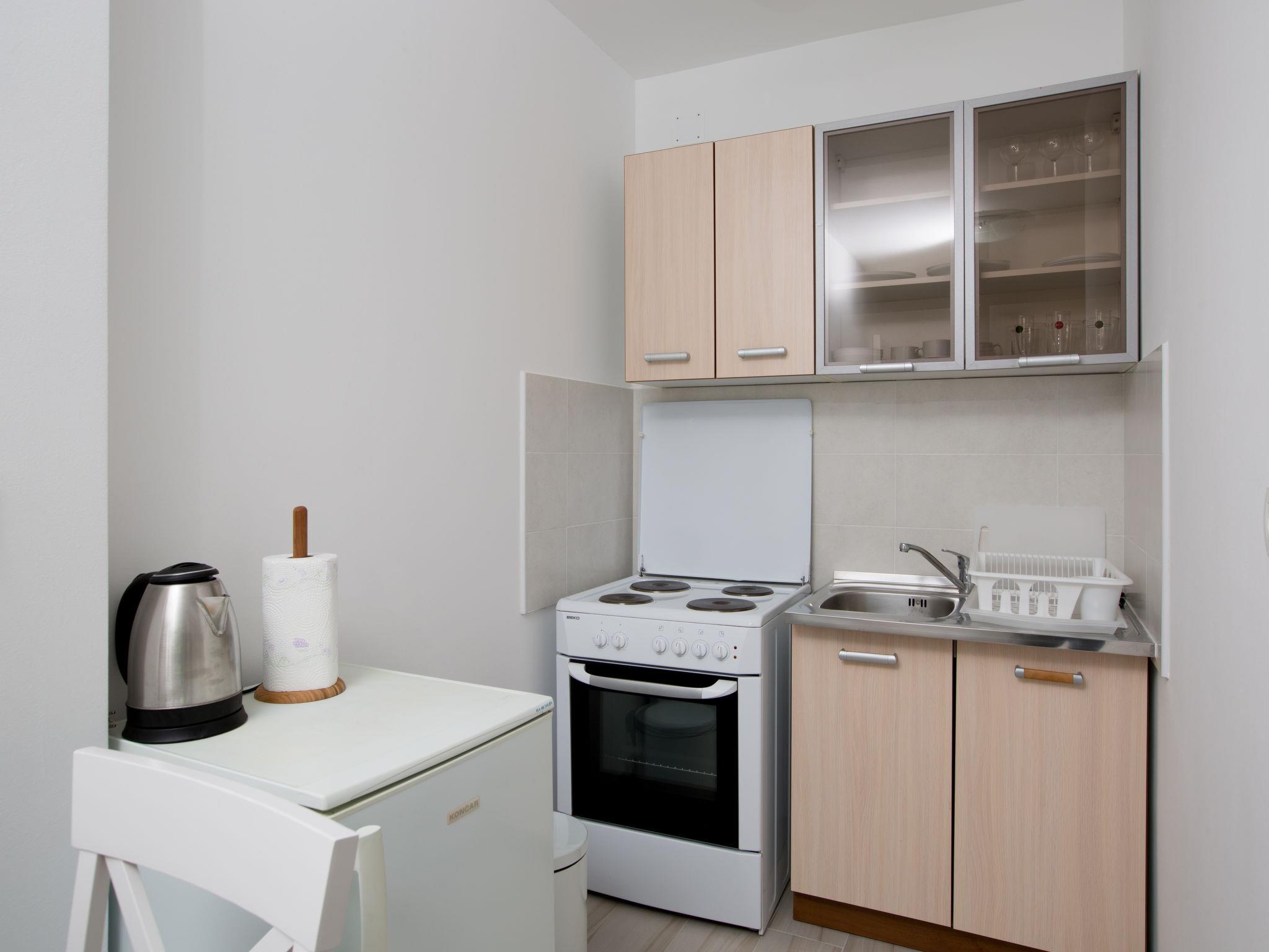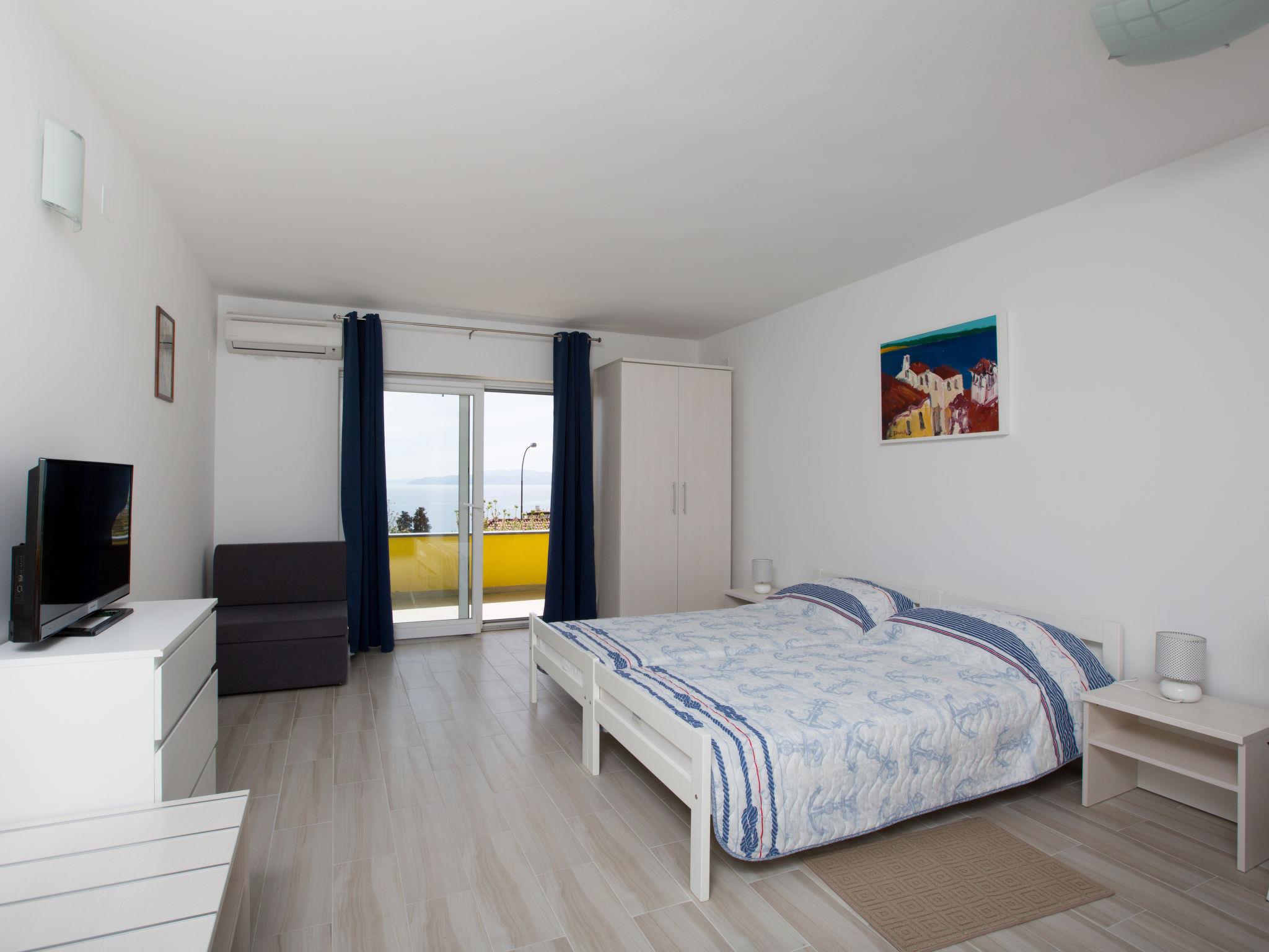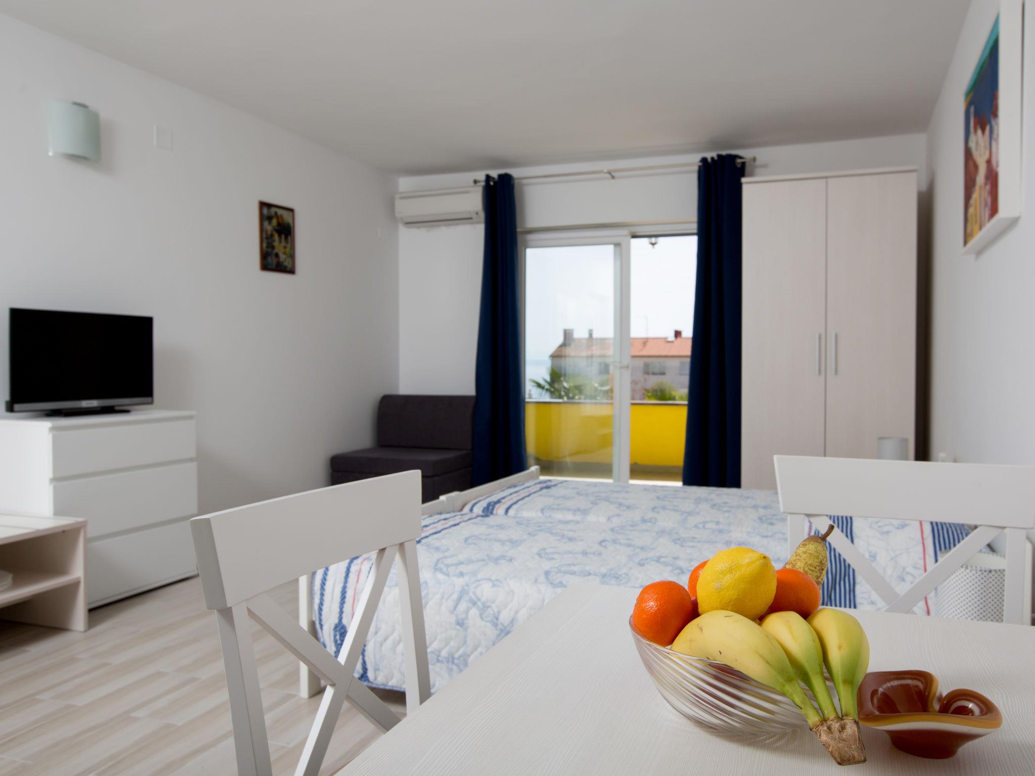 1-Zimmer-Wohnung 30 m2 im 1. Stock. Studio mit 2 Betten (90 cm, Länge 200 cm), Sat-TV und Klimaanlage. Ausgang zum Balkon. Kochnische (Backofen, 4 Glaskeramikplatten, Toaster, Wasserkocher, elektrische Kaffeemaschine). Dusche/WC. Warmluftheizung. Balkon 14 m2. Balkonmöbel. Sicht auf das Meer. Zur Verfügung: Haartrockner. Internet (Wireless LAN, gratis). Bitte beachten: Nichtraucher-Haus. Eigener Eingang.