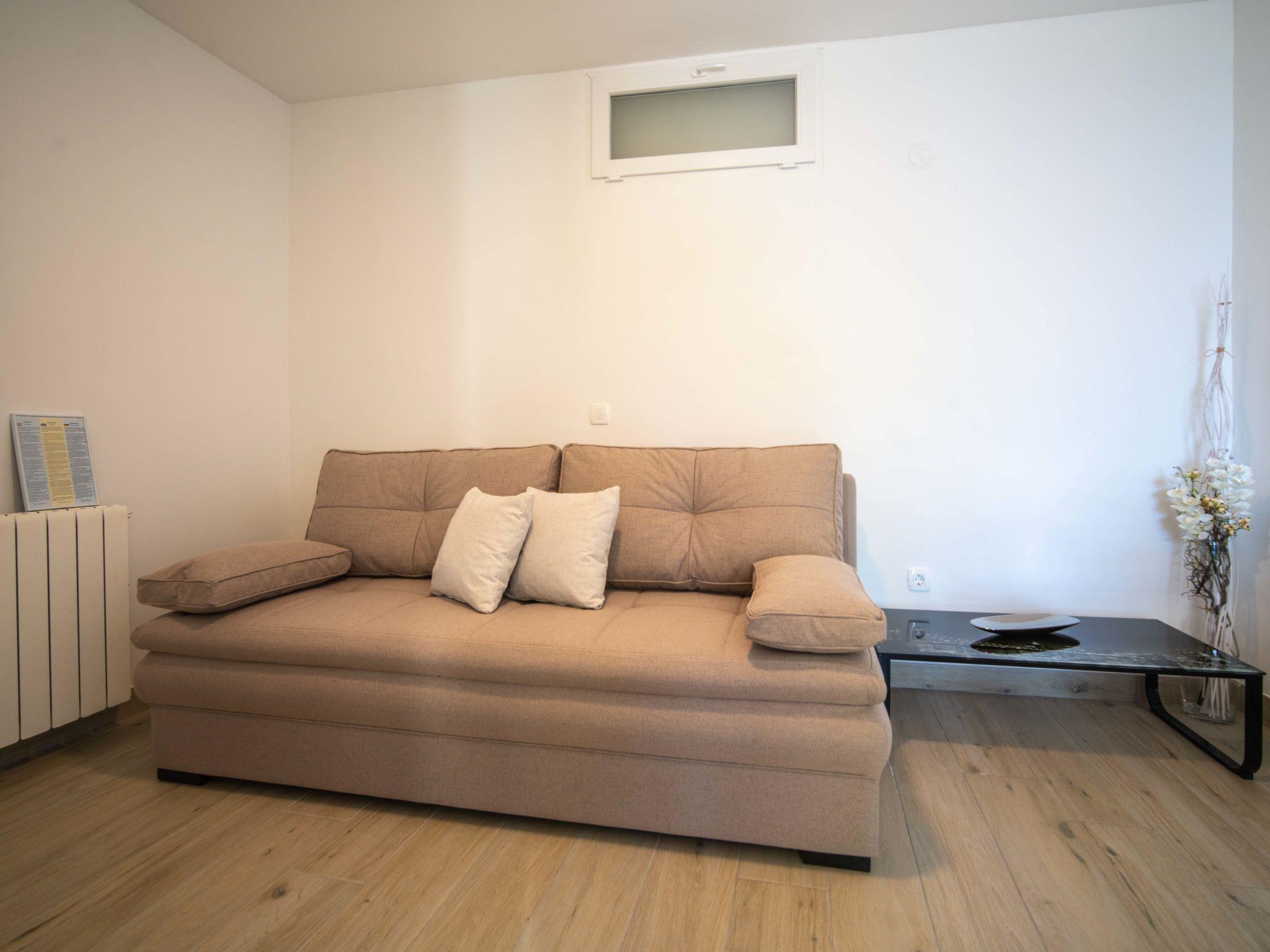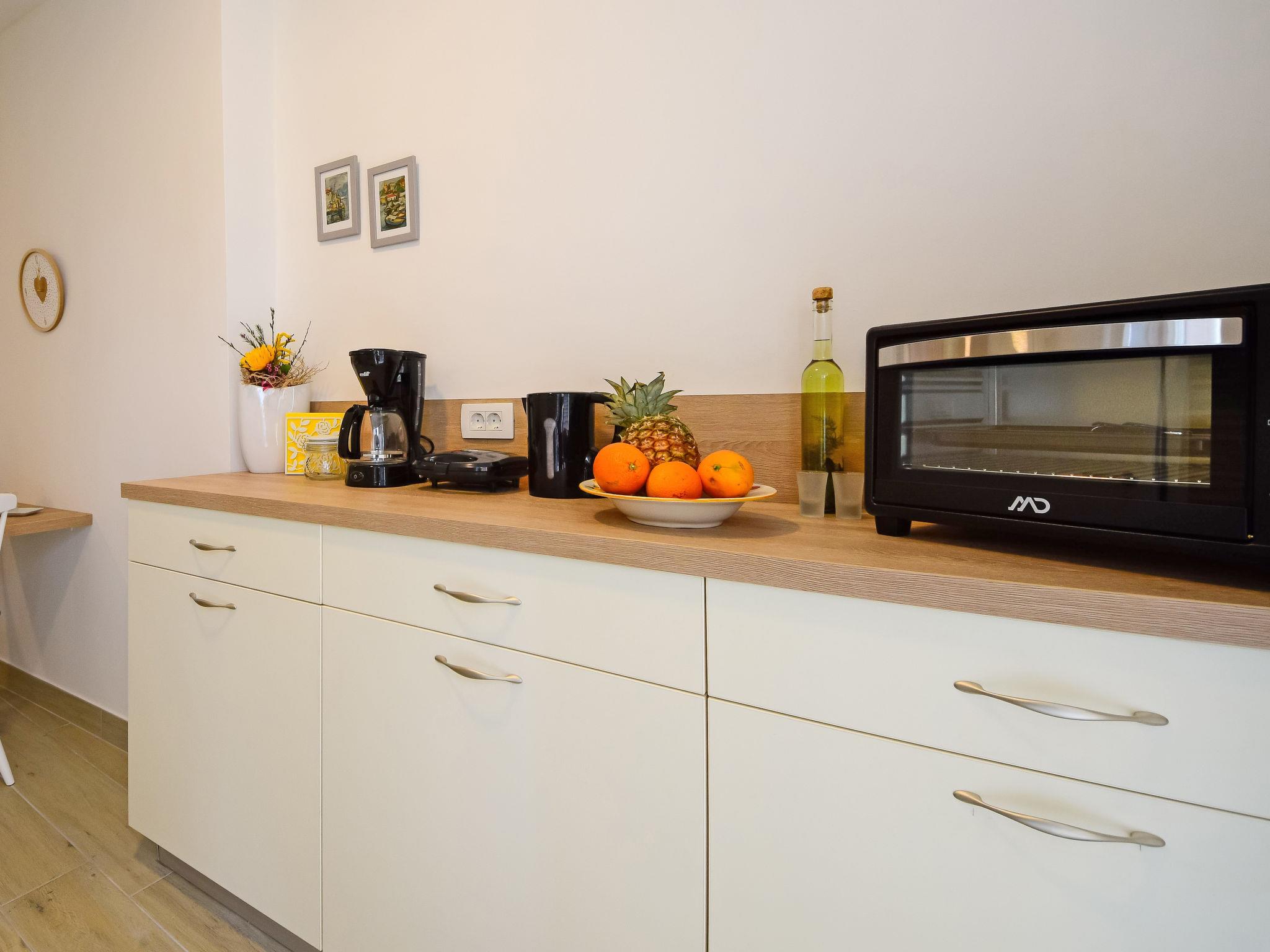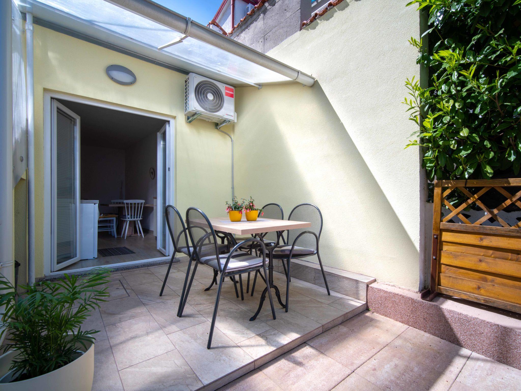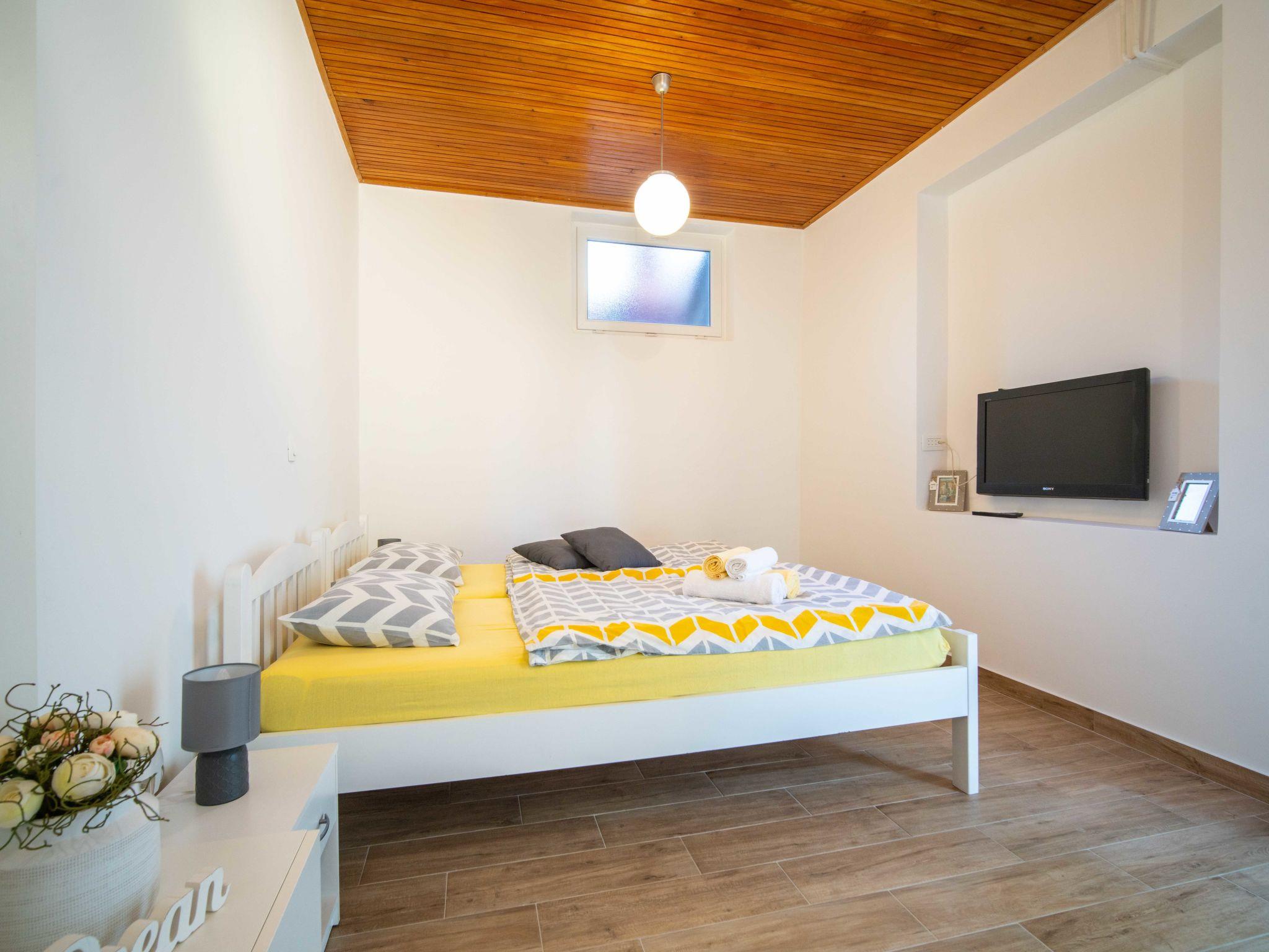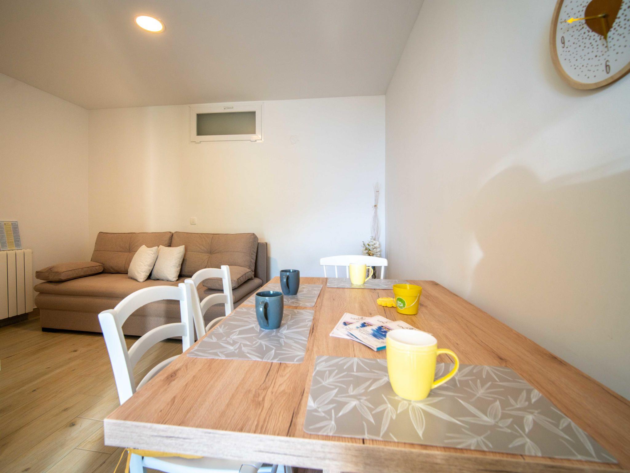 2-Zimmer-Doppelhaushälfte 25 m2, Südlage. Schön und modern eingerichtet: Wohn-/Esszimmer mit Sat-TV (Flachbildschirm), Klimaanlage. Ausgang zur Terrasse. 1 Zimmer mit 2 Betten (90 cm, Länge 200 cm), Dusche/WC. Offene Küche (2 Kochplatten, elektrische Kaffeemaschine) mit Esstisch. Dusche/WC. Keine Heizmöglichkeit. Terrasse 32 m2. Terrassenmöbel, Liegestühle. Sicht auf das Meer. Zur Verfügung: Babybett. Internet (WLAN, gratis). Verfügbar: Heissluftofen in der offenen Küche. Hochplatziertes Fenster im Wohn-/Essbereich und im Schlafzimmer.