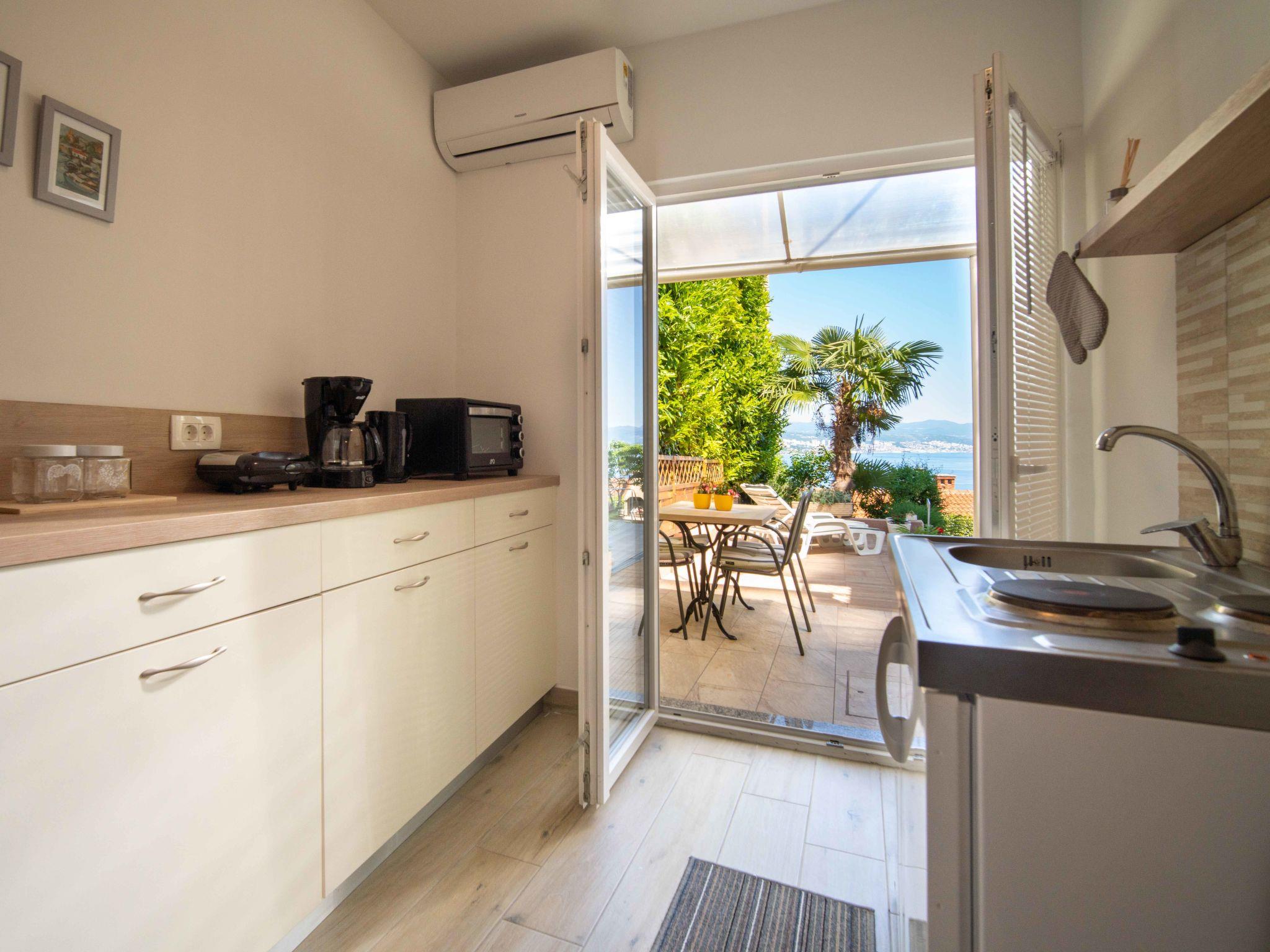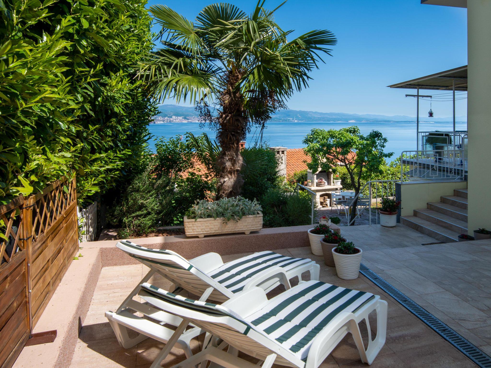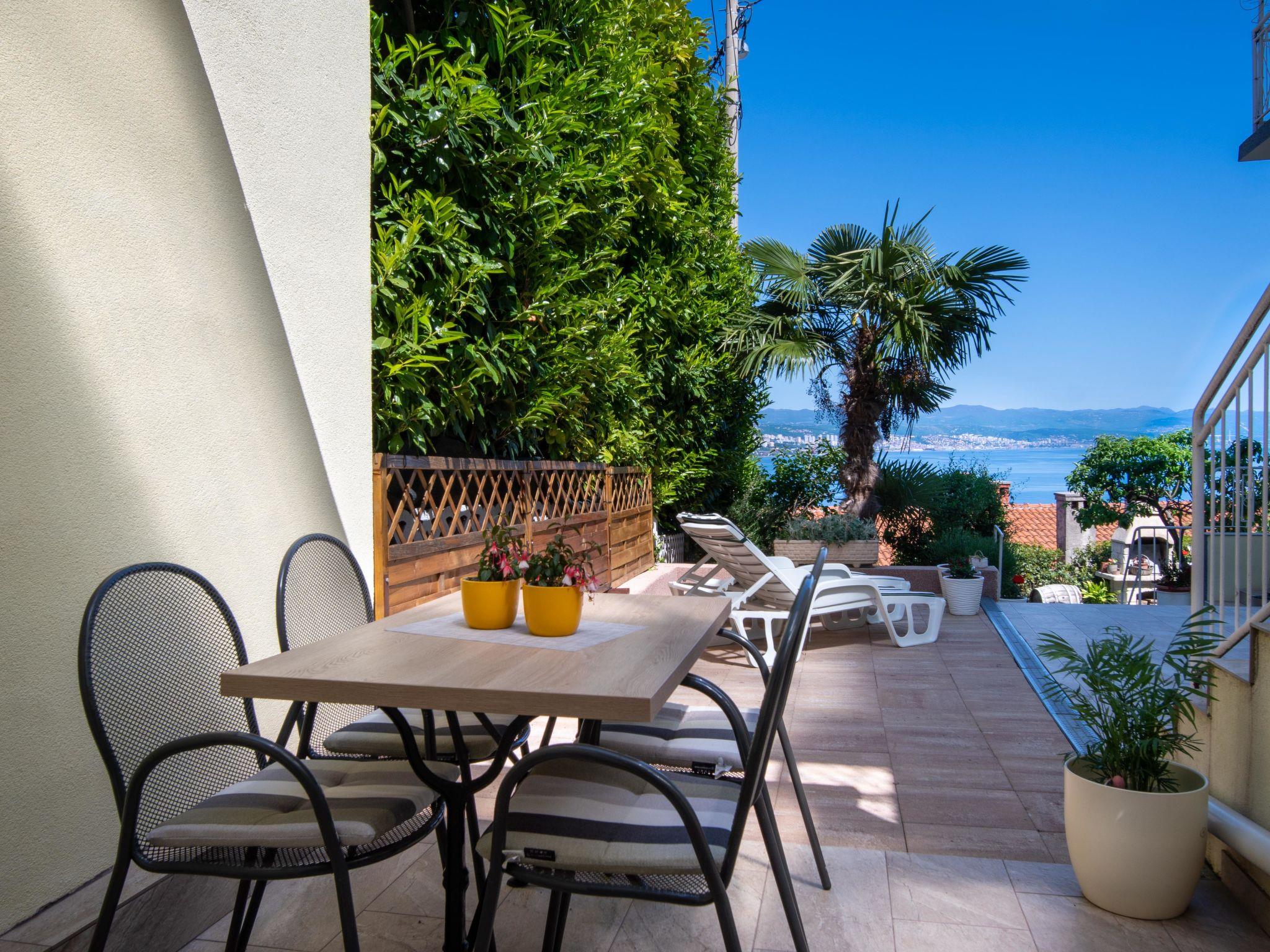 Doppelhaus "Bono". 1.5 km vom Zentrum von Opatija, ruhige, sonnige, erhöhte Lage, 1.5 km vom Meer, 1.5 km vom Strand, in einer Sackgasse. Zur Mitbenutzung: Grundstück 1'800 m2 (eingezäunt) mit Pflanzen und Blumen. Zur Alleinbenutzung: Terrasse (25 m2), Gartenmöbel, Grill. Im Hause: Internetzugang. Parkplatz beim Haus auf dem Grundstück. Einkaufsgeschäft 1.5 km, Supermarkt 2.3 km, Restaurant 1.5 km, Bushaltestelle 1.3 km, Strandbad 1.5 km, betonierter Strand 1.5 km. Tennis 2.3 km.