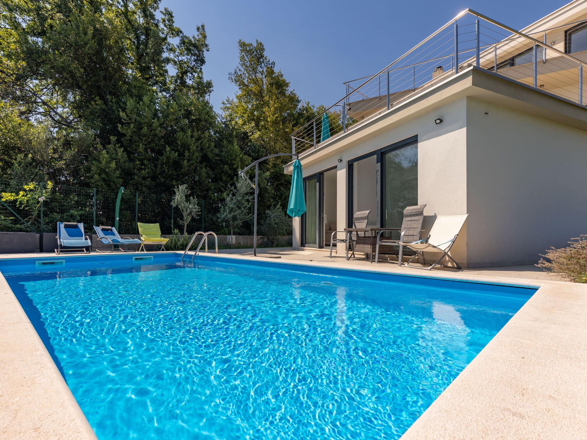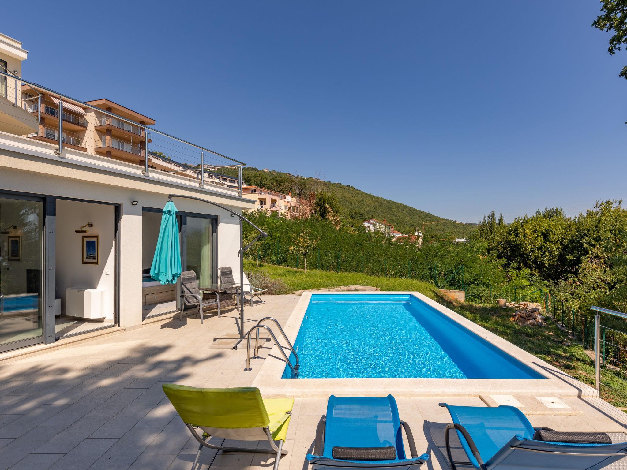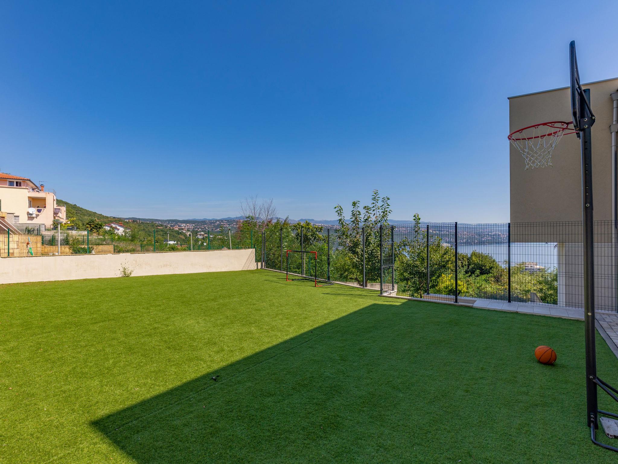 Villa "Anna", auf 3 Stockwerken. 650 m vom Zentrum von Opatija, ruhige, sonnige Lage am Hang, 1.5 km vom Meer, 1.5 km vom Strand, in einer Sackgasse, im Grünen. Zur Alleinbenutzung: Grundstück 1'240 m2 (eingezäunt), Rasen 350 m2, Schwimmbad eckig (7 x 3 m, 23 m2, 150 cm tief, saisonale Verfügbarkeit: 01.Mai. - 15.Okt.). Aussendusche, Basketball, Badminton, Terrasse (64 m2), Gartenmöbel, Kinderspielplatz. Im Hause: Internetzugang, Zentralheizung, Waschmaschine. Parkplatz (für 3 Autos) beim Haus auf dem Grundstück. Einkaufsgeschäft 1.5 km, Supermarkt 2.3 km, Restaurant 1.5 km, Café 1.5 km, Bushaltestelle 1.5 km, Strandbad 1.5 km, betonierter Strand 1.5 km. Wanderwege ab Haus 1.5 km. Privat: Mini-Fussballplatz. Das veranstalten von Feiern ist nicht gestattet. Videoüberwachung der Einfahrt und des Parkplatzes.