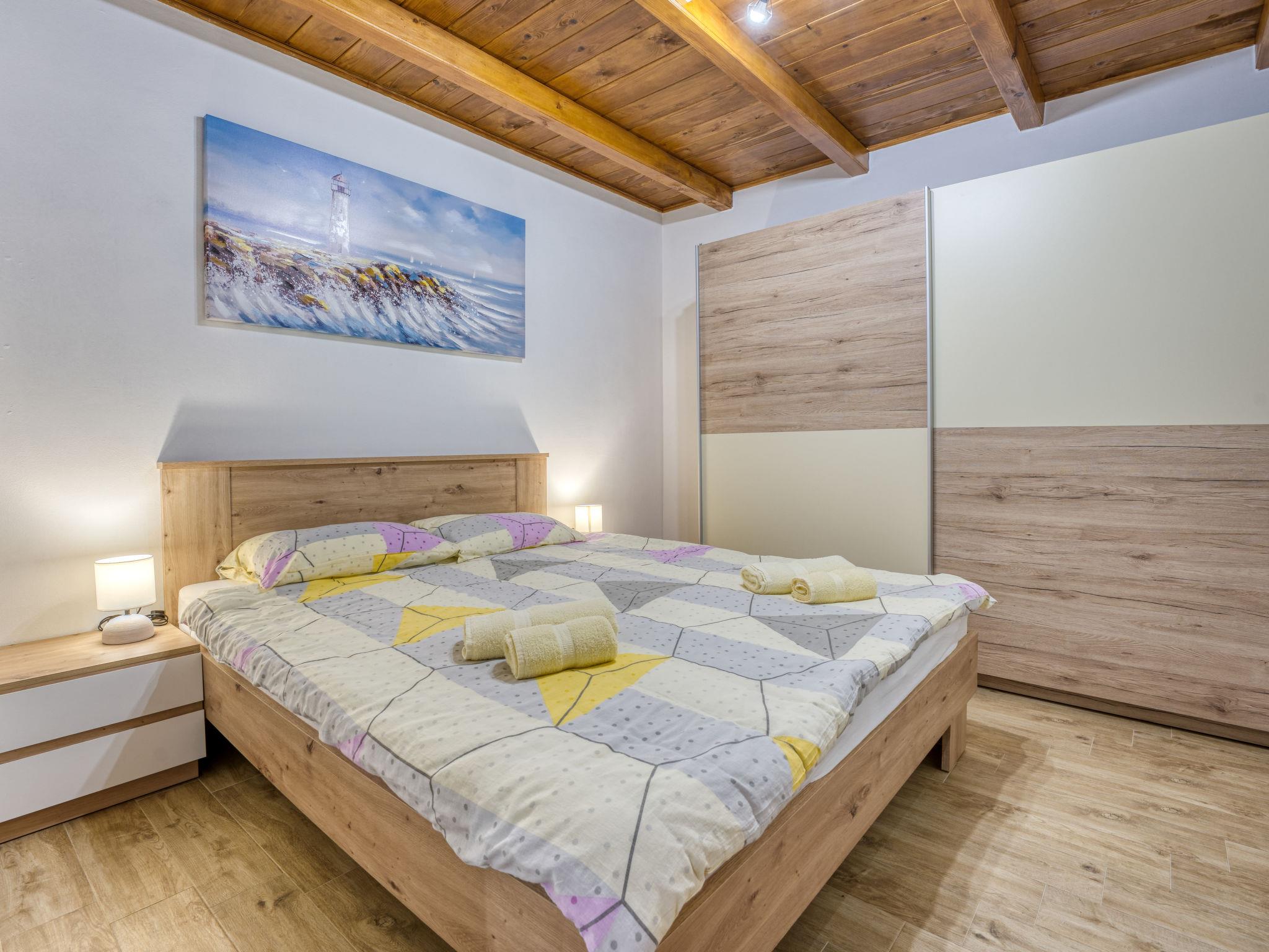 3-Zimmer-Wohnung 72 m2 auf 2 Stockwerken im 1. Stock, Südlage. Modern eingerichtet: Wohn-/Esszimmer mit 1 Diwanbett (100 cm, Länge 200 cm), Sat-TV (Flachbildschirm), Klimaanlage. Ausgang zum Balkon. 1 Zimmer mit 1 Doppelbett (2 x 80 cm, Länge 200 cm). 1 Zimmer mit 1 Doppelbett (2 x 90 cm, Länge 200 cm). Ausgang zum Balkon. Offene Küche (1 Kochplatte, Backofen, Geschirrspüler, 3 Flammen, Wasserkocher, Mikrowelle, Tiefkühler, elektrische Kaffeemaschine). Dusche/Bidet/WC. Obergeschoss: abgeschrägte, offene Galerie, Deckenhöhe 80 - 160 cm mit 1 Bett (90 cm, Länge 200 cm). Keine Heizmöglichkeit. Balkon 10 m2. Balkonmöbel. Sicht auf das Meer. Zur Verfügung: Waschmaschine. Internet (WLAN). Bitte beachten: Nichtraucher-Unterkunft. Maximal 1 Haustier/Hund erlaubt. Eigener Eingang.
