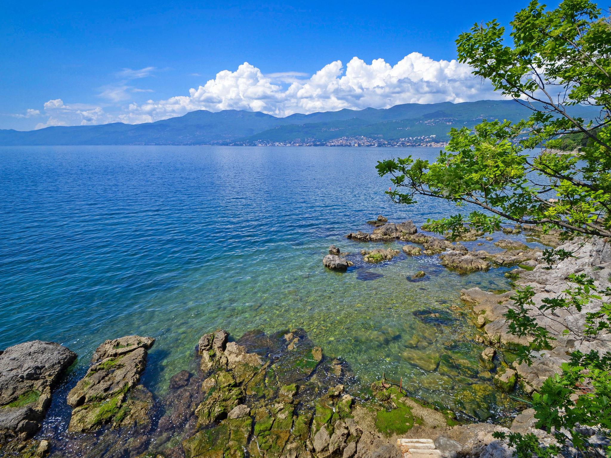 Zweifamilienhaus "Dado", umgeben von Bäumen. Im Ortsteil Costabella, 5.5 km vom Zentrum von Opatija, 6 km vom Zentrum von Rijeka, ruhige Lage, 30 m vom Meer, 30 m vom Strand, im Grünen. Zur Mitbenutzung: Grundstück 600 m2 (eingezäunt). Terrasse (17 m2), Gartenmöbel. Im Hause: Internetzugang. Parkplatz beim Haus auf dem Grundstück. Einkaufsgeschäft 1.2 km, Supermarkt 2.5 km, Restaurant 1.8 km, Café 30 m, Bushaltestelle 50 m, Kieselstrand 1.8 km, Felsstrand 30 m, Freibad 1.6 km, Hallenbad 1.6 km, Strandbad 1.8 km.