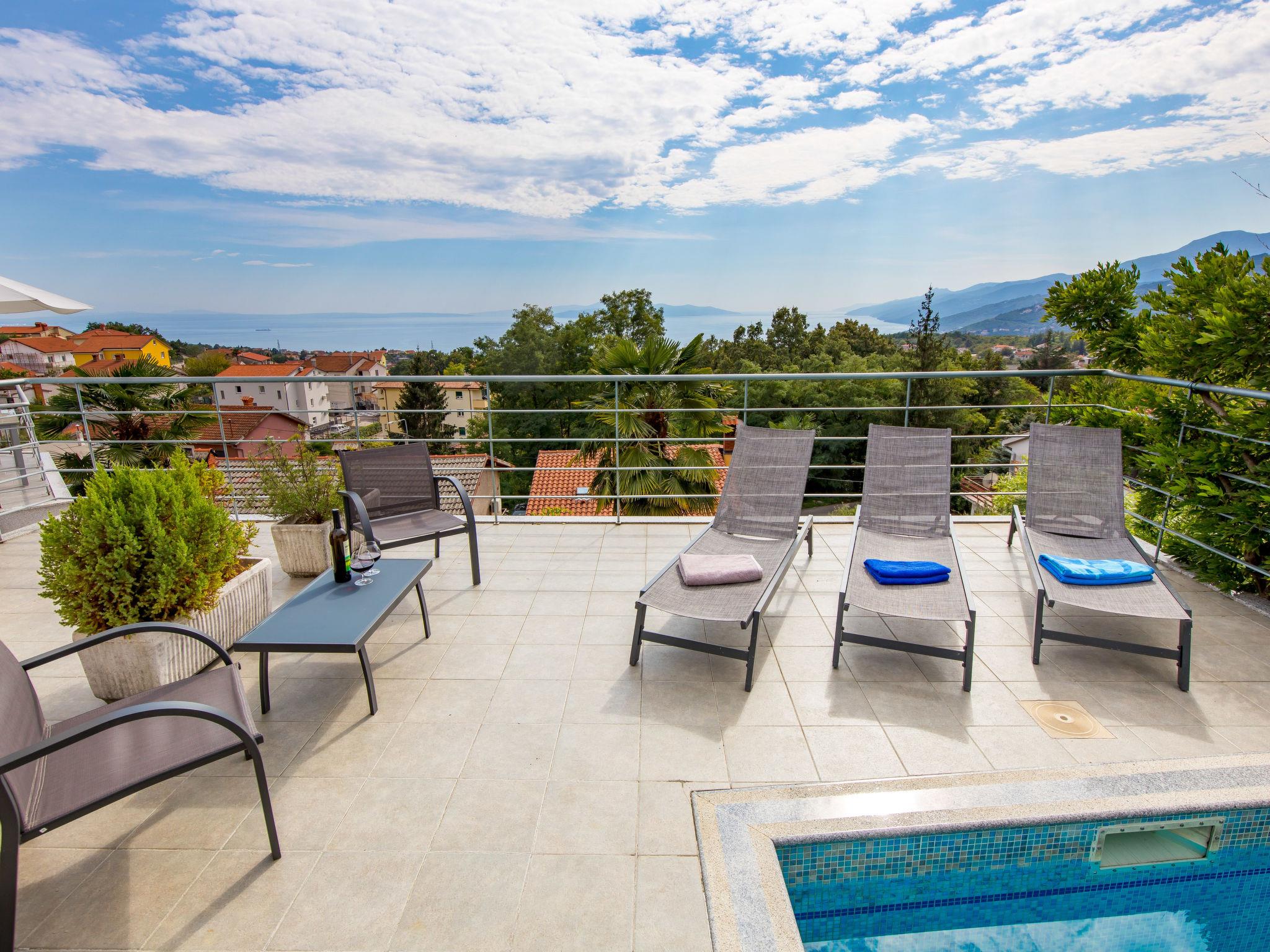 Appartementhaus "Bella Vista". 6 km vom Zentrum von Opatija, 11 km vom Zentrum von Icici, am Hang, 3 km vom Meer, 3 km vom Strand, in einer Sackgasse, im Grünen. Zur Mitbenutzung: Grundstück 1'200 m2 mit Blumen und Bäumen, Schwimmbad beheizt (7 x 4 m, 120 - 160 cm tief, saisonale Verfügbarkeit: 29.Apr. - 30.Nov. Öffnungszeiten Schwimmbad: 08:00-22:00). Aussendusche, Terrasse, Grill. Im Hause: Internetzugang, Waschmaschine, Wäschetrockner (zur Mitbenutzung, extra). Parkplatz beim Haus auf dem Grundstück. Einkaufsgeschäft 200 m, Bushaltestelle 1.2 km, Kieselstrand 3 km.